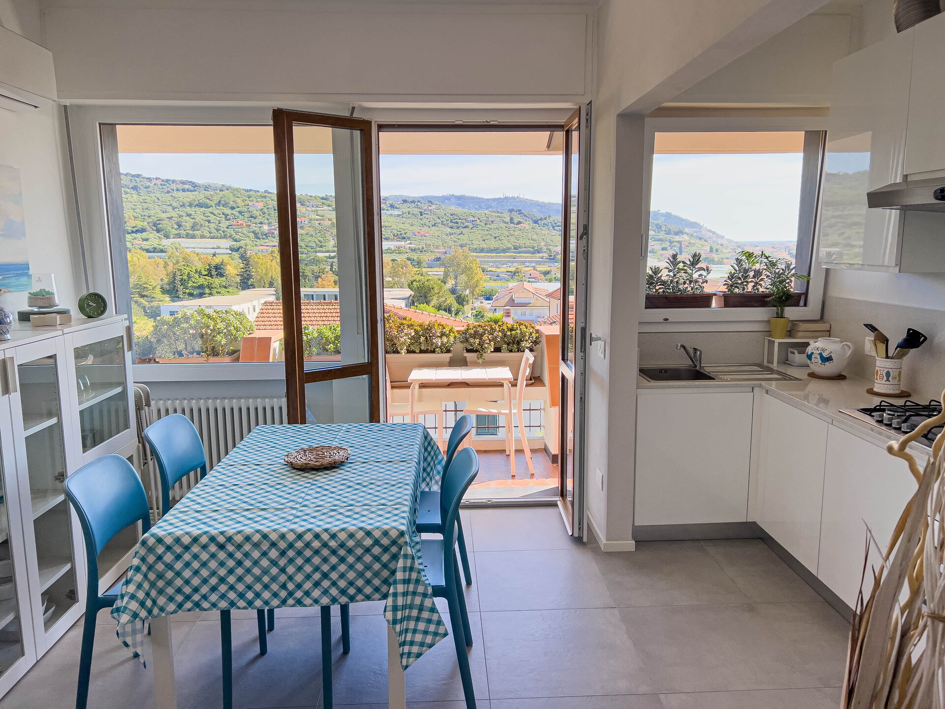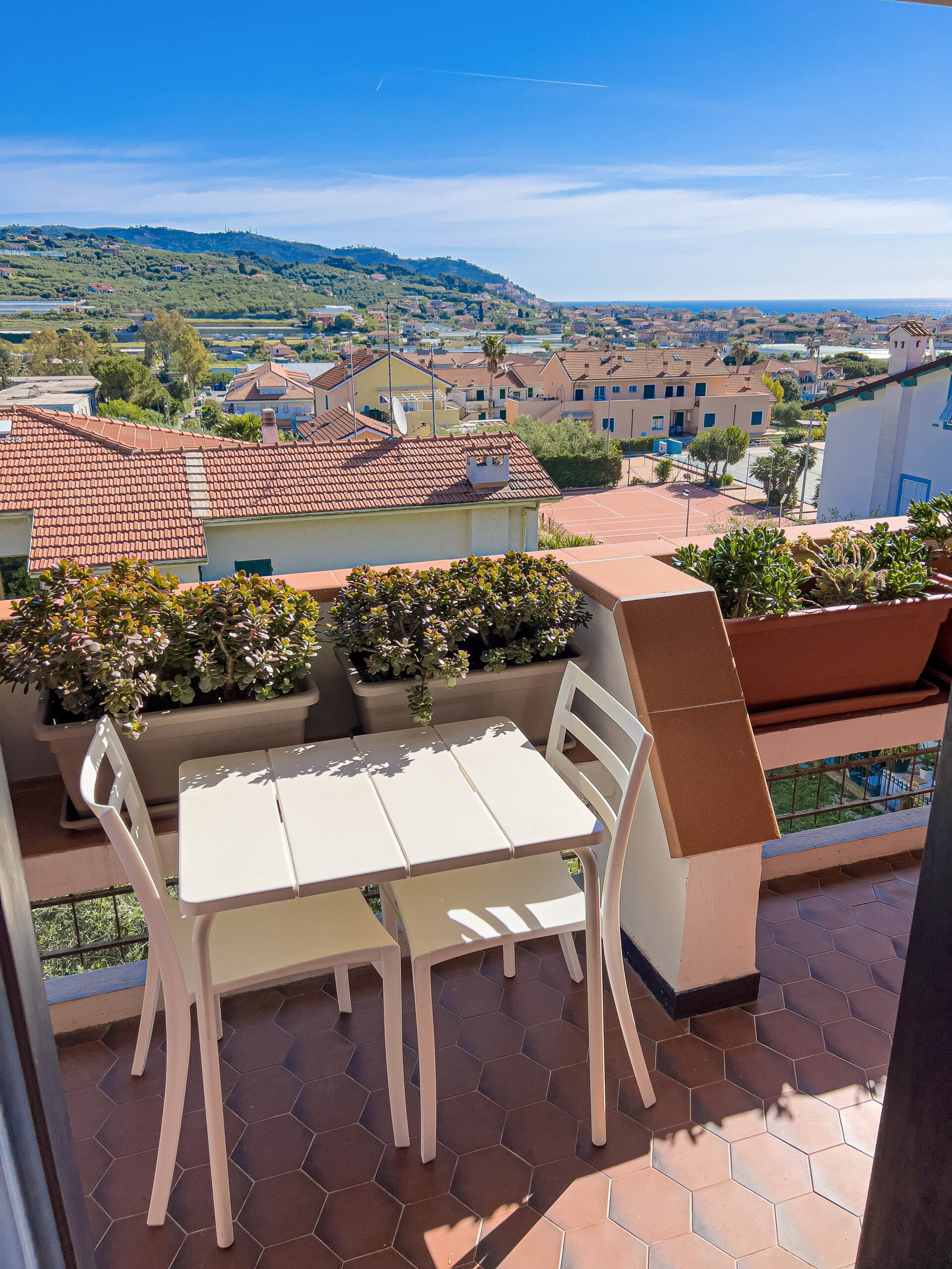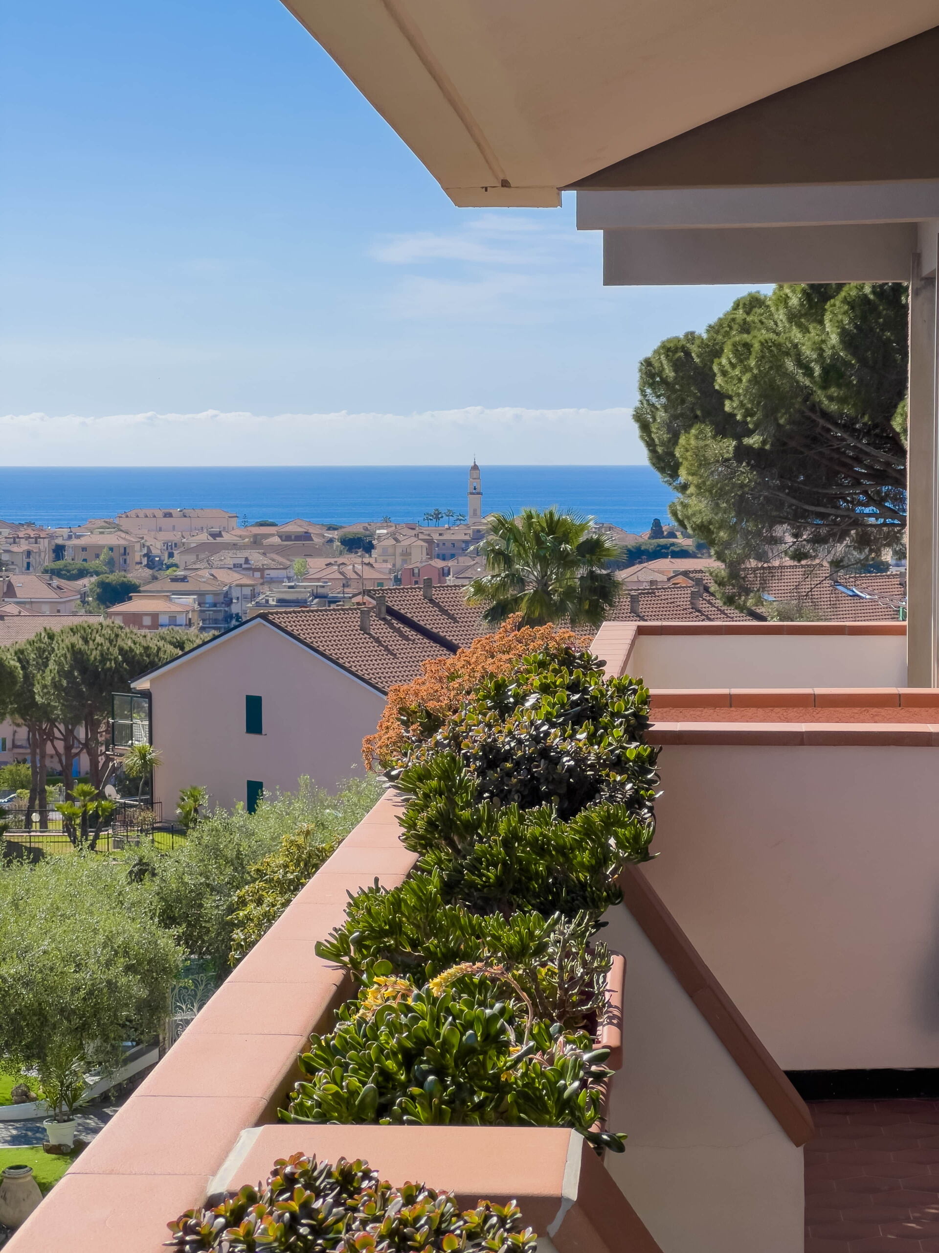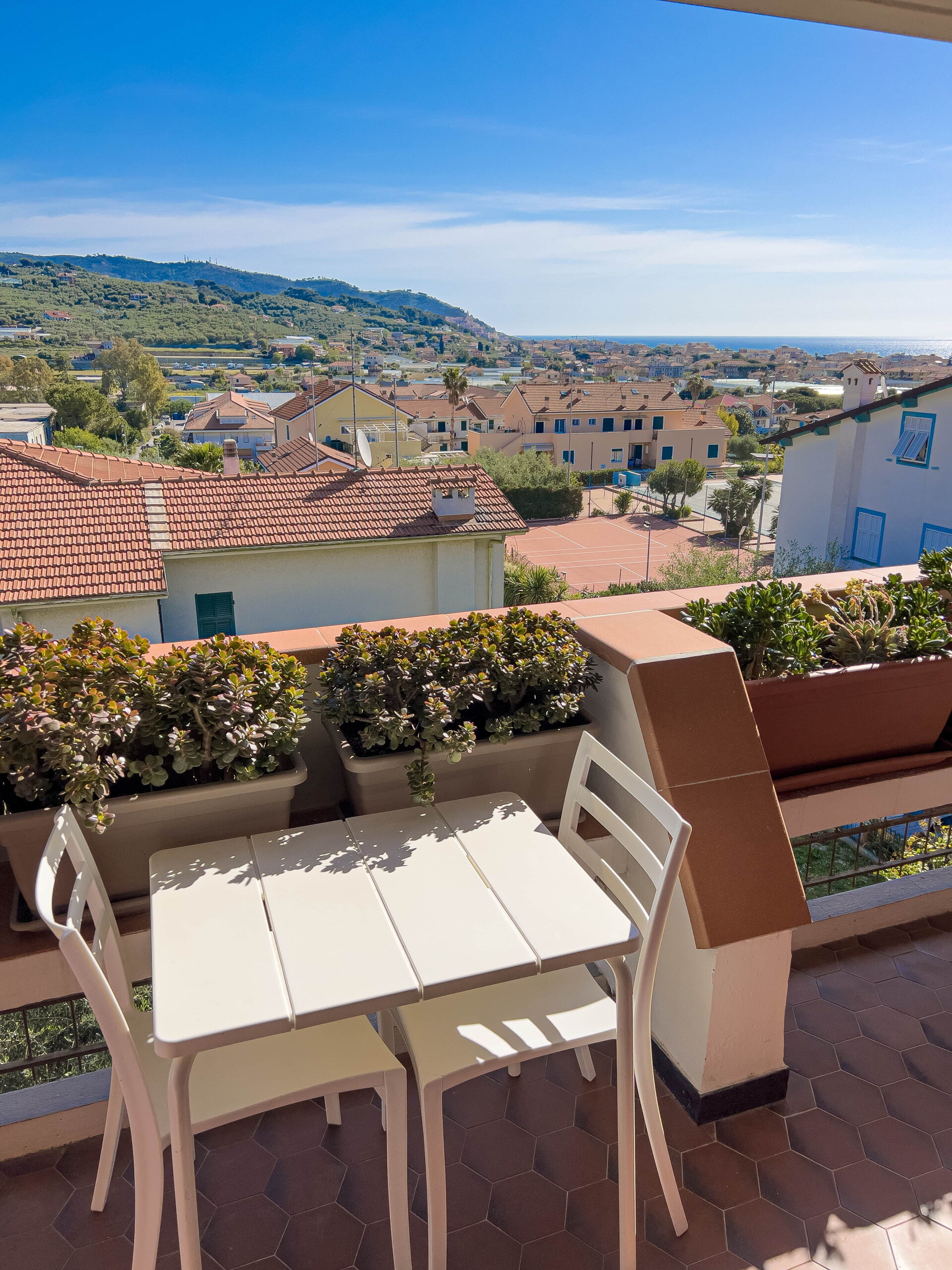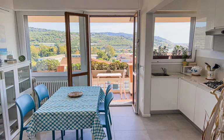 El apartamento, ubicado en una tranquila zona residencial, ofrece vistas panorámicas al golfo de Diano Marina y a los pueblos de Diano Castello y Cervo (dos de los pueblos más bonitos de Italia, ¡que le recomendamos visitar!).