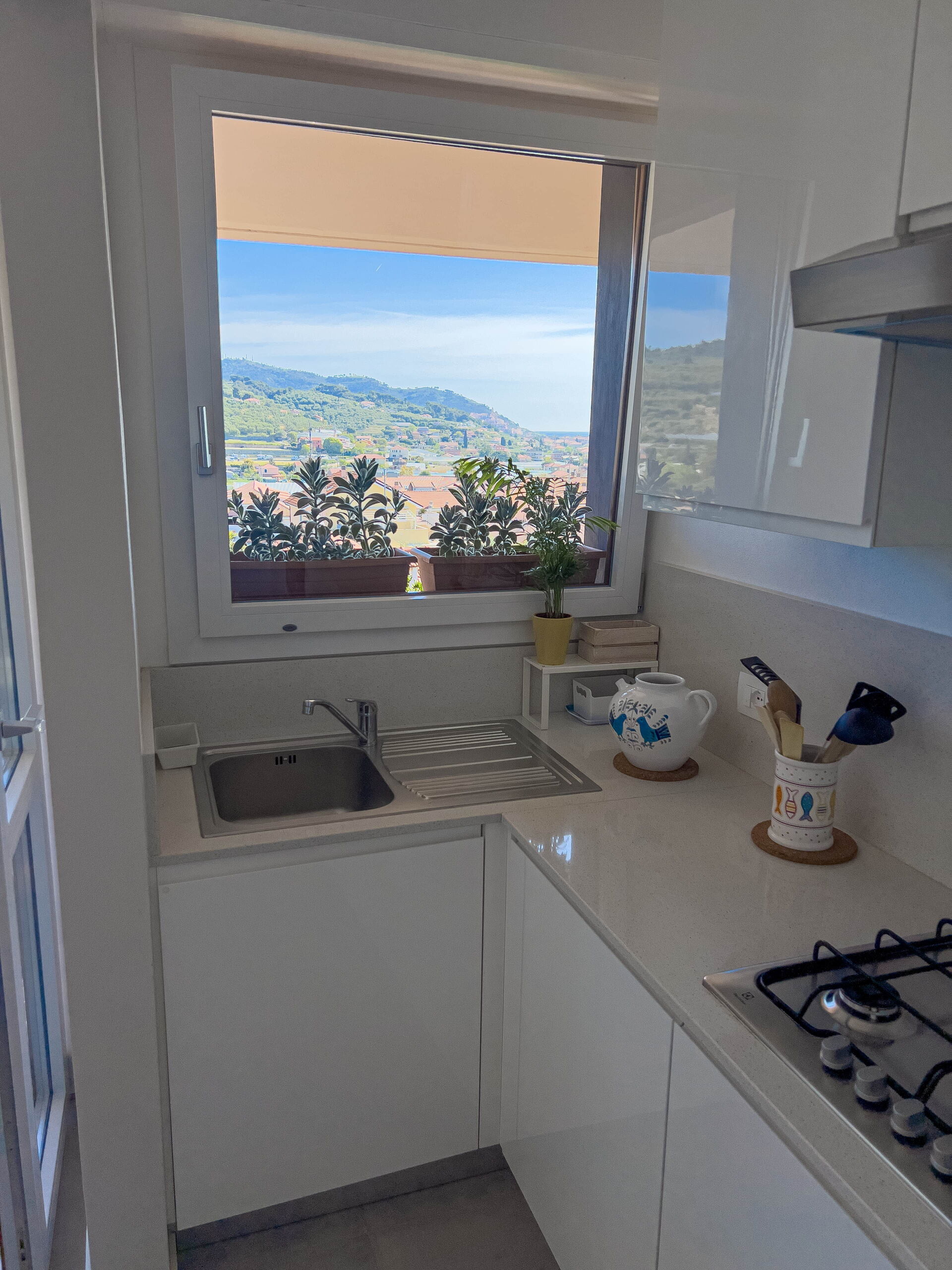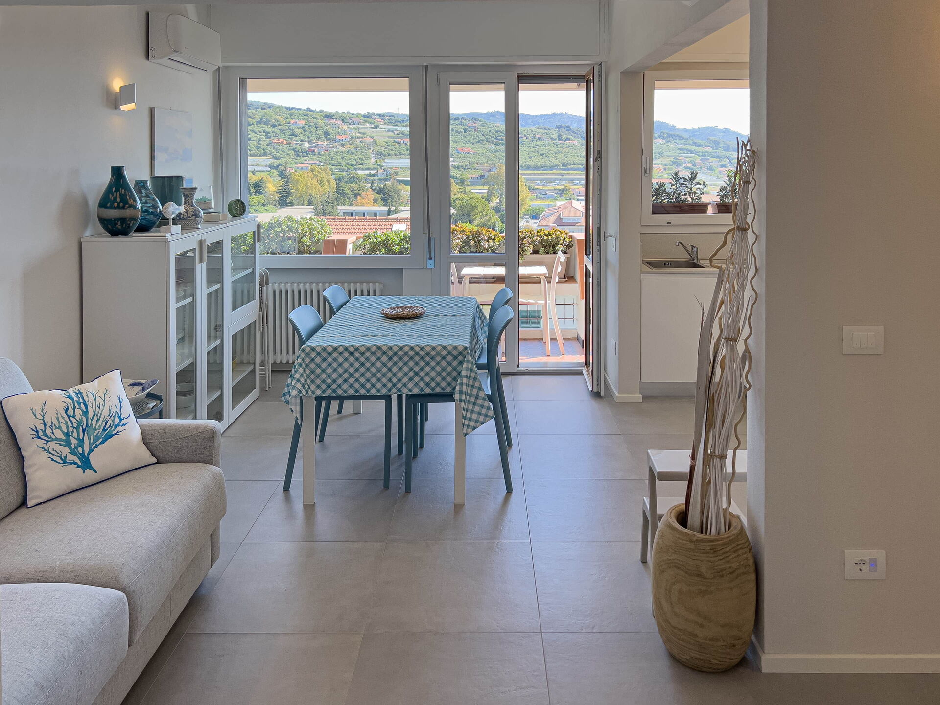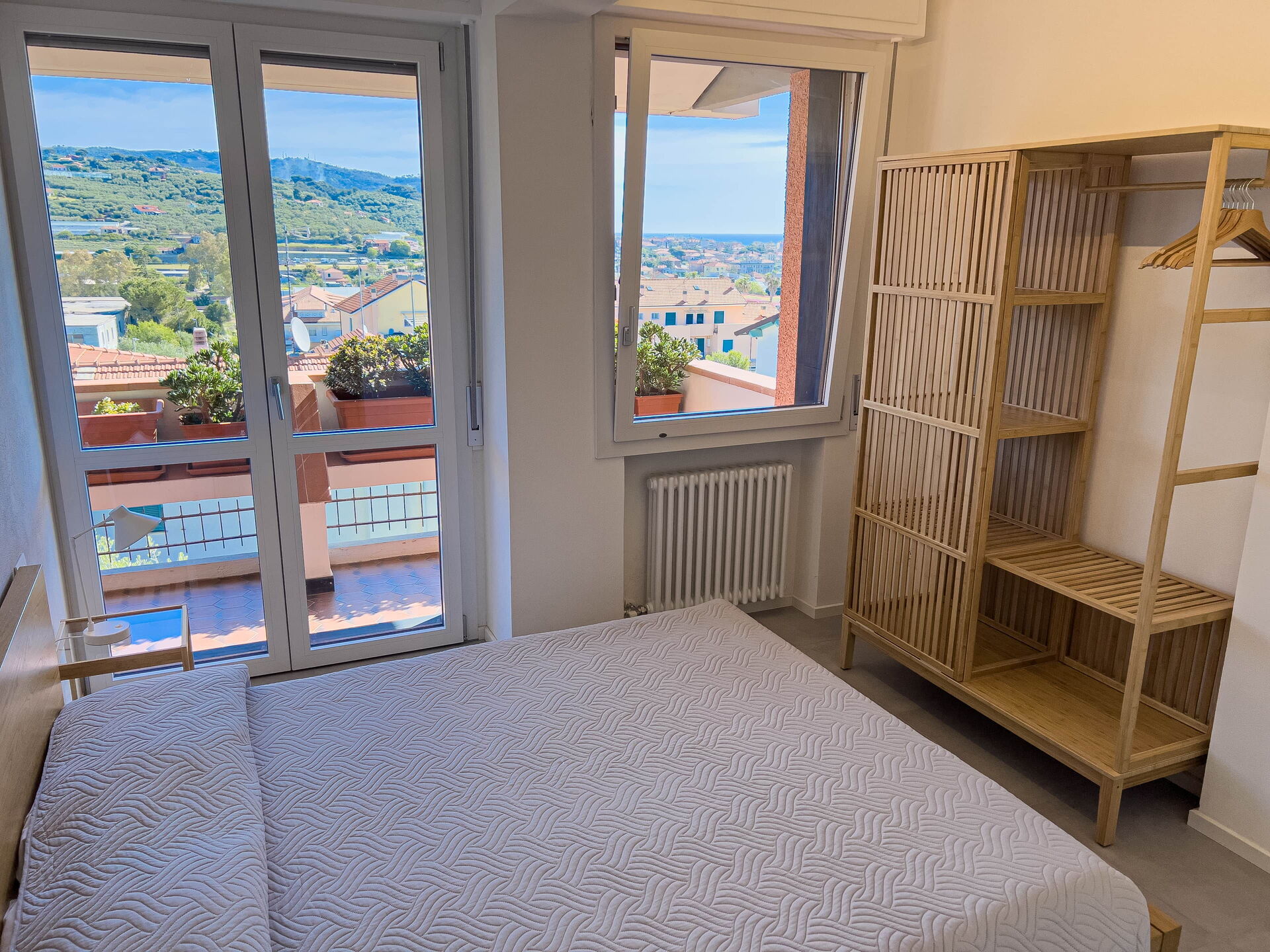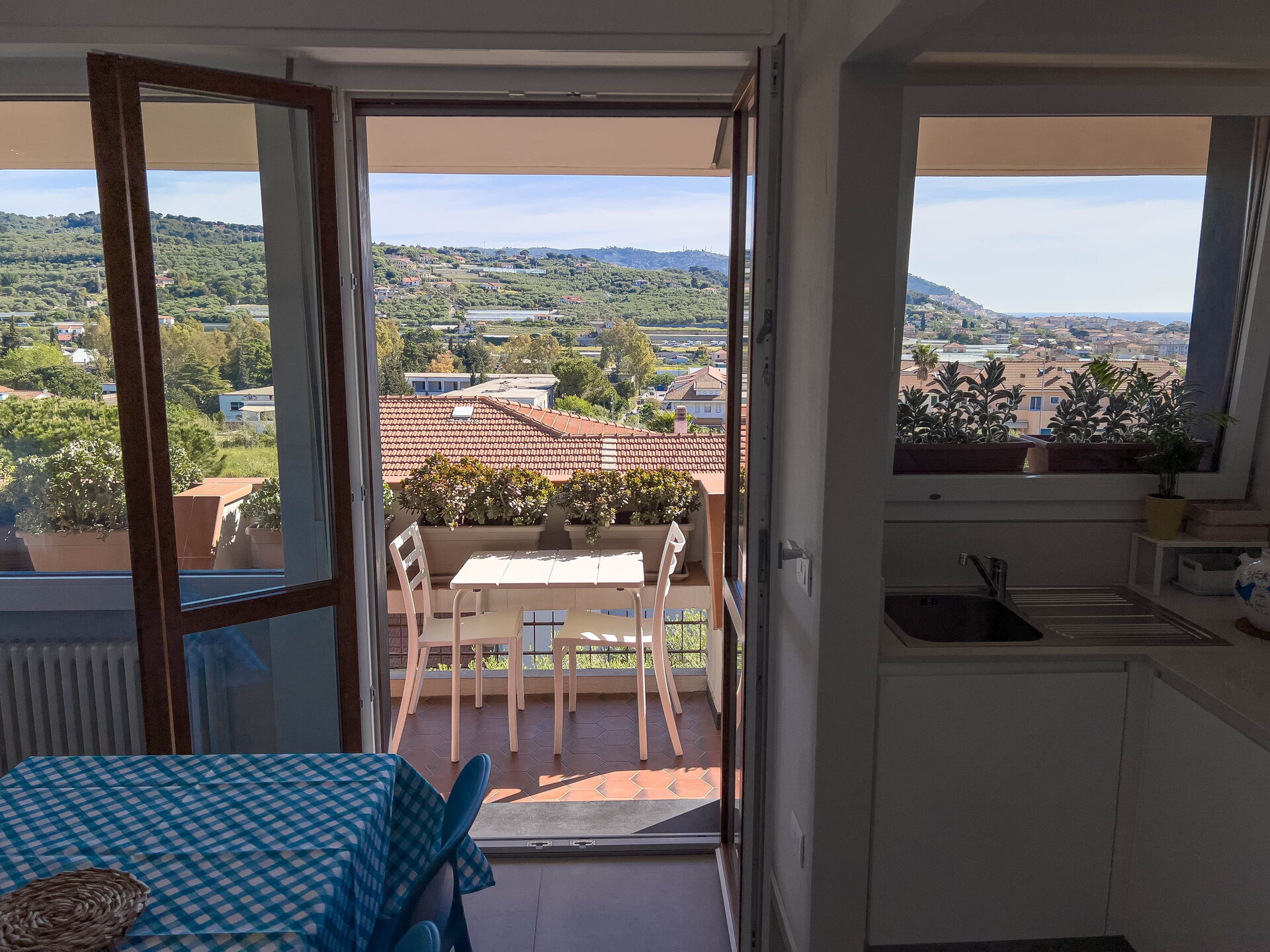 El apartamento, ubicado en una tranquila zona residencial, ofrece vistas panorámicas al golfo de Diano Marina y a los pueblos de Diano Castello y Cervo (dos de los pueblos más bonitos de Italia, ¡que le recomendamos visitar!).