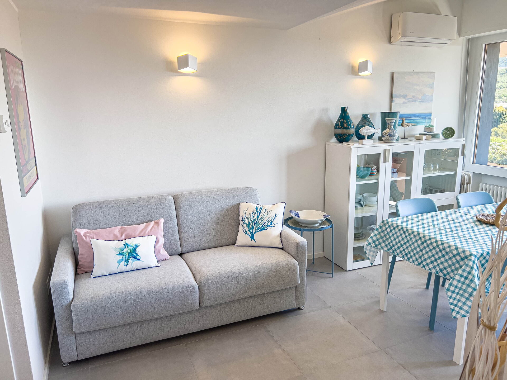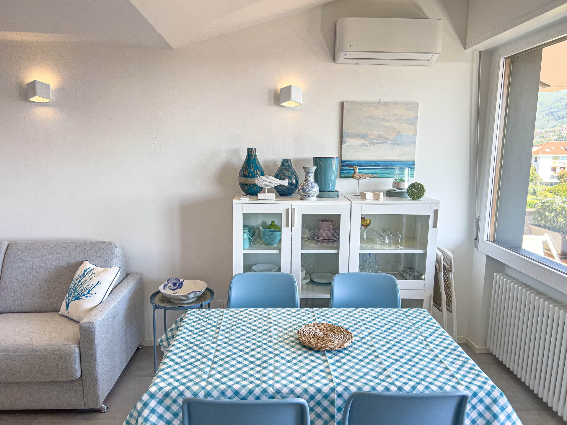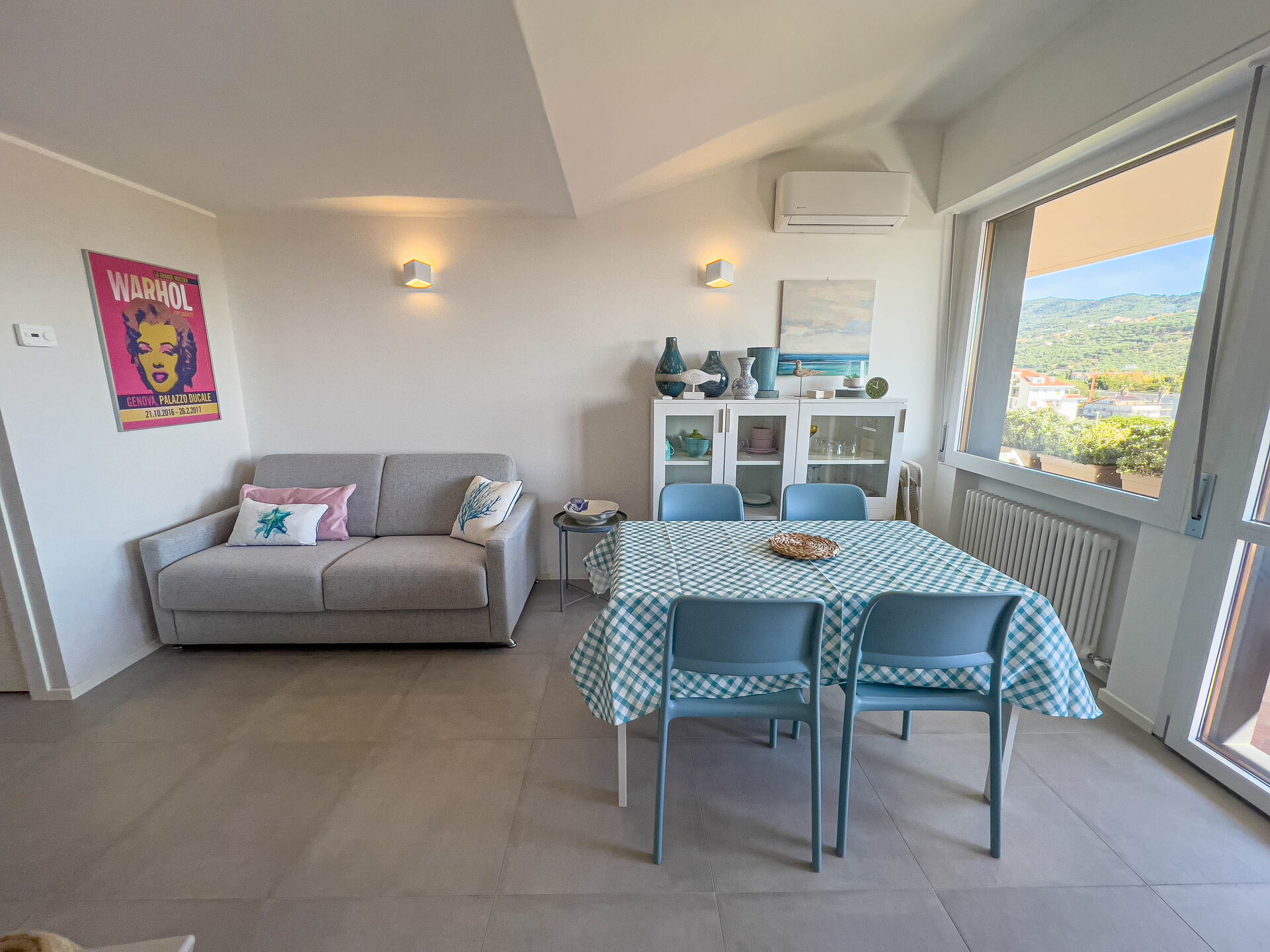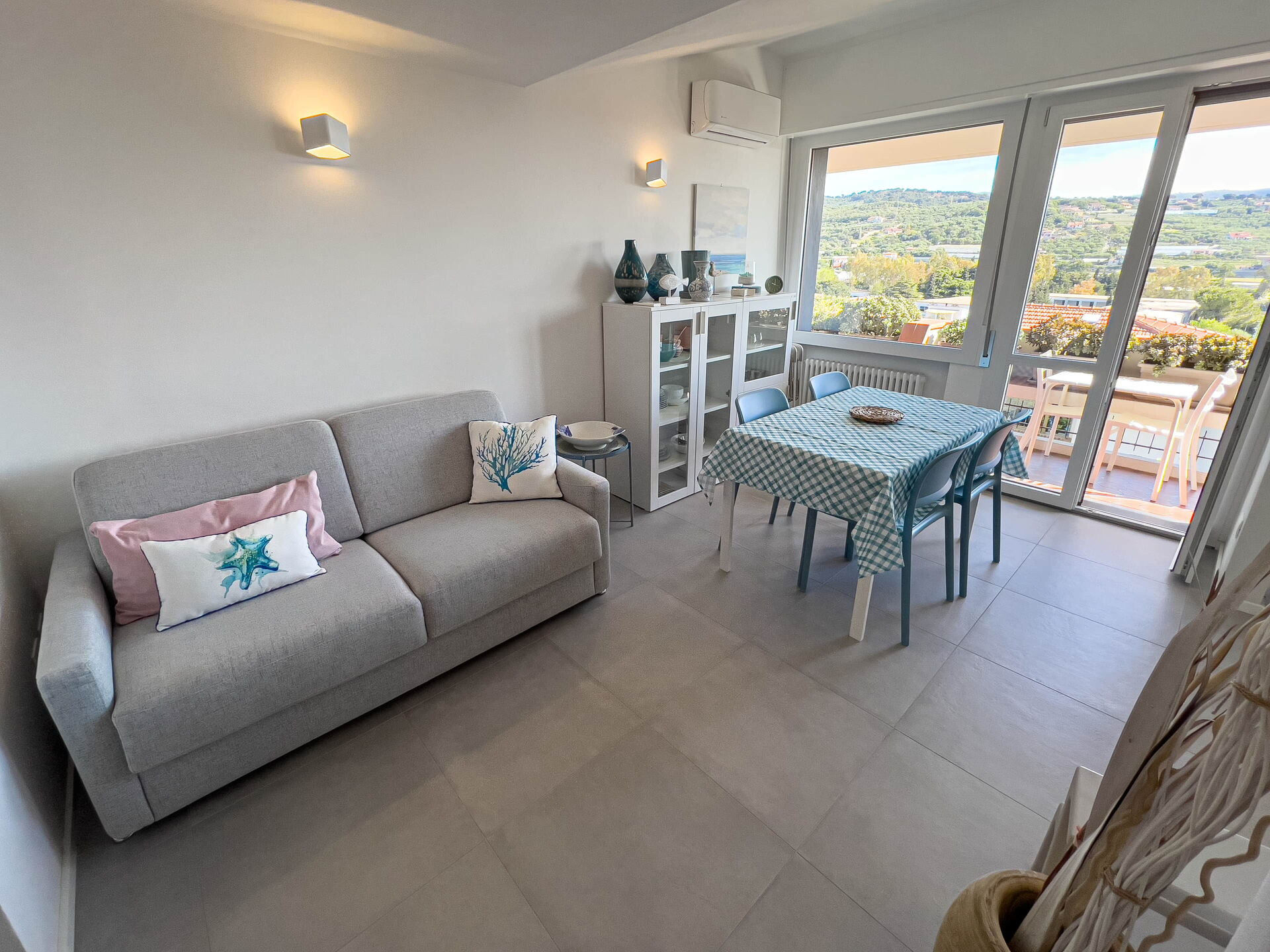 El apartamento, ubicado en una tranquila zona residencial, ofrece vistas panorámicas al golfo de Diano Marina y a los pueblos de Diano Castello y Cervo (dos de los pueblos más bonitos de Italia, ¡que le recomendamos visitar!).