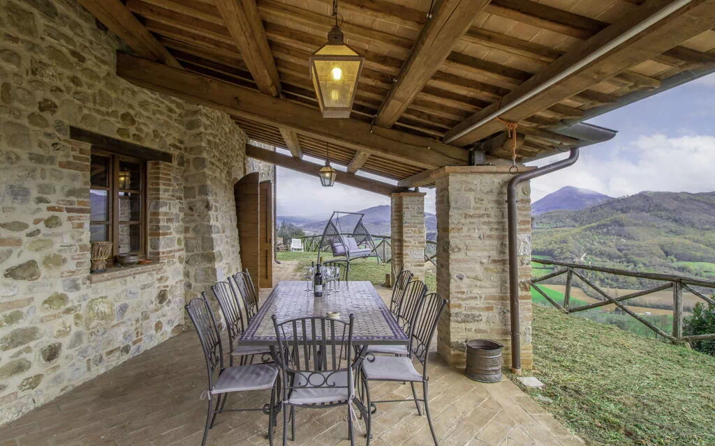 Borgo Al Castello es una antigua granja de piedra situada en la campiña de Umbria, a 2 km de la ciudad de Montecastelli, en la provincia de Perugia. Dividida en seis unidades diferentes, la propiedad cuenta con un exuberante entorno verde y abundantes árboles que abrazan los edificios; increíbles vistas sobre el hermoso paisaje; una zona de piscina perfectamente equipada con tumbonas, sombrillas y zonas de comedor; un gimnasio privado; y servicios adicionales como servicios de chef privado, visitas personalizadas a la zona, servicio de limpieza, neveras preabastecidas y servicio de niñera, que se ofrecen con un coste adicional. Lujosa, histórica, llena de carácter y detalles originales, esta es una joya de propiedad e ideal para hacer una pequeña escapada apropiada para aquellos que deseen pasar sus vacaciones en Italia o disfrutar de una villa en Umbria. Entre las seis unidades que se pueden encontrar en Borgo Al Castello, sin embargo, Casa Tettoia es una de las más lujosas y deseables.