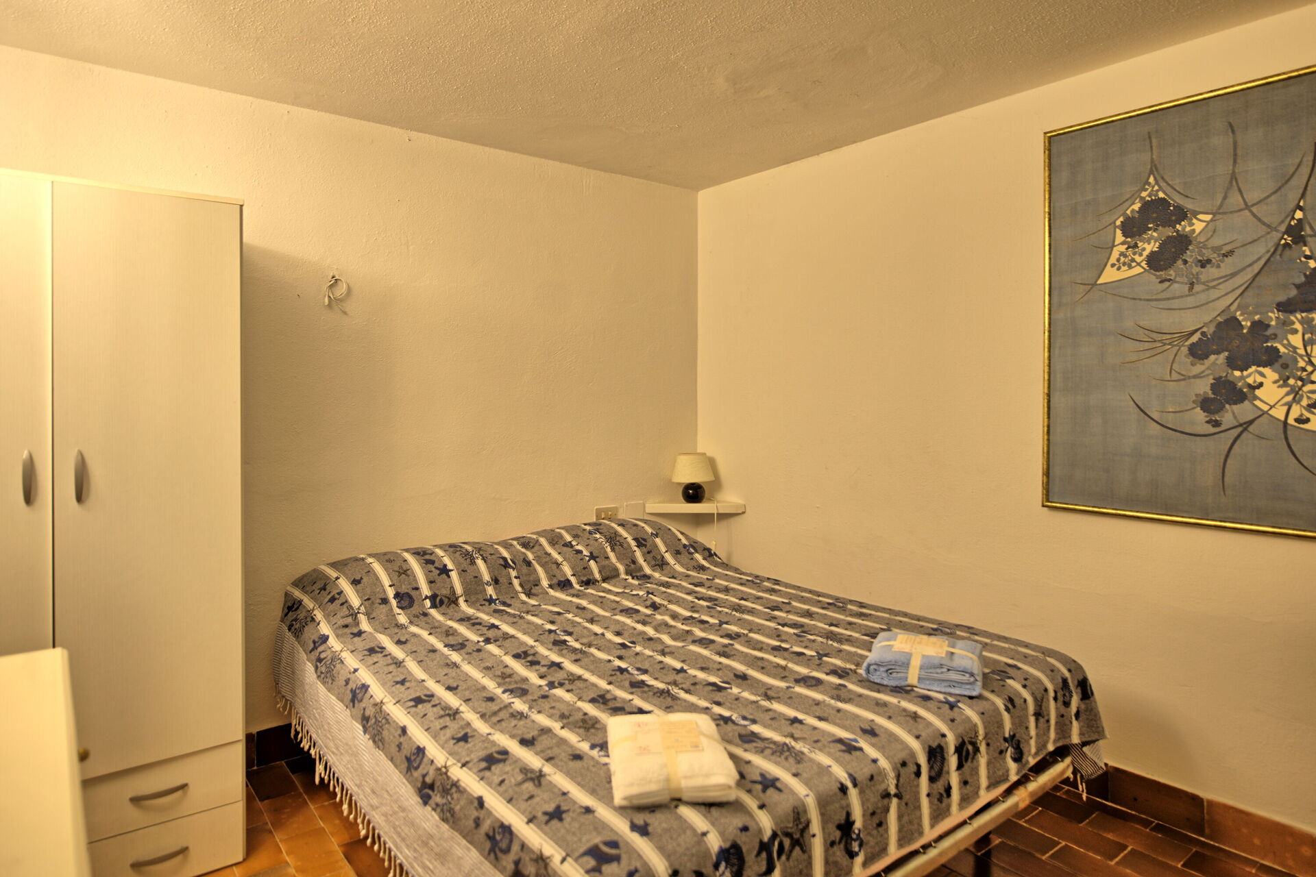 4 steps down: room (without window, facing onto the living room) with small double bed