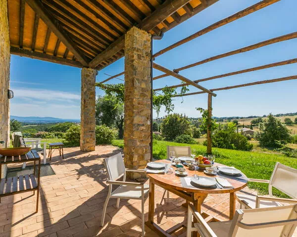 La casa de vacaciones "Marte" es una vivienda unifamiliar adosada ubicada en una colina de la campiña toscana, en Magliano In Toscana, Italia. Goza de una posición panorámica excepcional con vistas que se extienden hacia Argentario e Isla de Giglio, rodeada de prados y campos abiertos que crean una sensación de aislamiento tranquilo. Situada aproximadamente a 5 km del centro de Magliano In Toscana y a 20 km del mar, la propiedad se encuentra en una ubicación elevada y tranquila que garantiza la máxima privacidad. La finca se extiende sobre una propiedad compartida de 7 hectáreas, ofreciendo un sentido extraordinario de espacio y belleza natural.