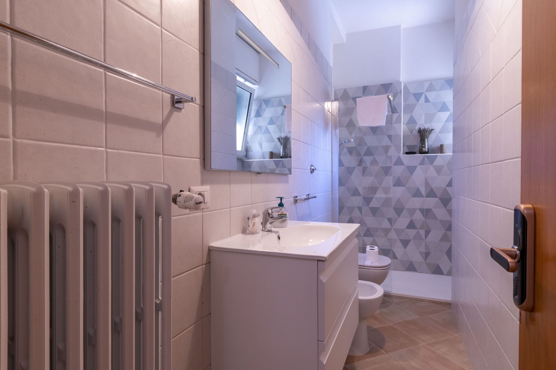 Baño 3: lavabo, baño, bidé, ducha, secador, lavadora.