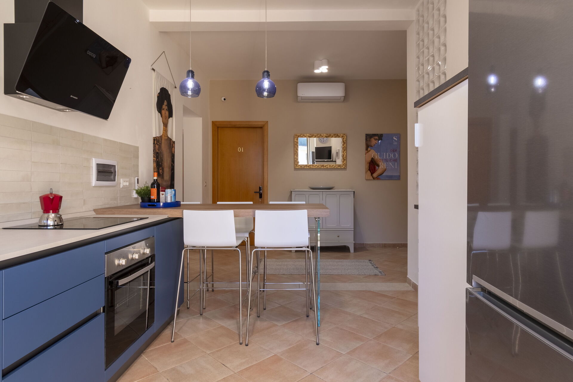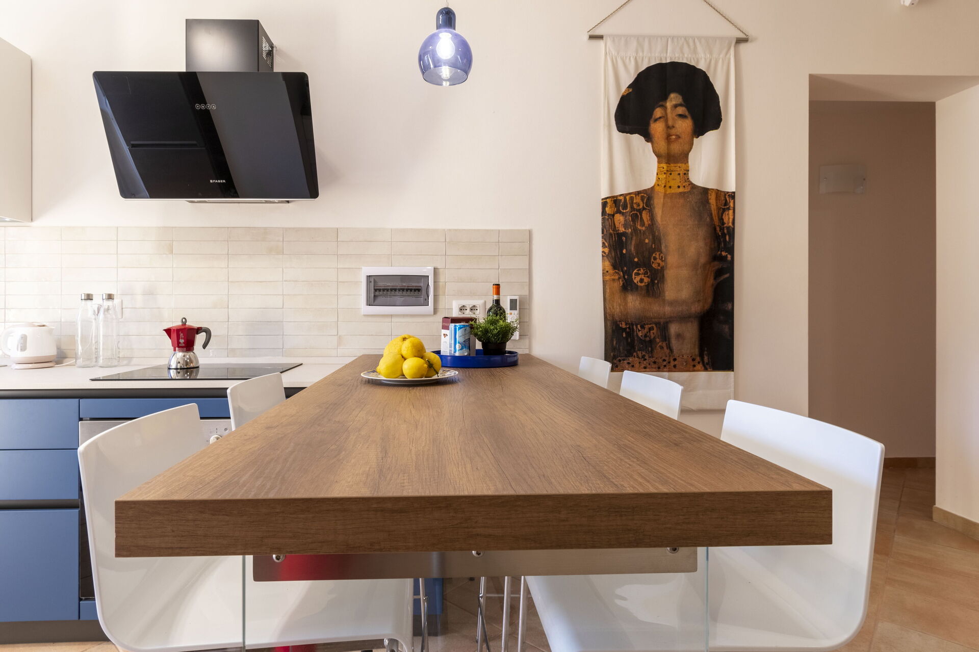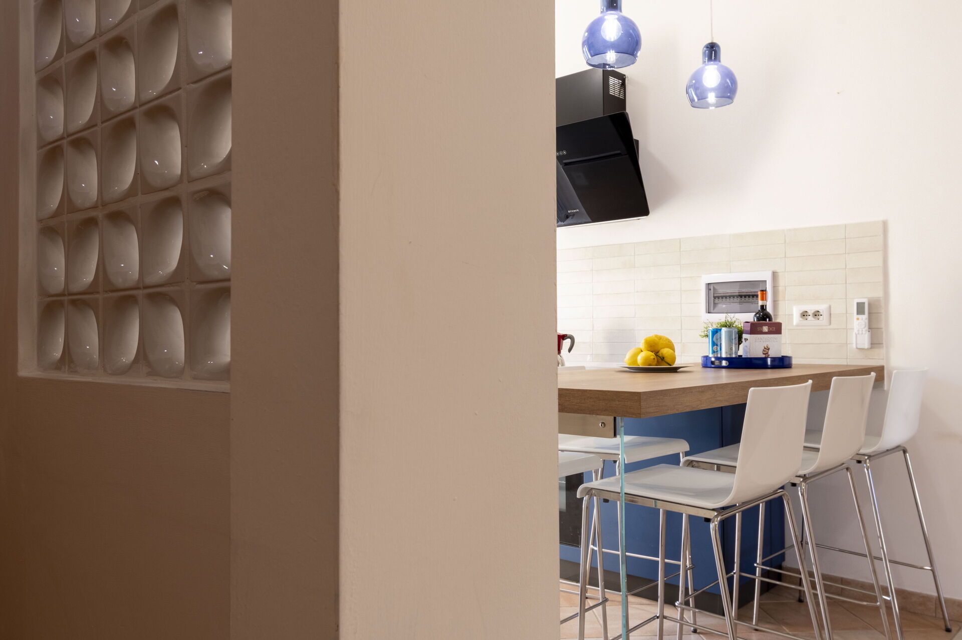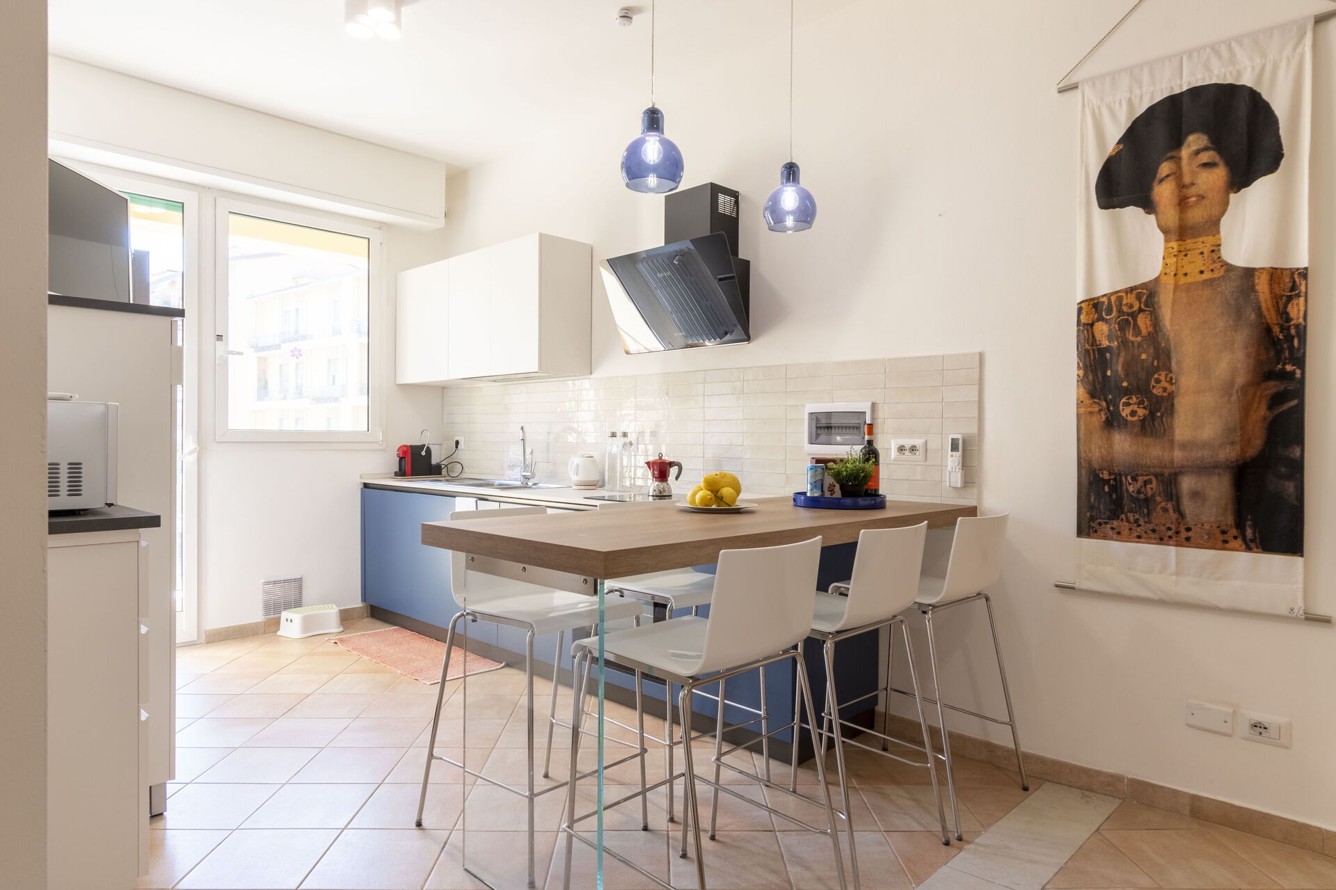 Cocina: cocina bien equipada, mesa de comedor, lavavajillas, frigorífico, congelador, cocina de gas, horno, tostadora, máquina de café italiana, WIFI internet, aire acondicionado, televisión, acceso al balcón.
