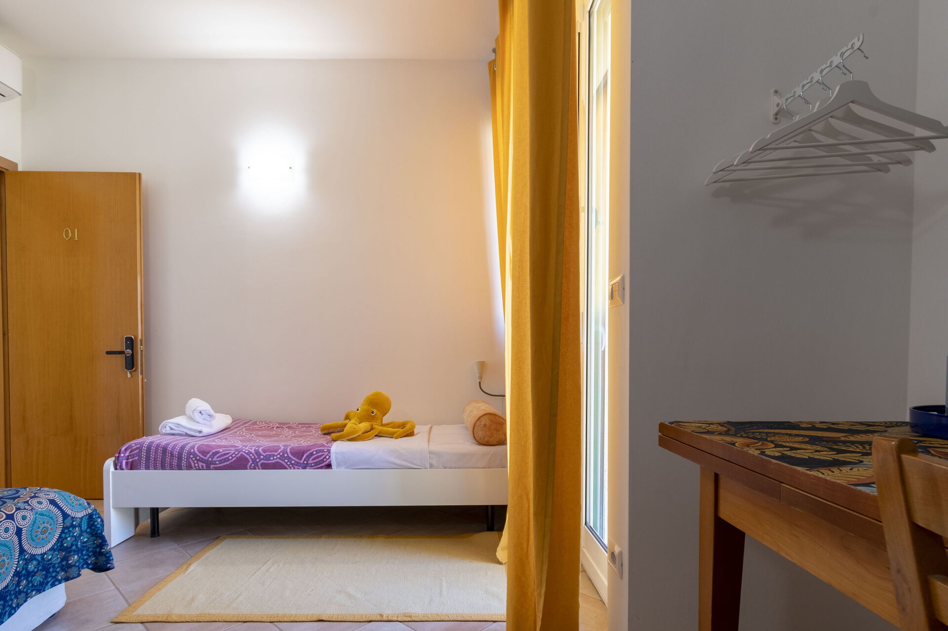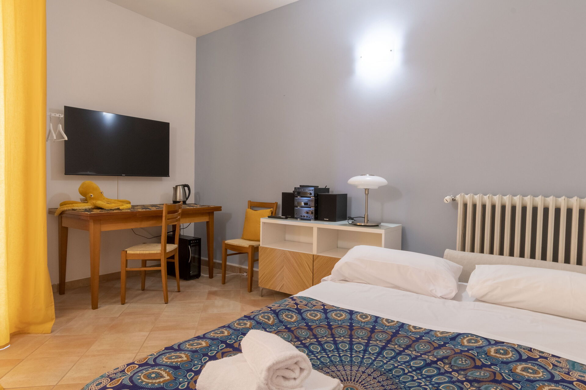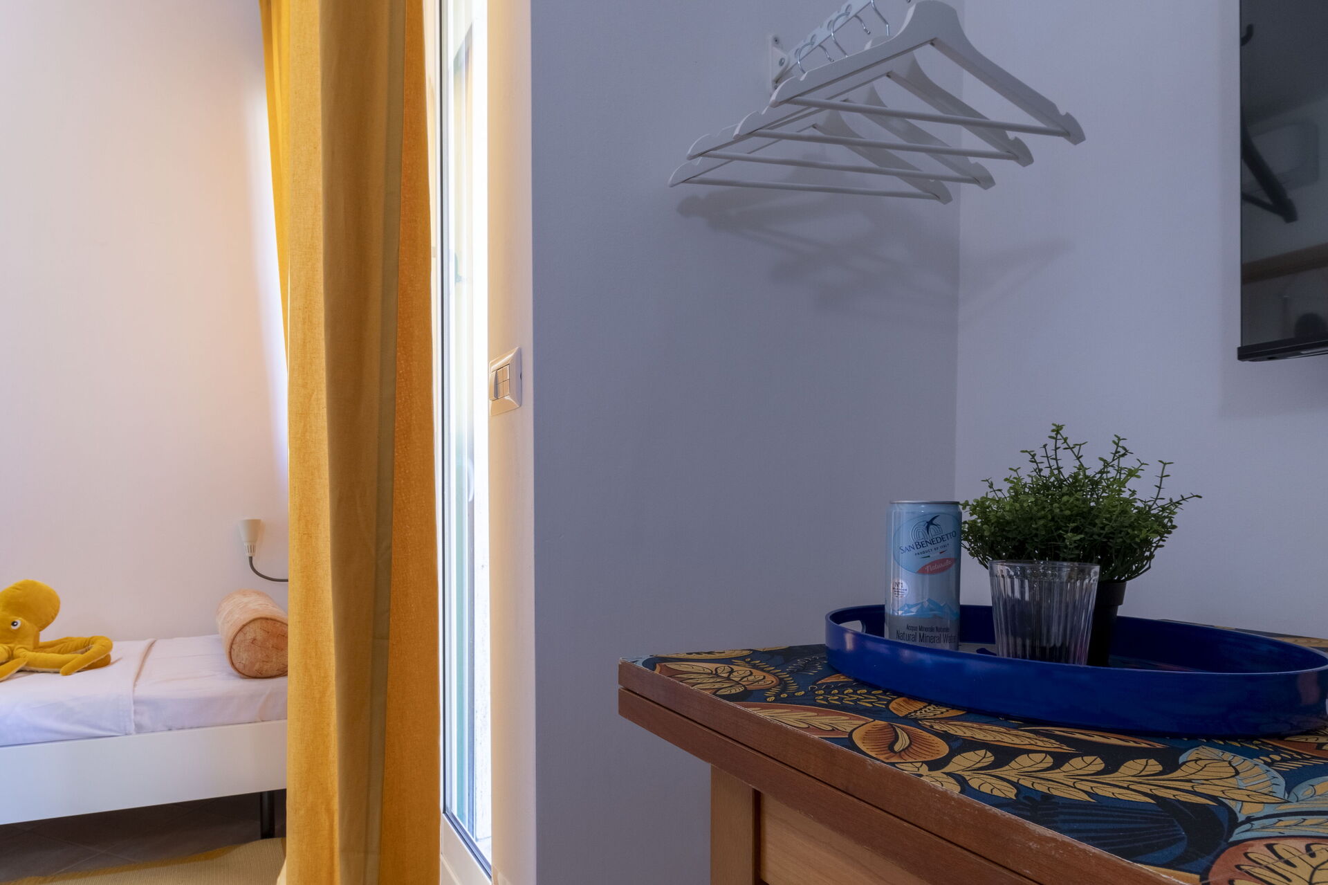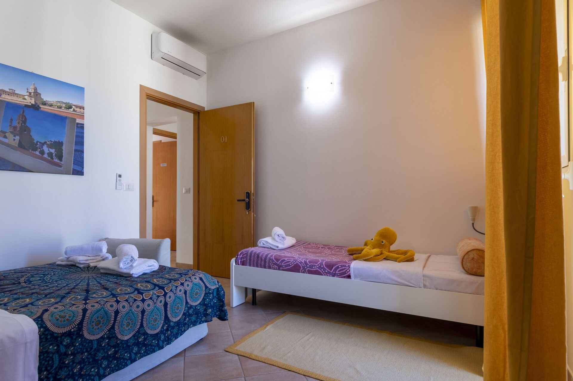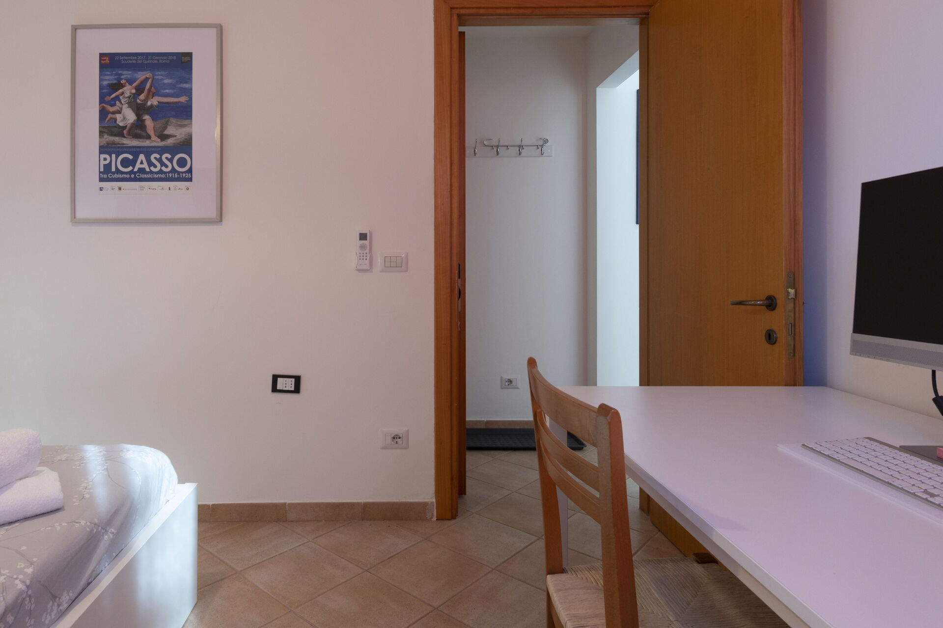 Habitación 3: cama individual, sofá cama de matrimonio, WIFI internet, aire acondicionado, tv vía satélite, escritorio.