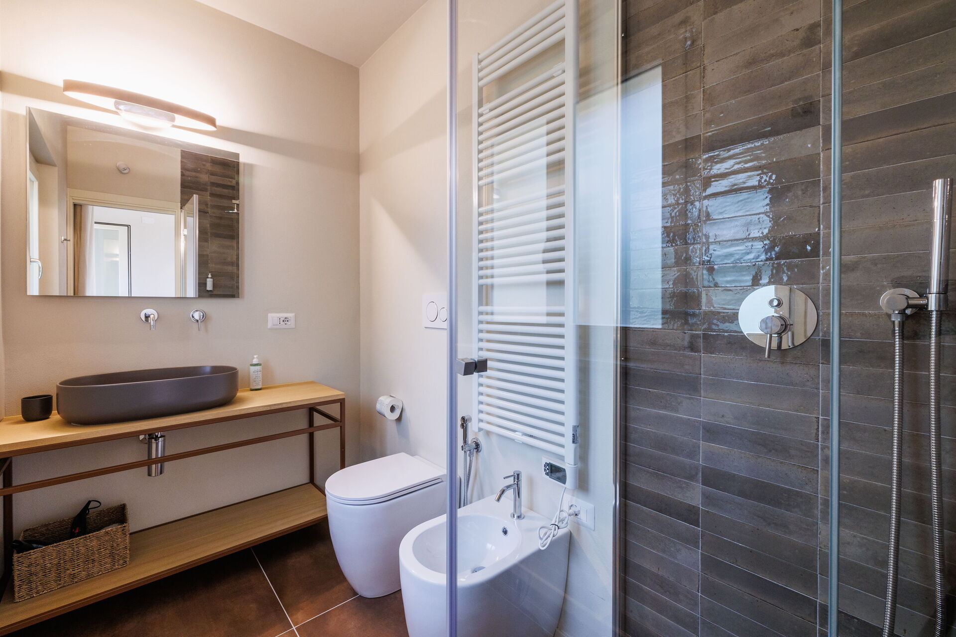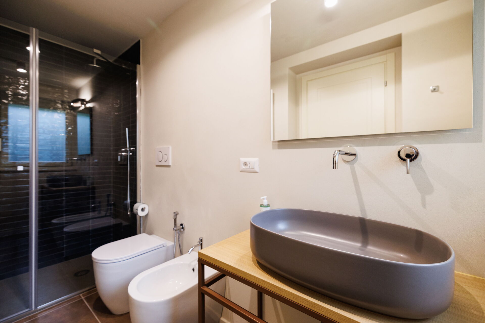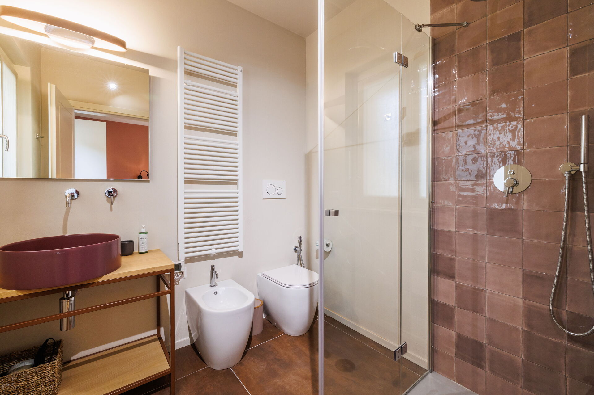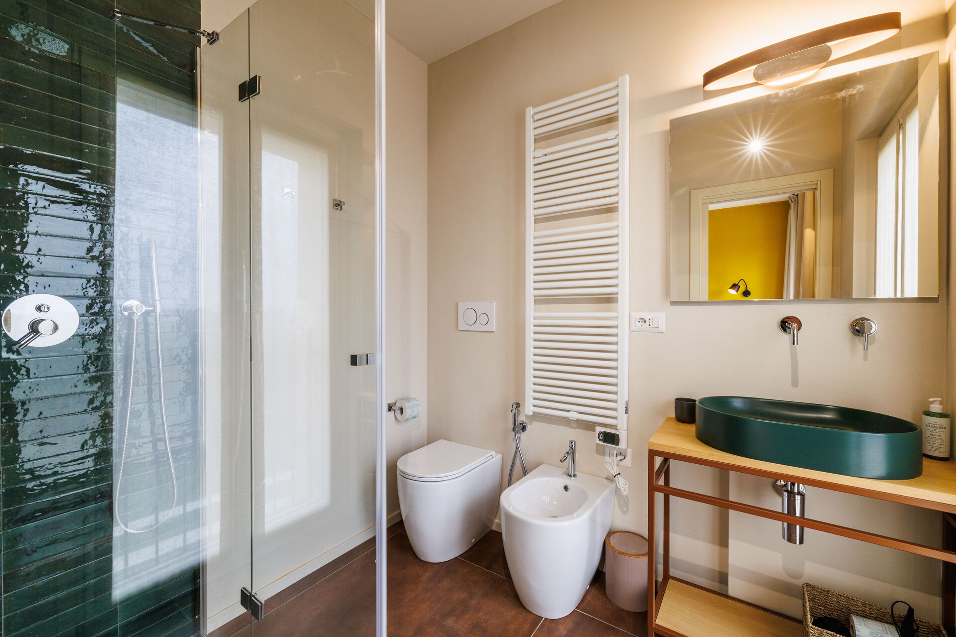 Habitación con baño 5: cama doble, WIFI internet, aire acondicionado, lavabo, baño, bidé, ducha, secador.