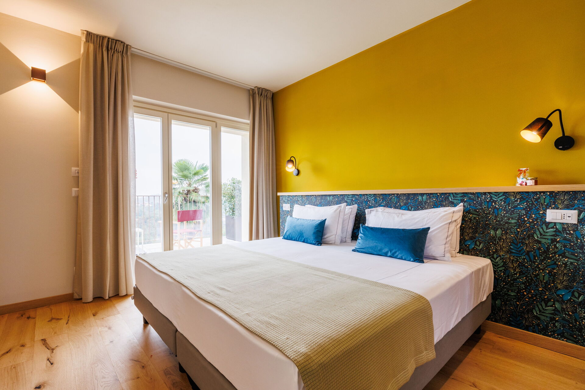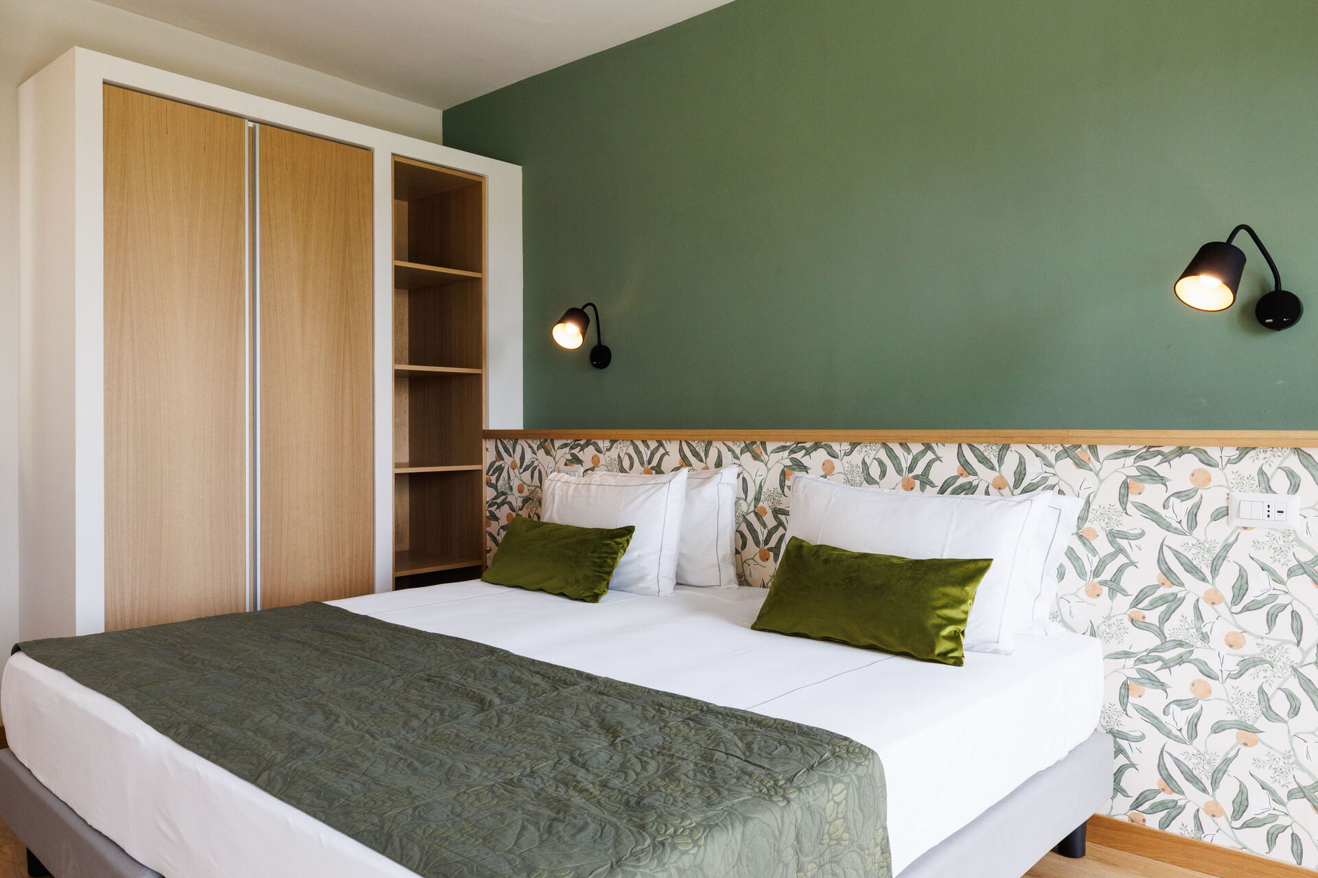 Habitación con baño 2: cama doble, sofá cama, WIFI internet, aire acondicionado, lavabo, baño, bidé, ducha, secador.