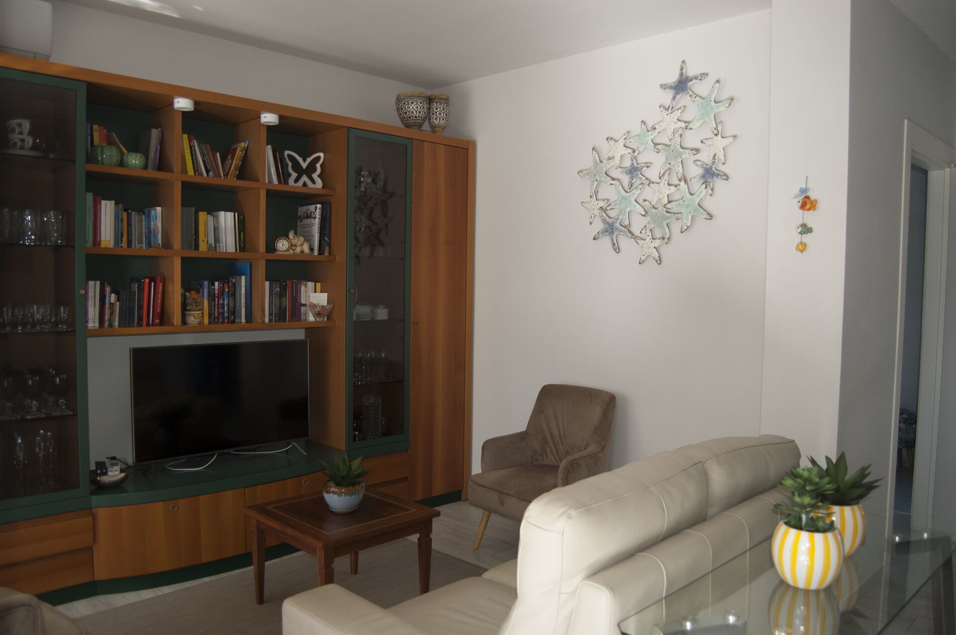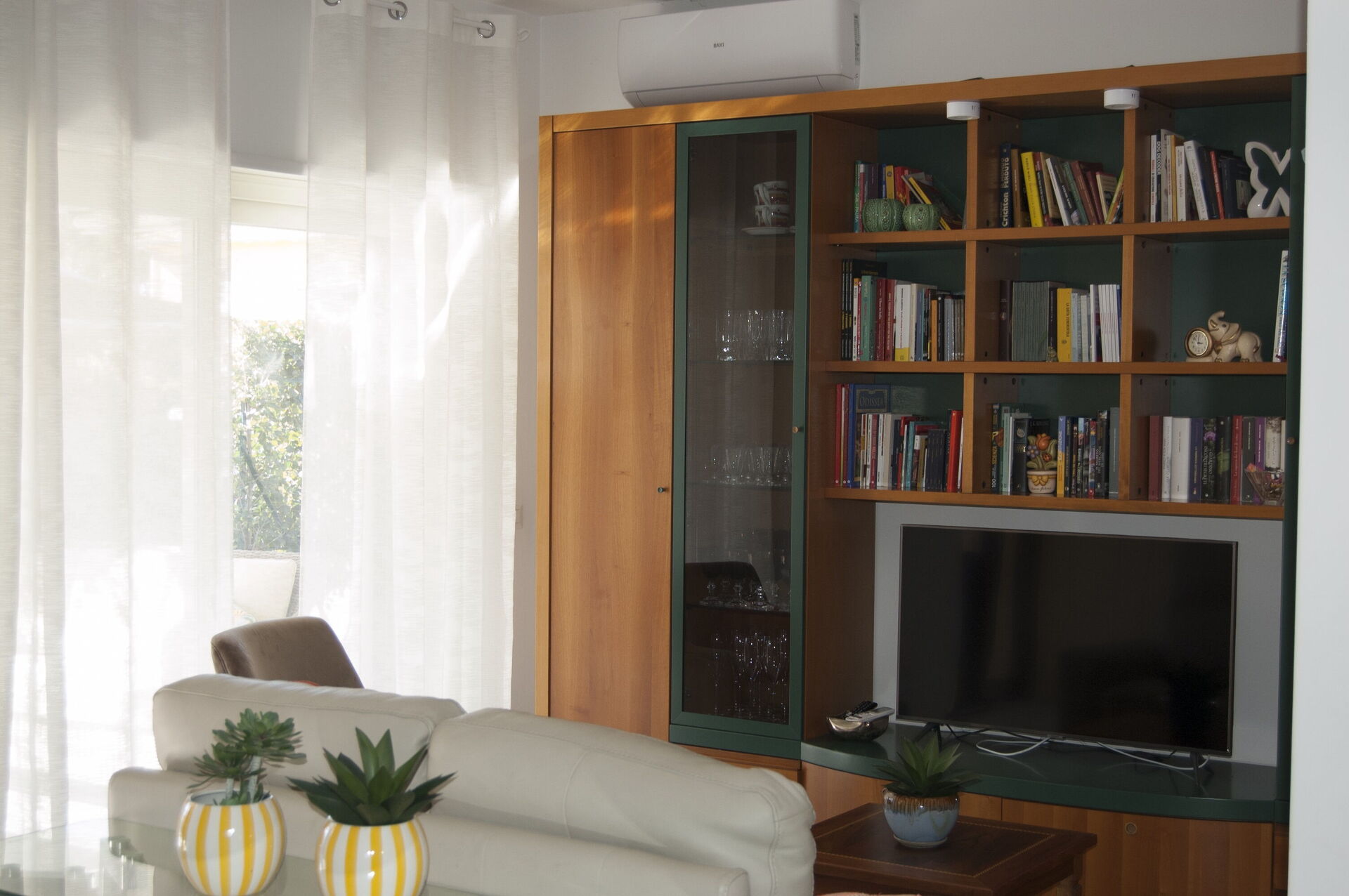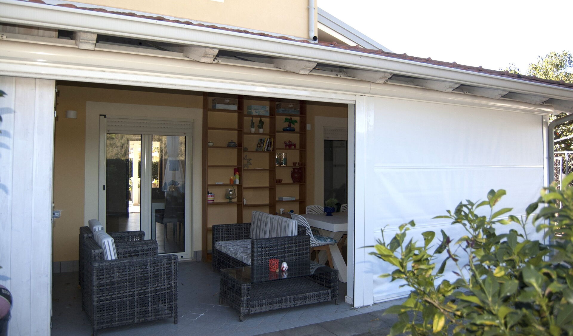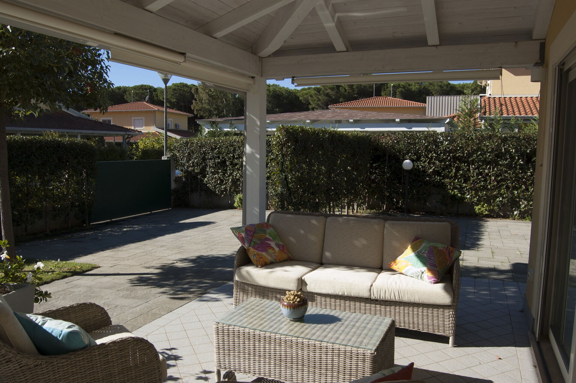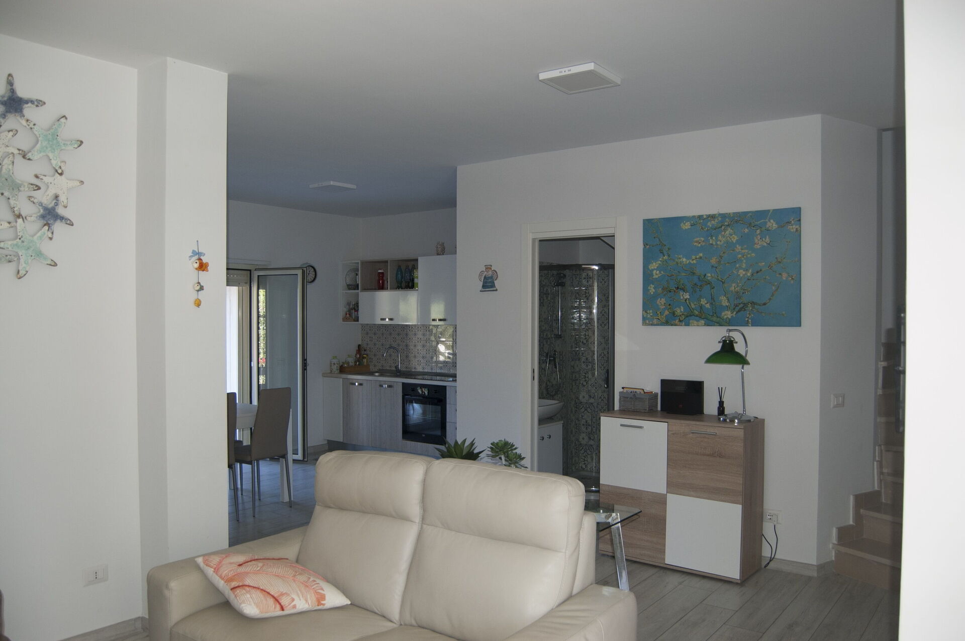 Cocina-salón: cocina bien equipada, mesa de comedor, lavavajillas, frigorífico, congelador, microondas, cocina de gas, horno, tostadora, máquina de café italiana, sofa, WIFI internet, aire acondicionado, televisión, acceso al jardín.