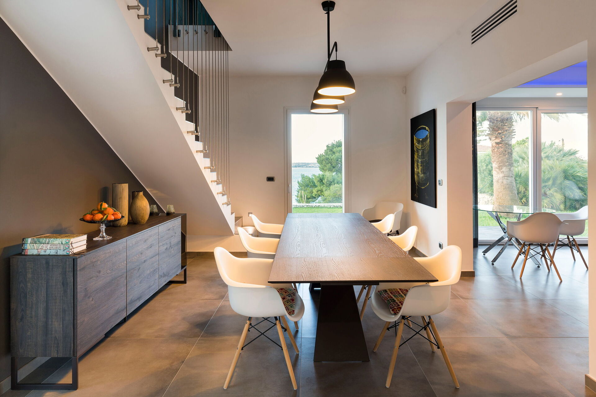 The house is recently built and presents itself as a contemporary residence. It has large and elegant spaces, with a design that includes authentic designer pieces.