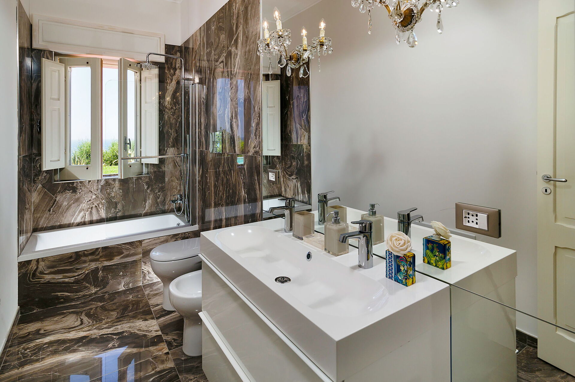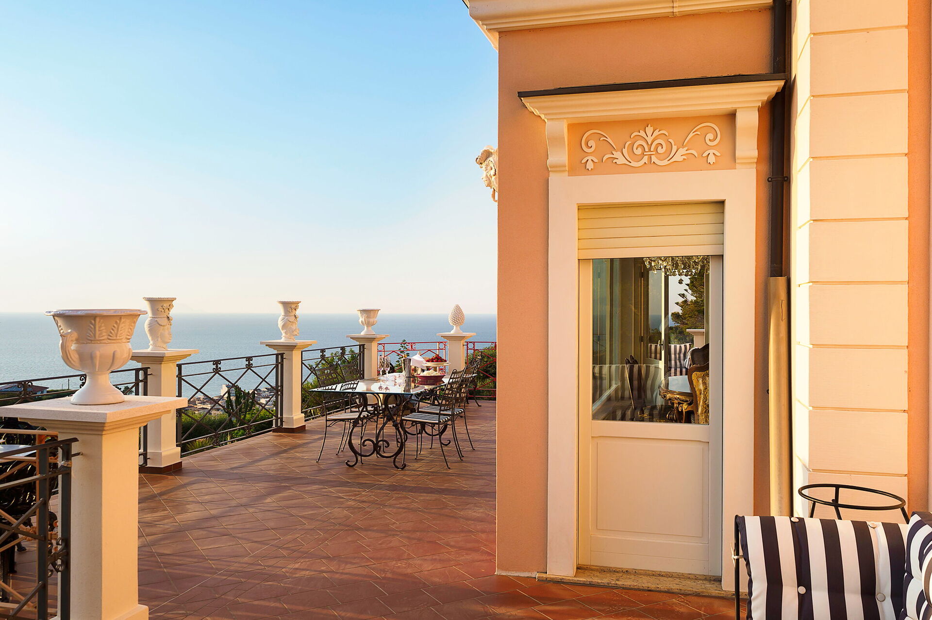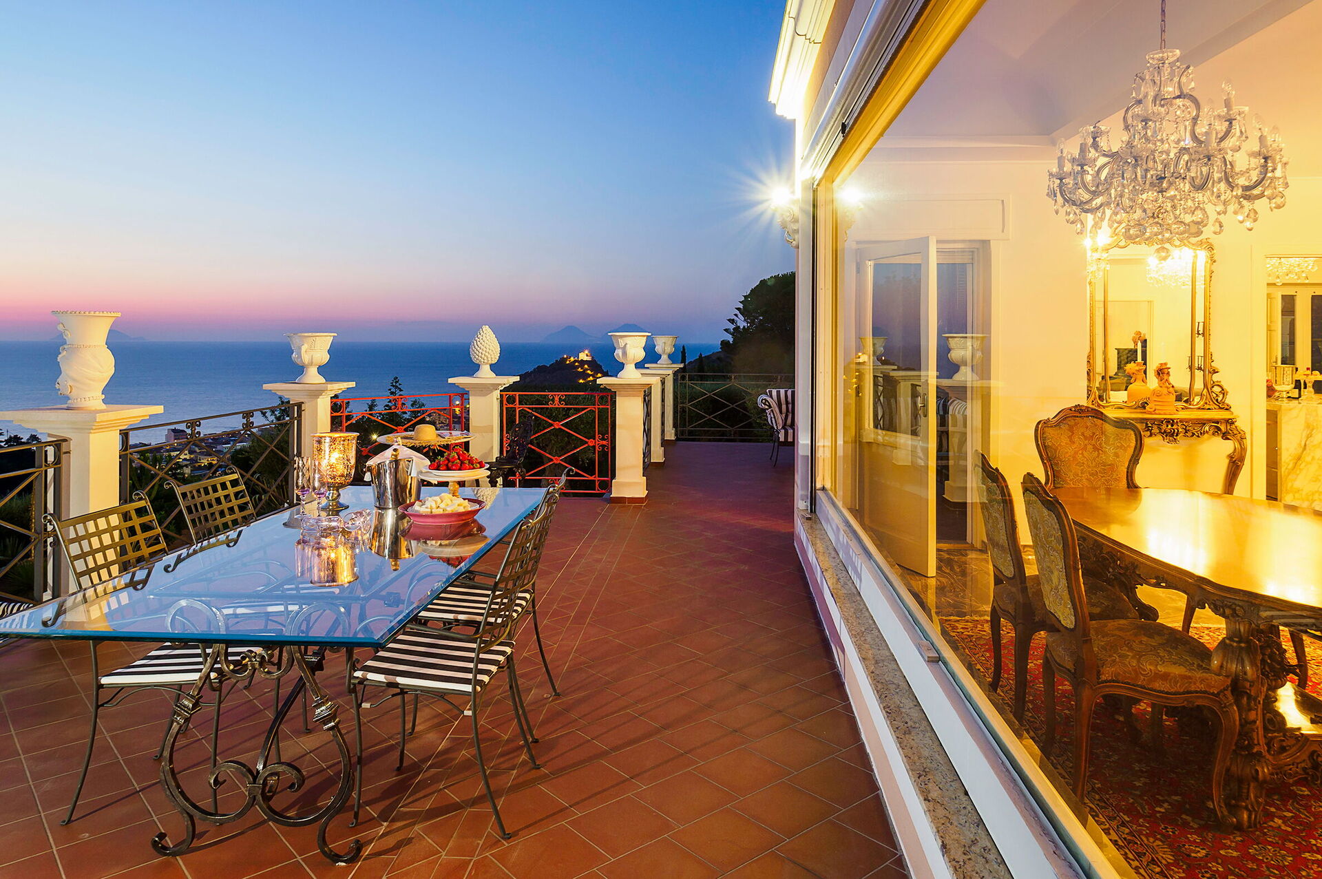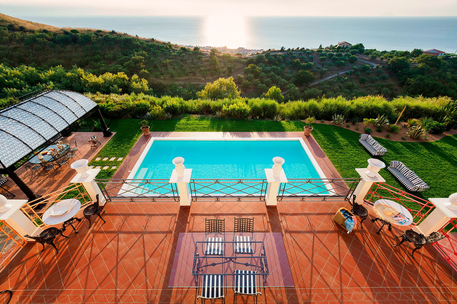 Villa Ester is a luxurious residence with a large lush garden with swimming pool (6x12 m, depth 1.40 m) located near Capo d'Orlando, a renowned seaside resort on the north coast of Sicily. The villa is in a quiet, sunny and panoramic position offering an enchanting view of the sea and the Aeolian Islands, particularly beautiful at sunset. It is equipped with various comforts, including air conditioning and Wi-Fi internet, it is elegant and refined, recently built, with a perfect combination of furnishings and precious materials. Marble floors, antiques and sumptuous lamps characterize the interior spaces. Some of the main attractions in the area are easily reachable, including the beaches of Capo d'Orlando, the villages of the Nebrodi Park, Cefalù, the archaeological area of Tindari, Taormina, Etna and the Aeolian Islands.