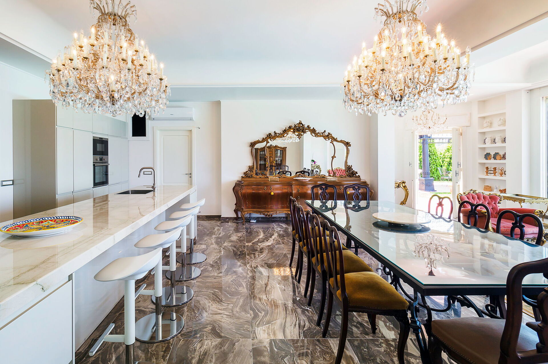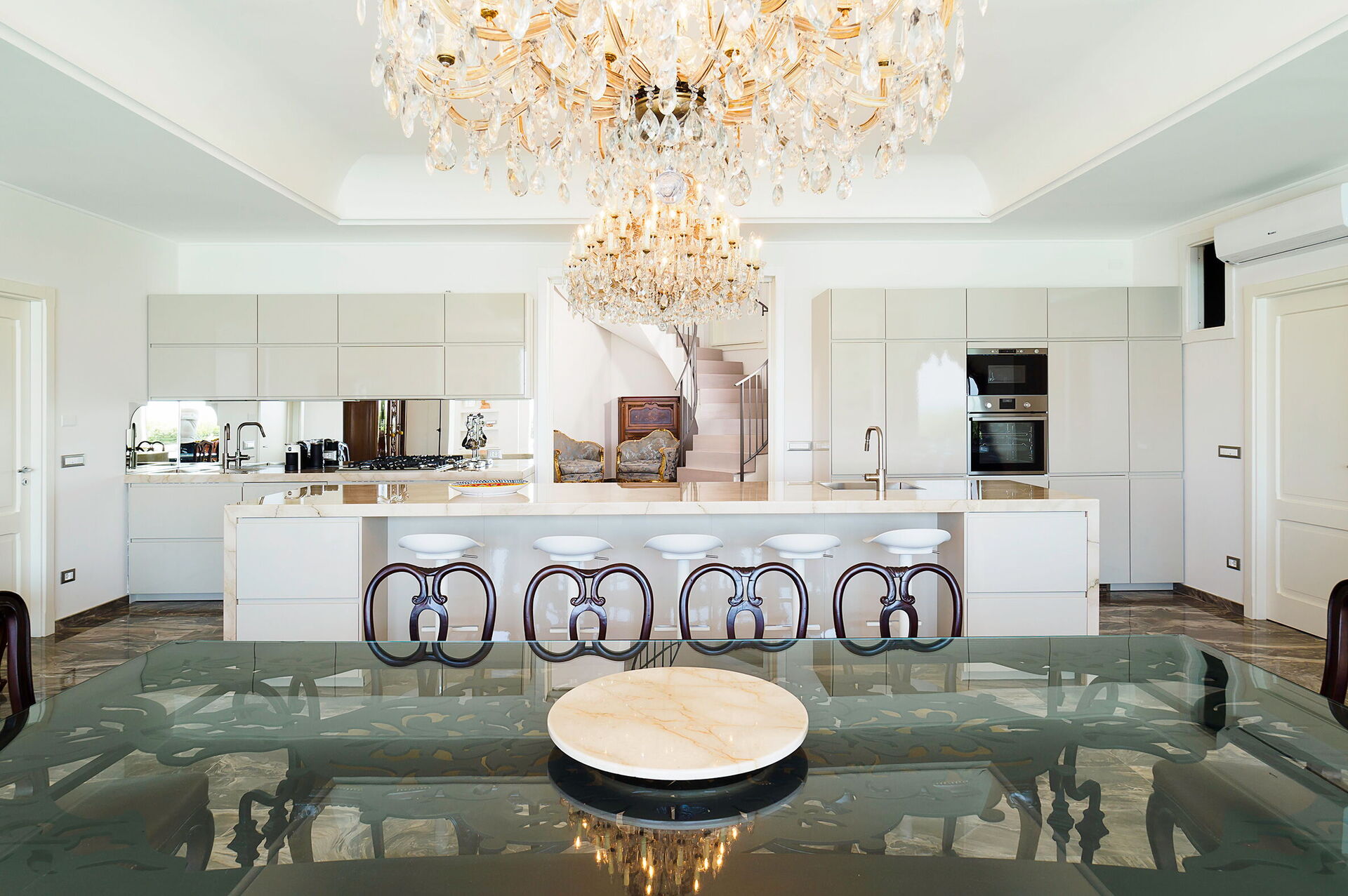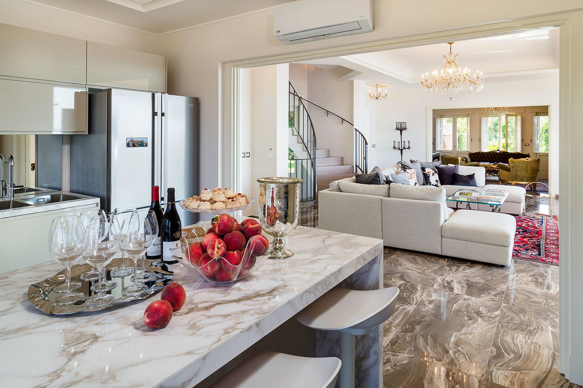 Cocina: cocina bien equipada, lavavajillas, frigorífico, congelador, microondas, cocina de gas, horno, tostadora, máquina de café italiana, máquina de café americana, internet, aire acondicionado, mosquitero, detector de humo, detector de co2, acceso a la terraza.
