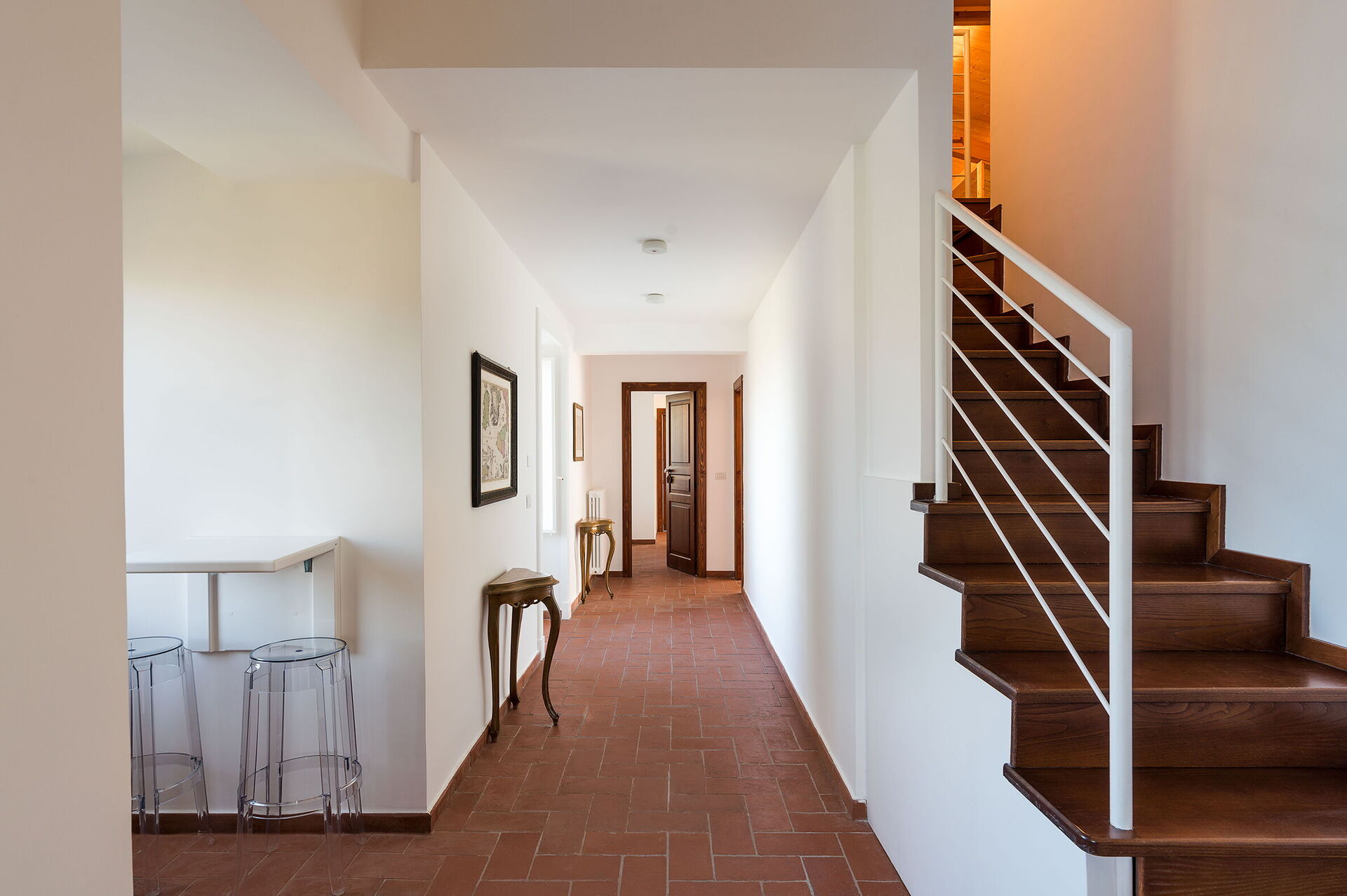 Cocina-salón: cocina bien equipada, mesa de comedor (gente: 8), lavavajillas, frigorífico, congelador, microondas, cocina de gas, horno, tostadora, plancha, máquina de café italiana, máquina de café americana, sofa, sillón, WIFI internet, internet, aire acondicionado, silla alta, televisión, detector de humo, detector de co2, acceso a la terraza.