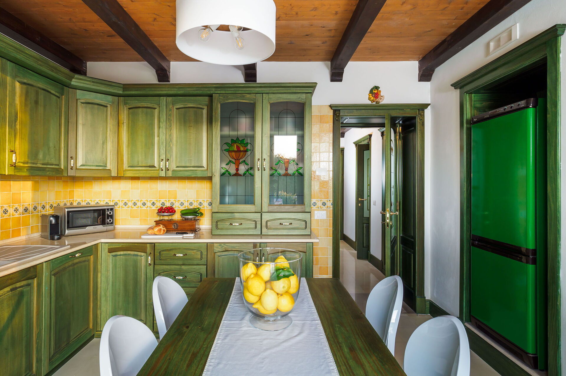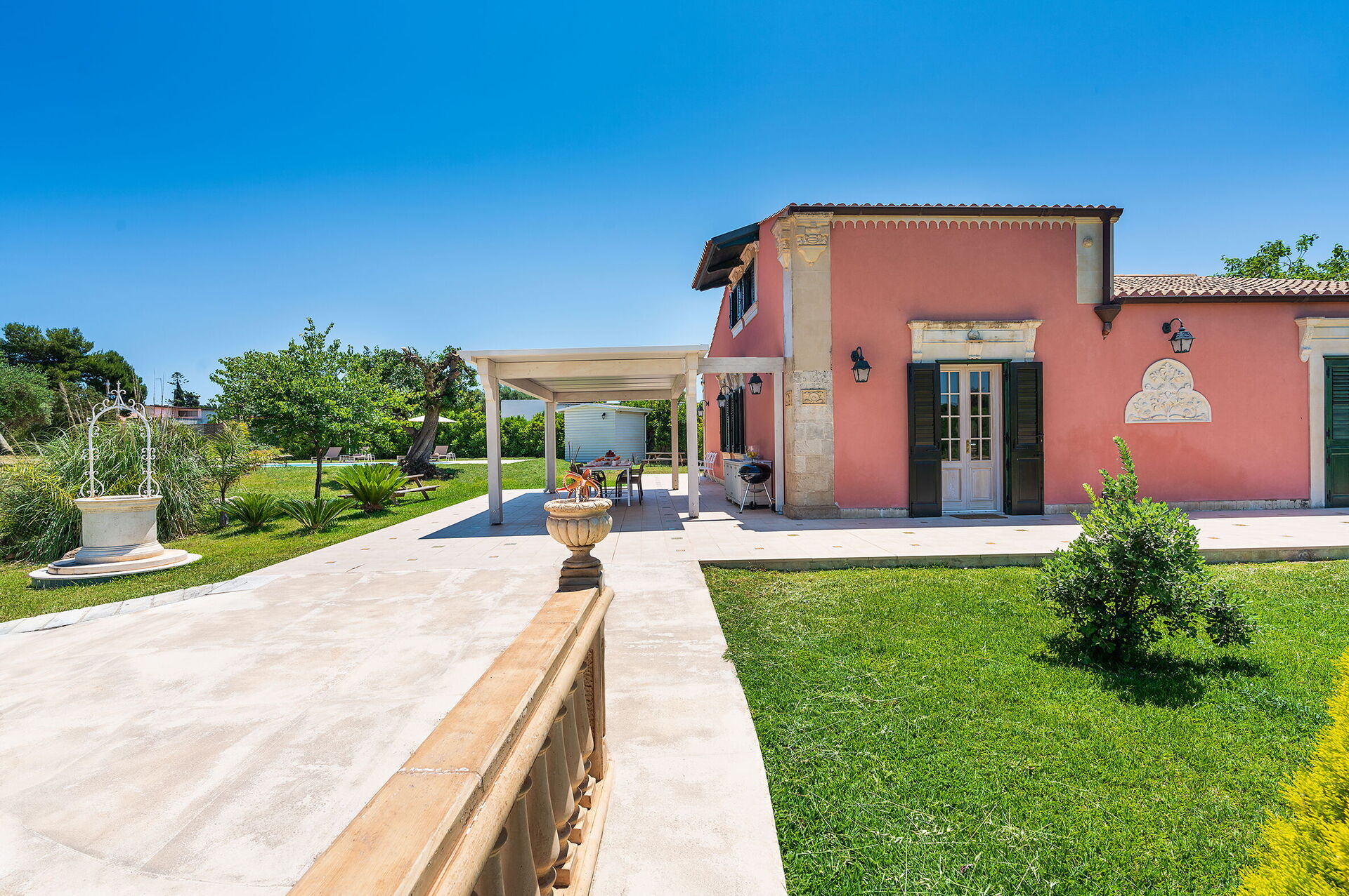 Tras llegar será bienvenido por el propietario u ama de llaves y encontrará una hermosa propiedad limpia y acogedora ideal para unas vacaciones tranquilas en Sicilia. Para su goce encontrará una piscina privada donde puede descansar disfutando de un buen refresco después de un día pasado visitando museos. Comer con familia y amigos es un aspecto de gran importancia en la cultura italiana. Aproveche de una cocina bien equipada para preparar comidas utilizando productos locales durante sus vacaciones. La cocina incluye cafetera, microondas, toaster, estufas y nevera, además de, muchas vajillas y cubiertos para hasta seis personas.