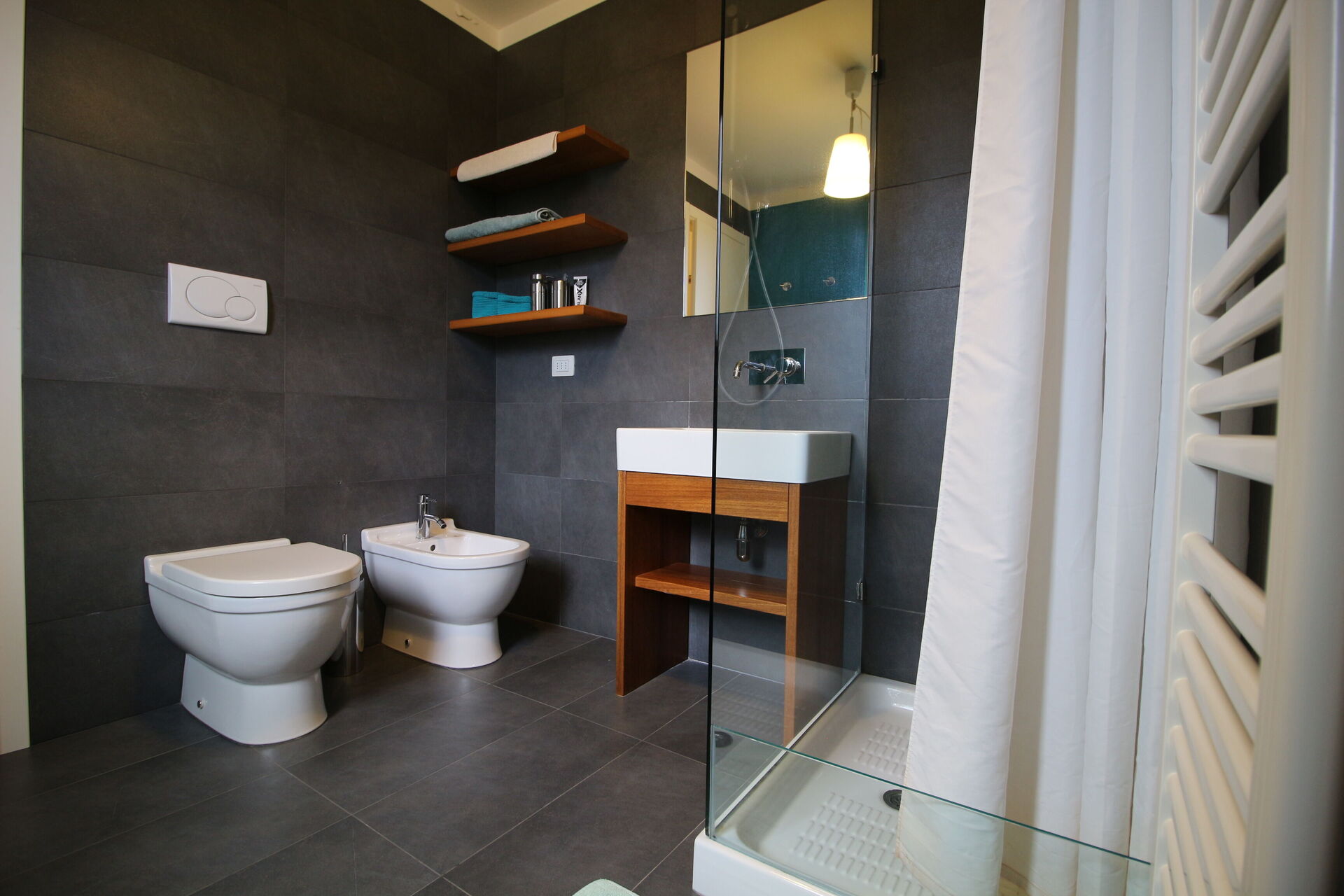 Baño 1: lavabo, baño, bidé, ducha, secador.