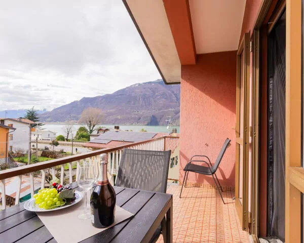 El apartamento tiene una superficie de 120 m² distribuida en una sola planta y aloja un máximo de 5 huéspedes en 2 dormitorios y 1 baño. Se sitúa en la segunda planta sin acceso a ascensor. La zona de estar y comedor es de generosas proporciones, cuenta con una mesa de comedor y acceso directo a uno de los 2 pequeños balcones, desde donde se disfruta de vistas al lago y la montaña; ambos balcones están amueblados con mobiliario de exterior. El primer dormitorio es de matrimonio y ofrece un espacio privado y confortable, mientras que el segundo dormitorio está equipado con 3 camas para alojar a huéspedes adicionales o familias. La cocina, abierta al comedor, está completamente equipada y crea un espacio de convivencia funcional. El baño dispone de ducha, bidé e inodoro.