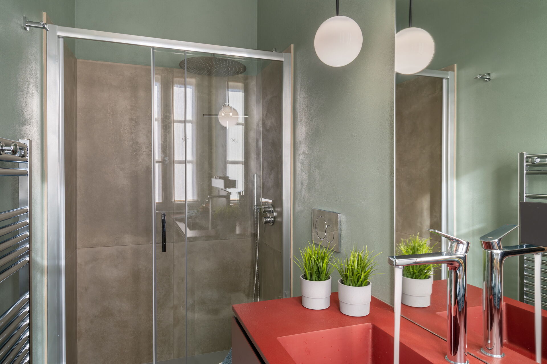 Habitación con baño: cama doble (ancho: 160m, longitud: 190m), WIFI internet, aire acondicionado, lavabo, baño, ducha, secador.