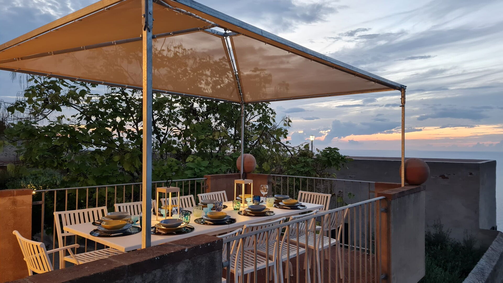 Terraza (30 m2): comer al aire libre, mesa de comedor (gente: 10), WIFI internet, mobiliario de terraza.