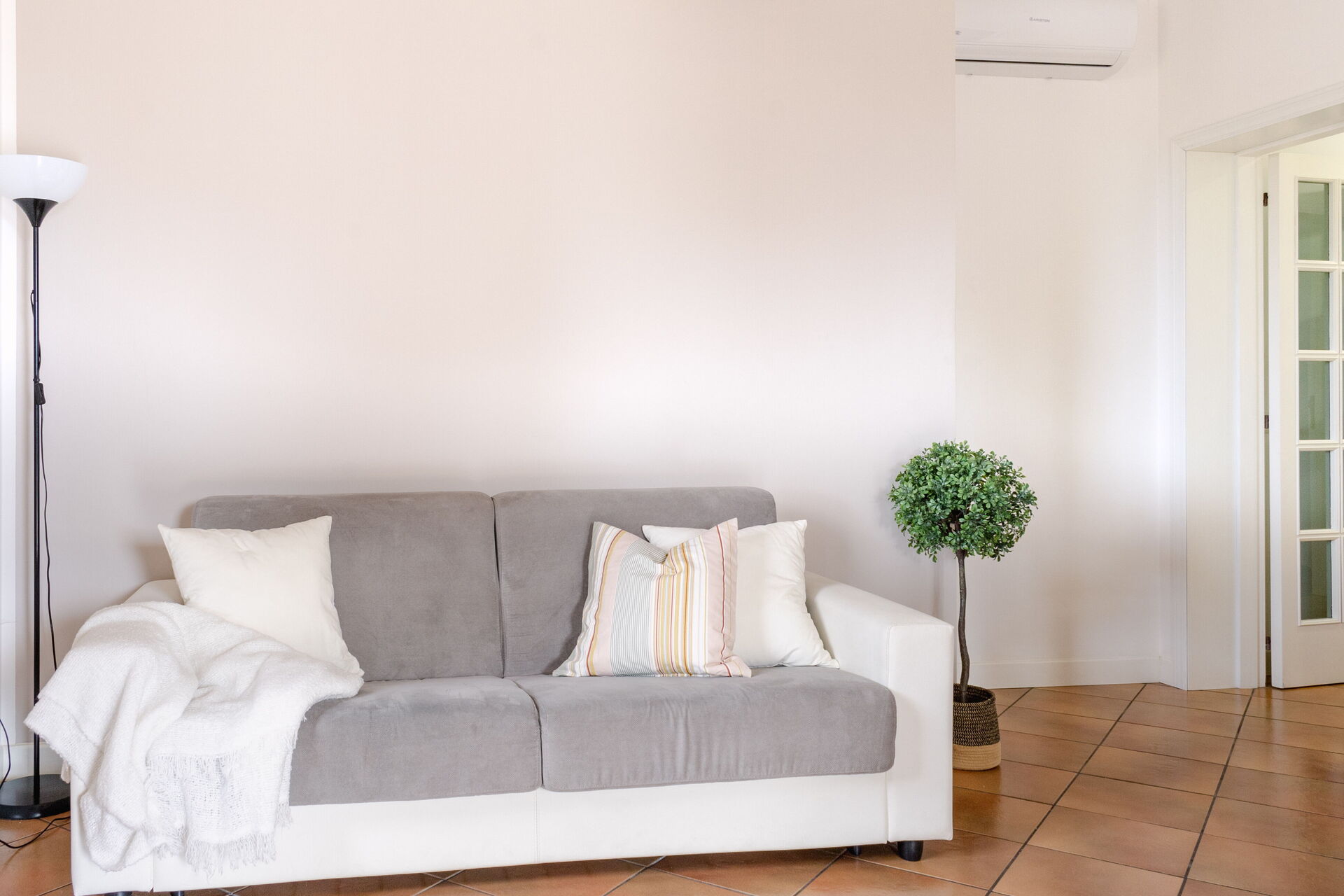 Cocina-salón: cocina bien equipada, frigorífico, congelador, horno, sofá cama de matrimonio, WIFI internet, aire acondicionado, acceso al jardín. Habitación con baño: cama doble, WIFI internet, aire acondicionado, lavabo, baño, bidé, secador.