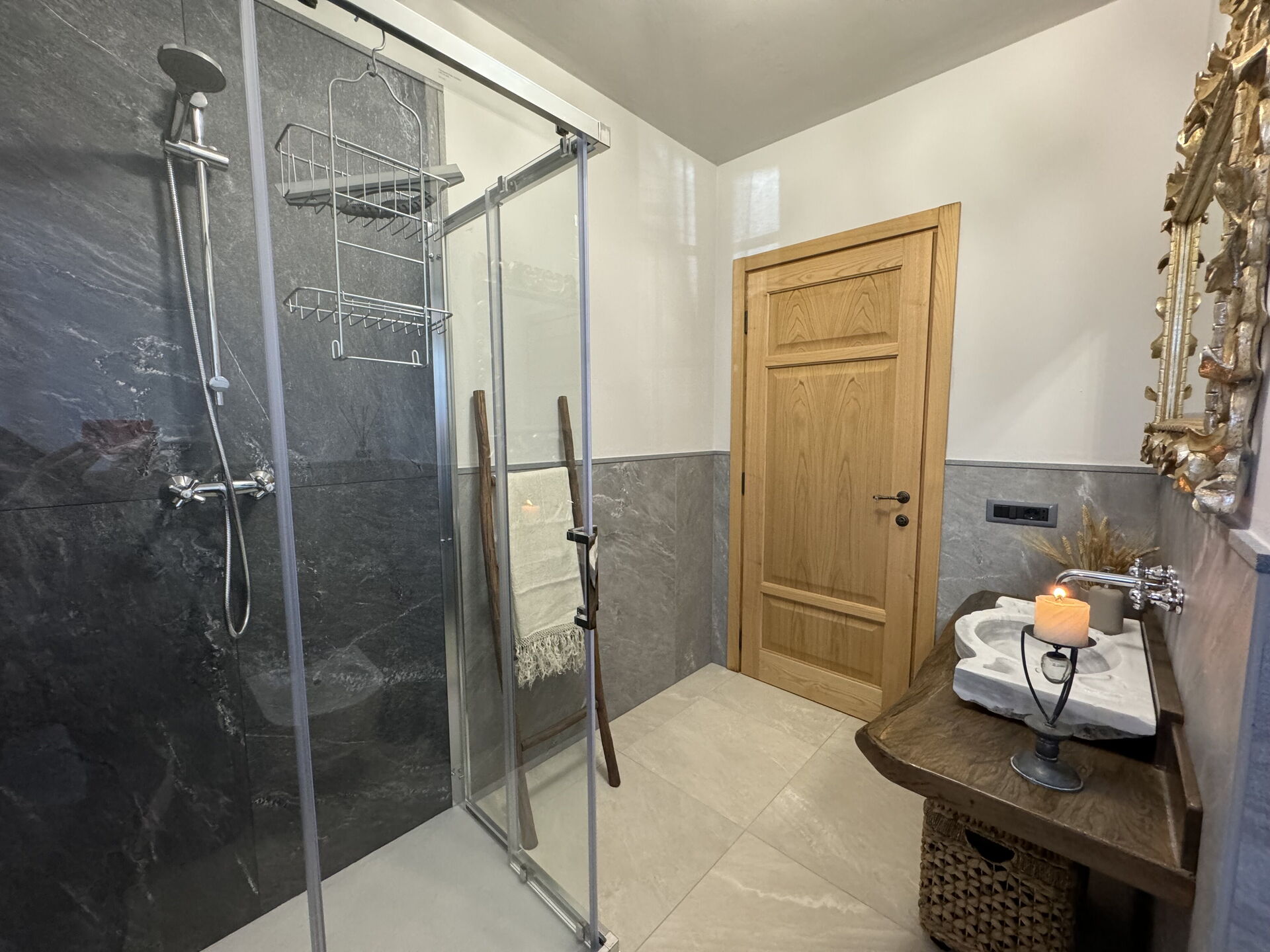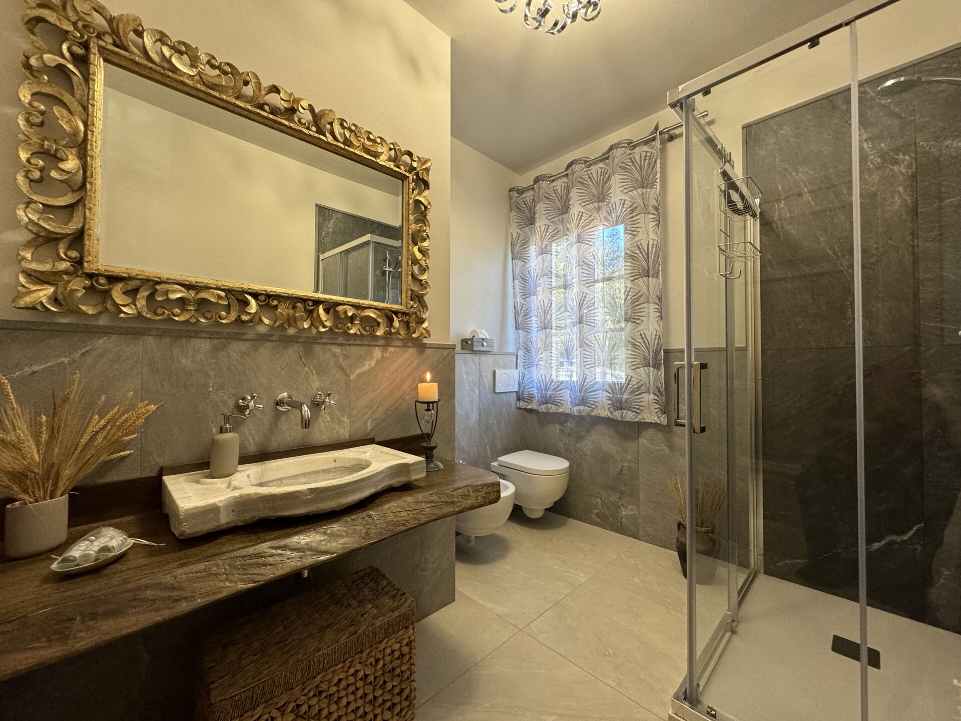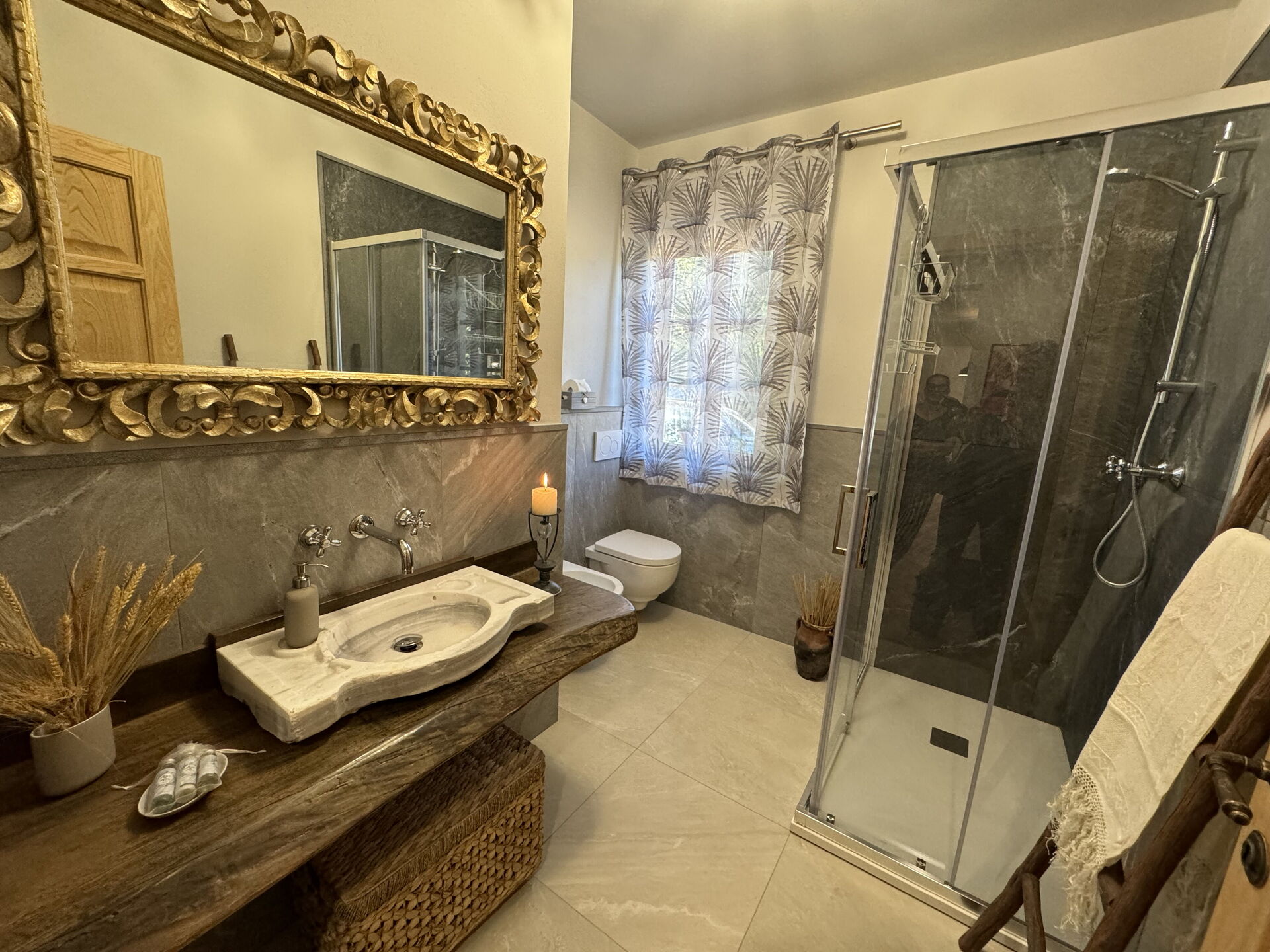 Baño: lavabo, baño, bidé, ducha, secador.
