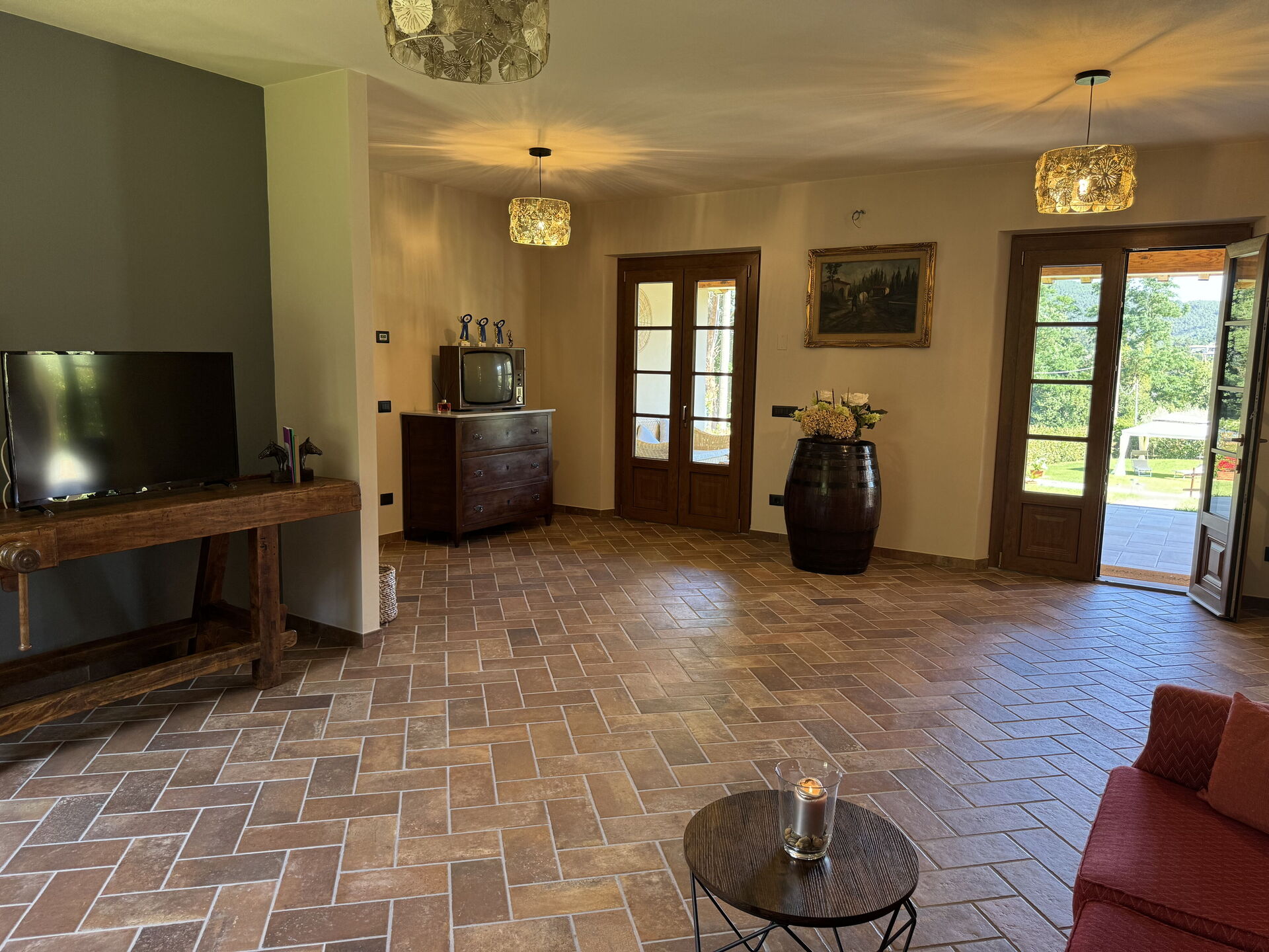 The owners offer (on payment) a transfer from the airport to the holiday home or other day trips (English-speaking driver). A public swimming pool, tennis club and golf driving ranch are located nearby (Vicopelago 6 km). There is even a riding stable in the village of S. Maria del Giudice.