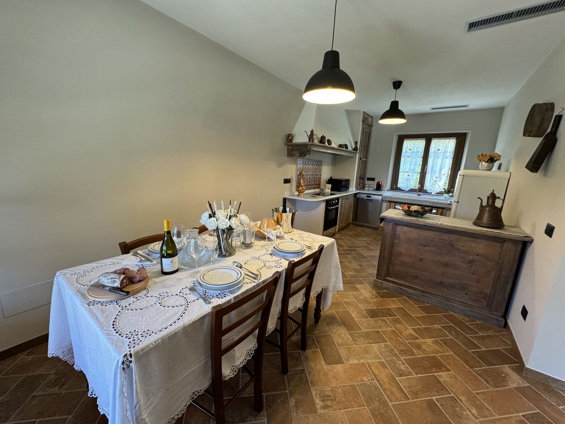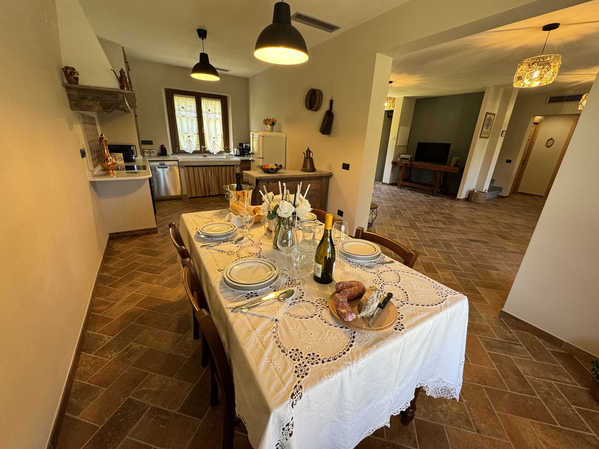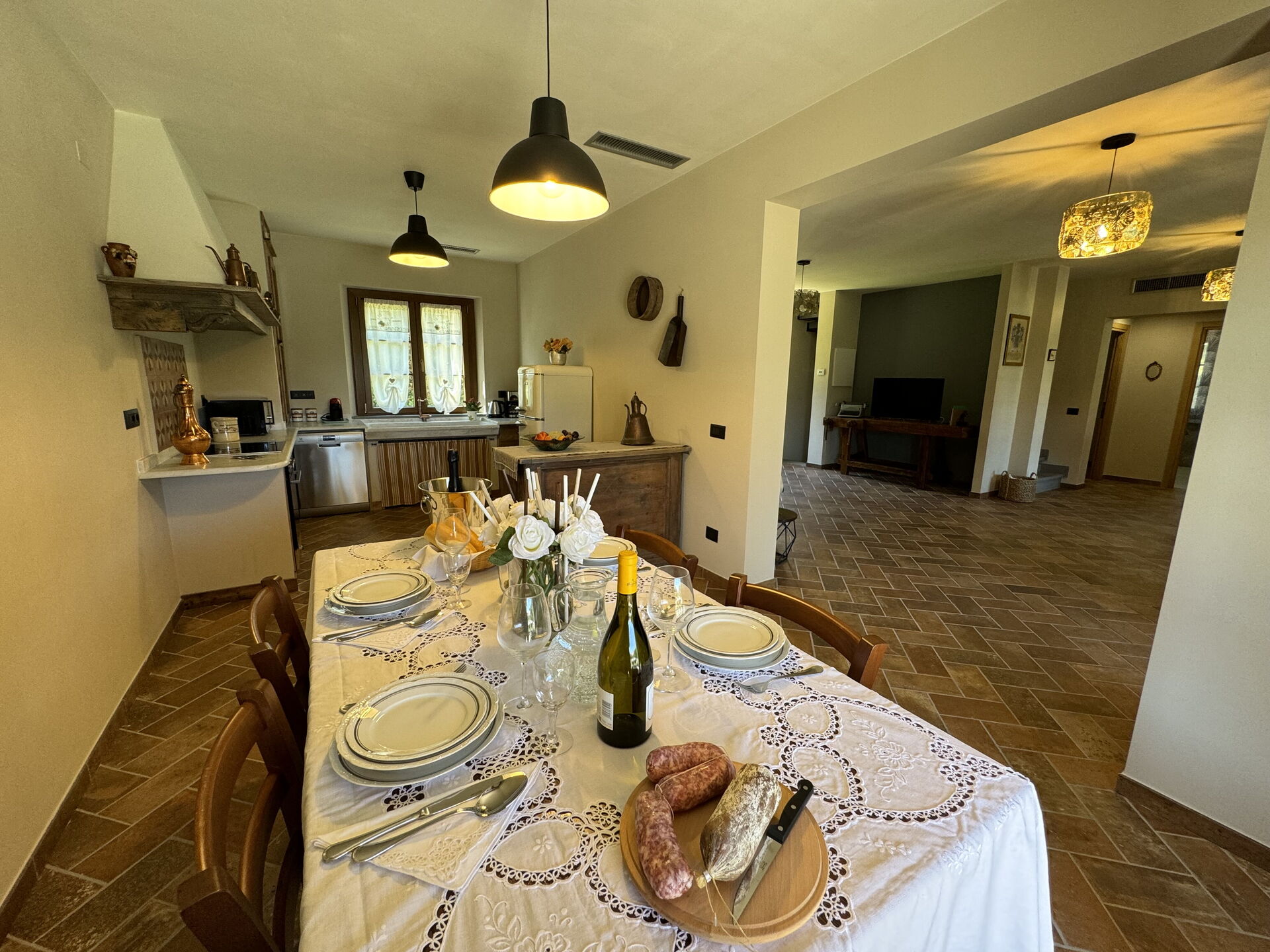 Tras llegar será recibido por el propietario u ama de llaves y encontrará una estupenda propiedad limpia y acogedora ideal para unas vacaciones relajantes en Toscana. Para su goce encontrará jardín privado donde puede descansar gustandose un buen refresco después un día pasado de excursiones.Uno de los beneficios de estar en una casa de vacaciones sino que en hoteles, es la posibilidad de relajarse tras un largo día de visitas con la familia y los amigos. Al anochecer sigue disfrutando con una buena comida y un buen vino local. Comer con familia y amigos es un aspecto de gran importancia en la cultura toscana. Aproveche de una cocina bien equipada para preparar comidas utilizando productos locales durante sus vacaciones. La cocina incluye cafetera, microondas y nevera, además de, muchas vajillas y cubiertos para hasta siete personas.