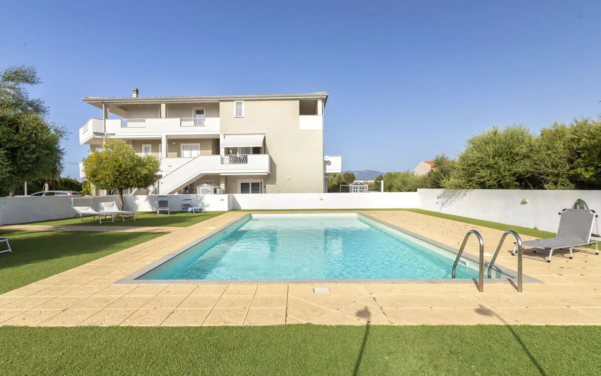 Casa de apartamentos "Residenza il Quarzo", moderno, agradable de 2 plantas del año 2020. La Muddizza, a 4 km del centro de Valledoria, lugar tranquilo, soleado en un barrio residencial, a 2 km del mar, a 2 km de la playa. Comunitario: piscina (6 x 12 m, 125 cm de profundidad, Disponible por temporada: 01.Jun. - 30.Sep.). Ducha exterior. Acceso por escaleras (18 escalones) hasta la casa. Aparcamiento n. 6 junto a la casa. Supermercado, centro comercial, restaurante 300 m, parada autobús 4 km, playa de arena "Baia Verde" 2 km. Atracciones en los alrededores: Isola Rossa 20 km, Costa Paradiso 30 km, Stintino 78 km, Olbia 87 m, Porto Torres 48 km, Alghero. A tener en cuenta: coche recomendable, sin ascensor.