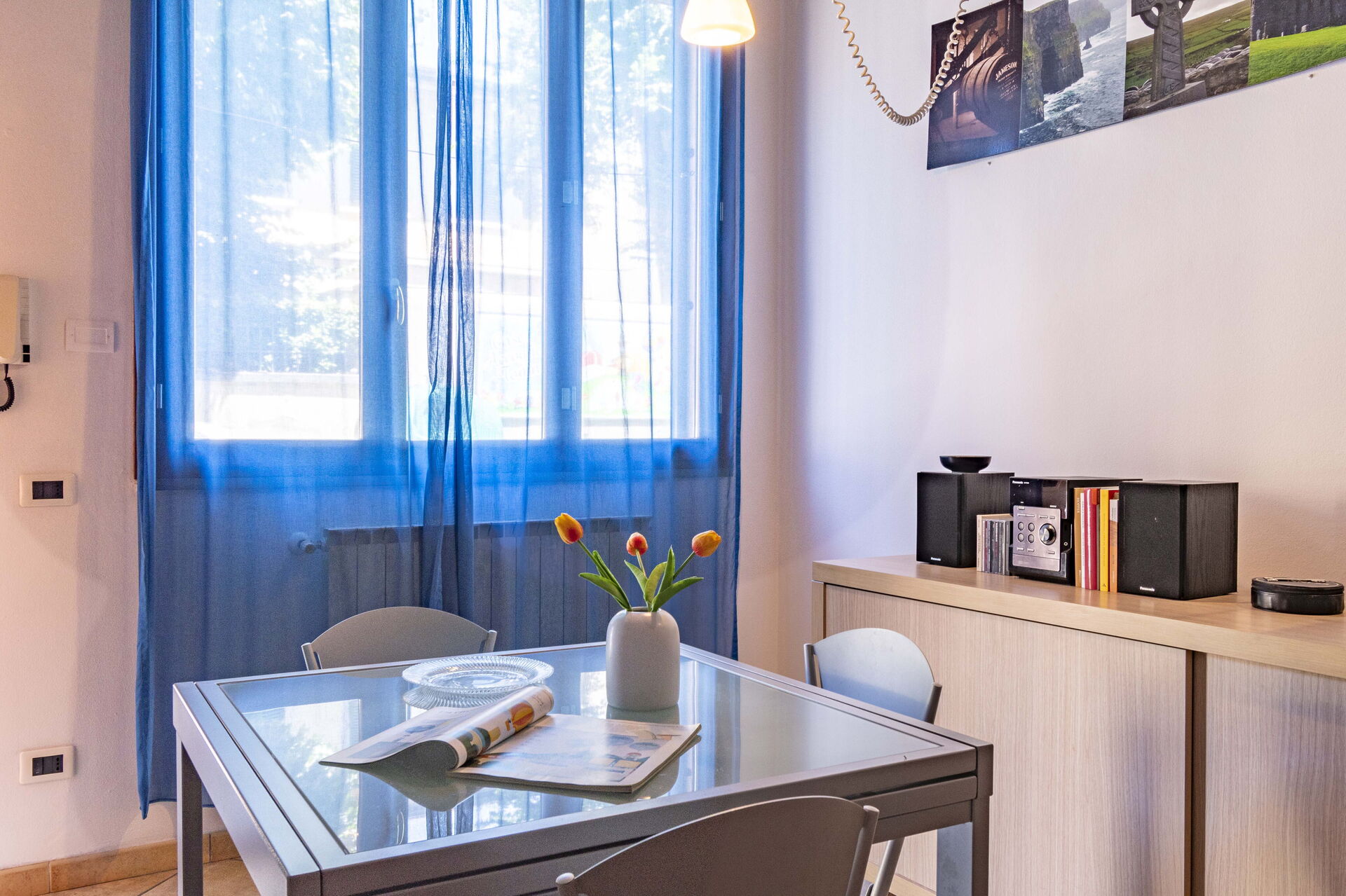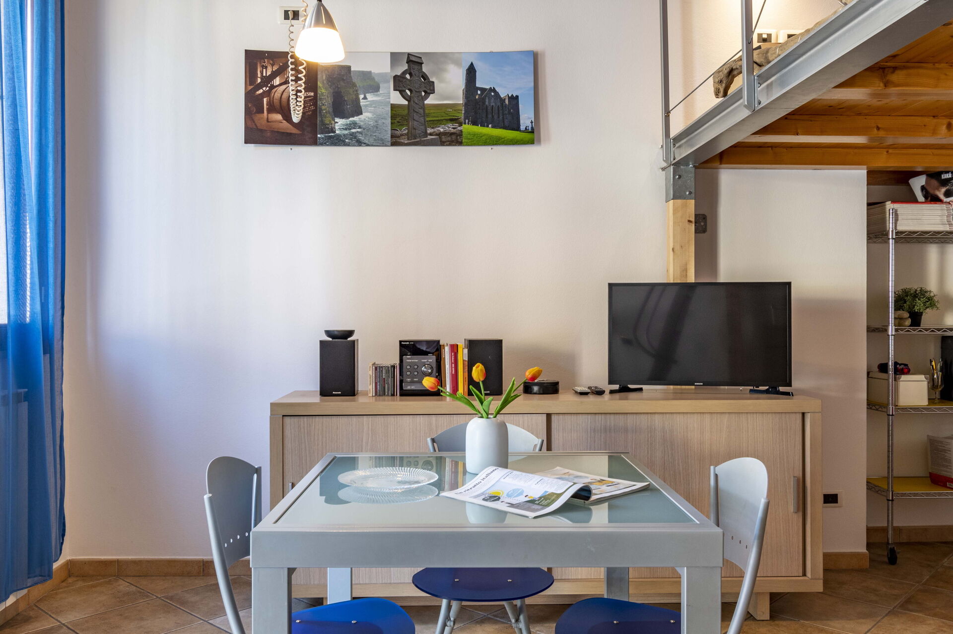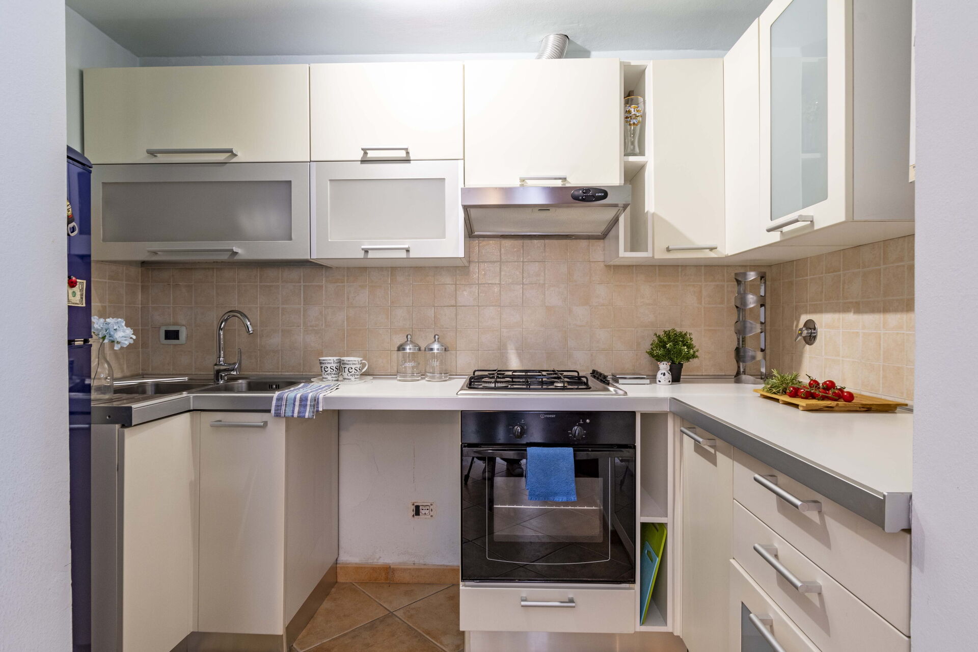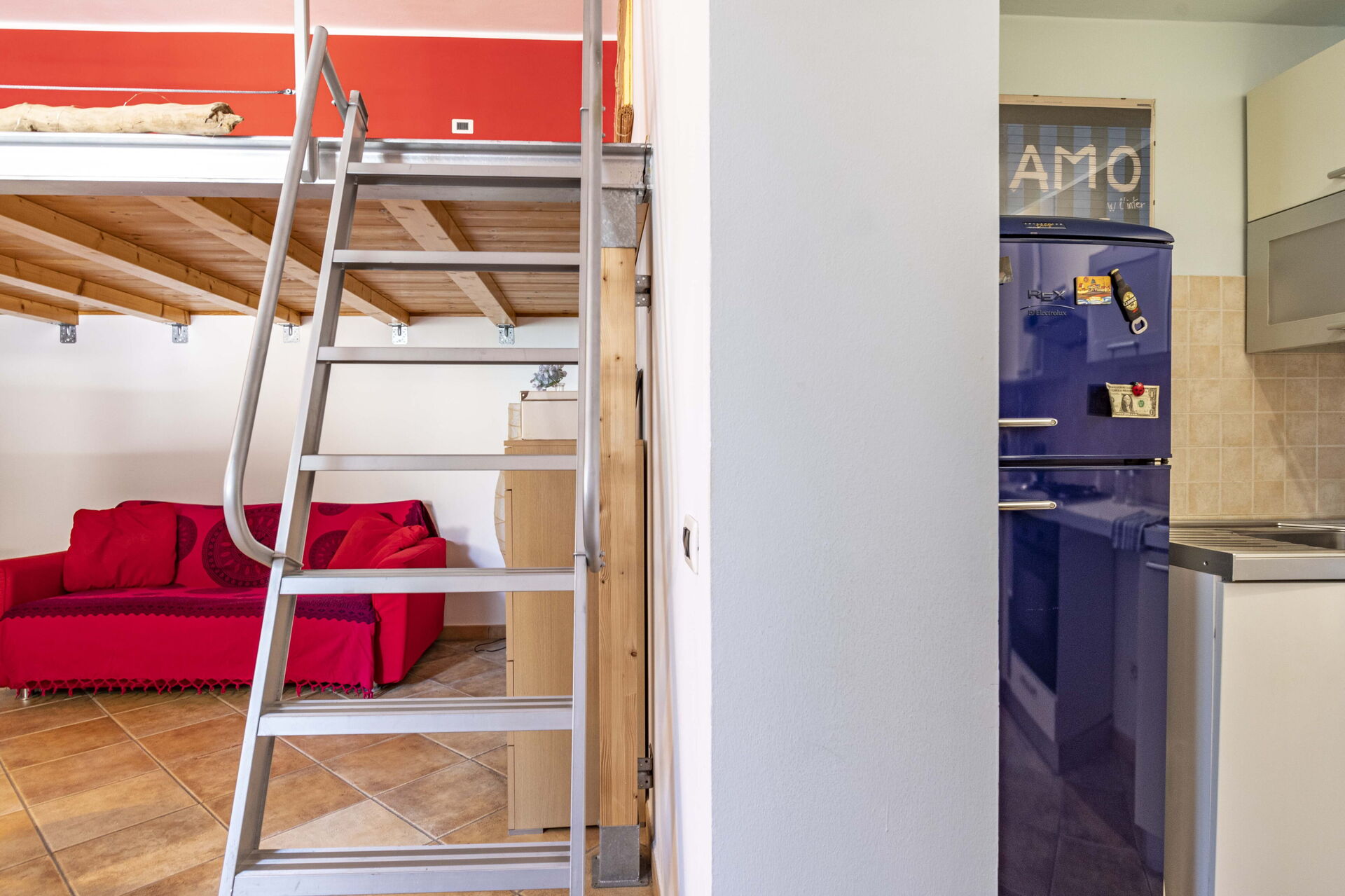Cocina-salón: cocina bien equipada, mesa de comedor, frigorífico, congelador, cocina de gas, horno, tostadora, máquina de café italiana, sofá cama de matrimonio, WIFI internet, tv vía satélite, altillo.