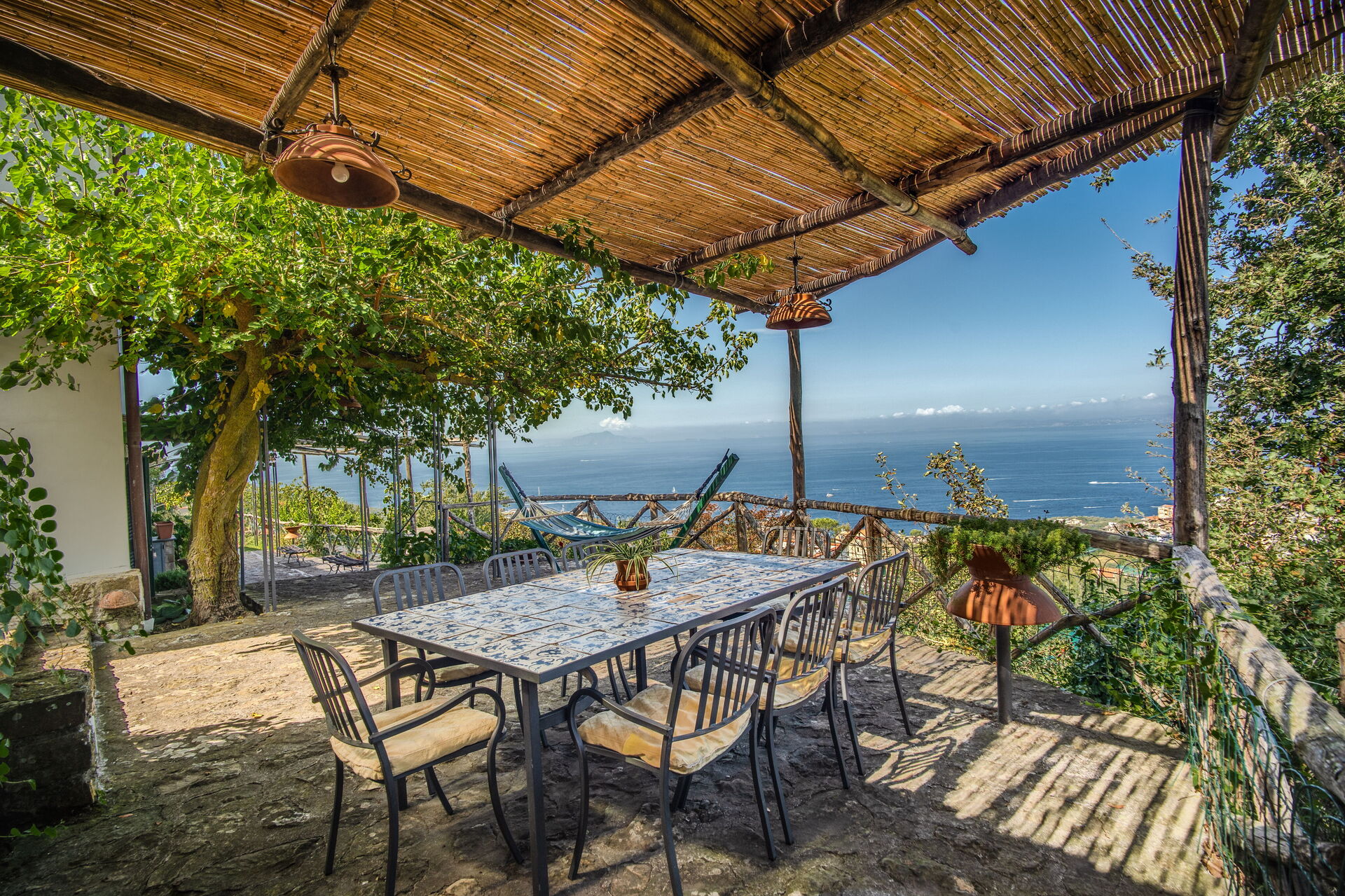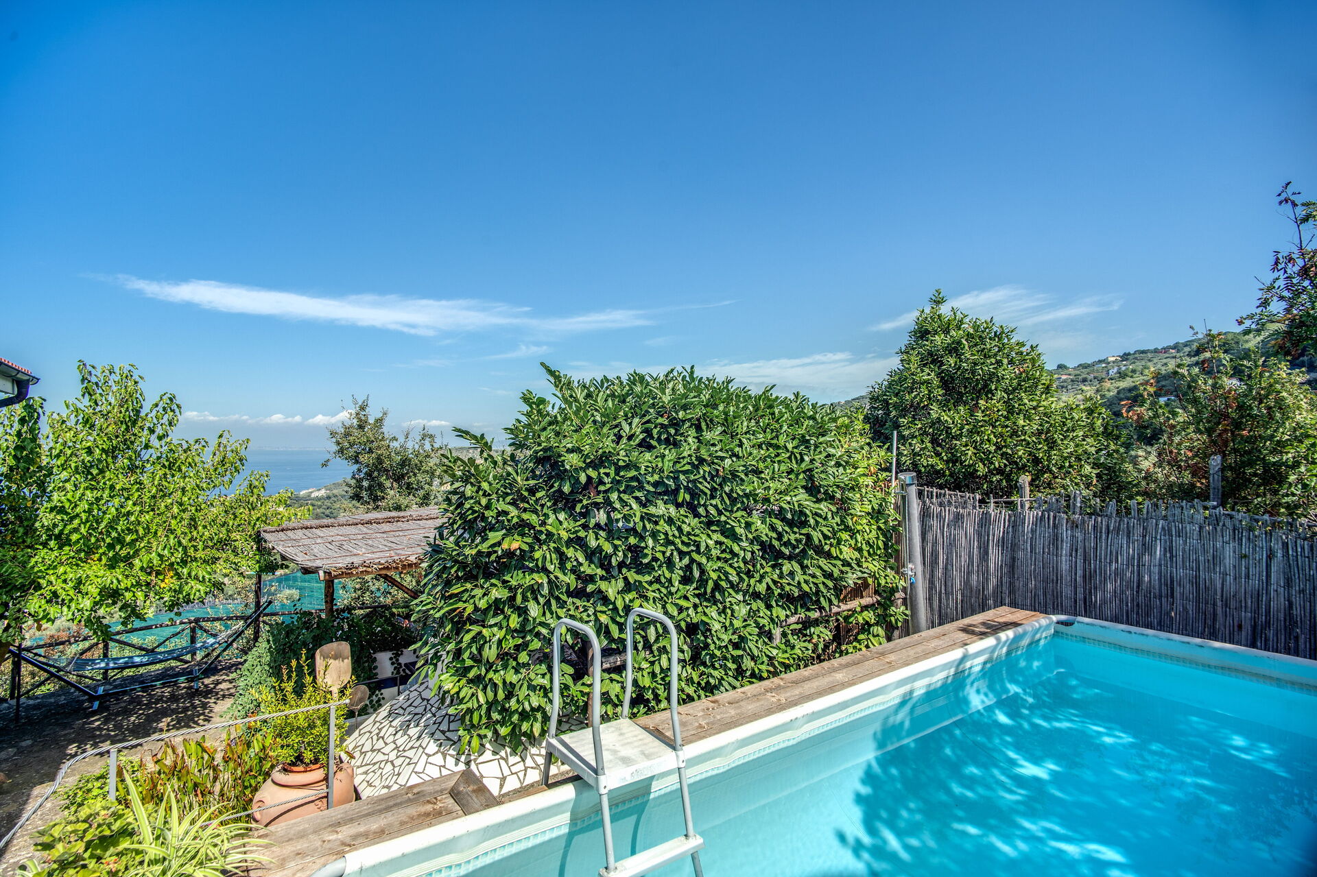 Después de llegar será acogido por el propietario u ama de llaves y encontrará una hermosa propiedad limpia y acogedora with views of el mar ideal para unas vacaciones relajadas en Campania. Para su goce encontrará una piscina privada donde puede descansar disfutando de un buen refresco después de un día pasado visitando museos. Afuera encontrará parrilla y porche. Si le gusta cocinar para su familia y amigos hay una cocina bien equipada incluso máquina de café, microondas, tostador, estufa y nevera, así como , muchas vajillas y cubiertos para hasta nueve personas.