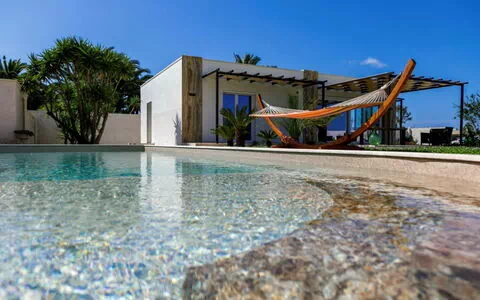 Villa "Incoronata New Dependance", moderna, lujosa del año 2024, rodeada de árboles y campos. A 1 km del centro de Nardò-Città del Barocco Leccese, a 15 km del centro de Gallipoli, a 24 km del centro de Lecce, lugar tranquilo, soleado, a 3 km del mar, a 3 km de la playa, en el campo. Privado: terreno (vallada), jardín grande, bonito, cuidado 1'200 m2 (vallado) con flores y árboles, terreno con hierba, piscina occulta desde el exterior (4 x 10 m, 50 - 140 cm de profundidad, Disponible por temporada: 01.Abr. - 30.Oct.). WC en zona de piscina, ducha exterior, porche, muebles de jardín, barbacoa, mantenimiento de la piscina a través del propietario/jardinero. En el inmueble: alarma. Cambio de sábanas (suplemento extra). Cambio de toallas (suplemento extra). Aparcamiento junto a la casa. Tienda de comestibles, supermercado 700 m, restaurante 3 km, bar 3 km, panadería 3 km, parada autobús 700 m, estación de tren "Nardò" 3 km, playa de arena "Santa Caterina" 3 km, playa rocosa "Porto Selvaggio" 3 km. Tenis, polideportivo 350 m. Atracciones en los alrededores: Melpignano - Città della Taranta 40 km, Otranto 60 km, Santa Maria di Leuca-Punta Sud Puglia 60 km, Alberobello 143 km, Polignano a Mare 149 km, Matera 162 km. Zona de senderismo Parco Naturale Porto Selvaggio 25 km, Parco Naturale Terra delle Gravine 119 km, Grotte carsiche di Castellana 155 km. A tener en cuenta: coche recomendable. La propiedad con ref: IT6770.810.1 está situada en la misma parcela.