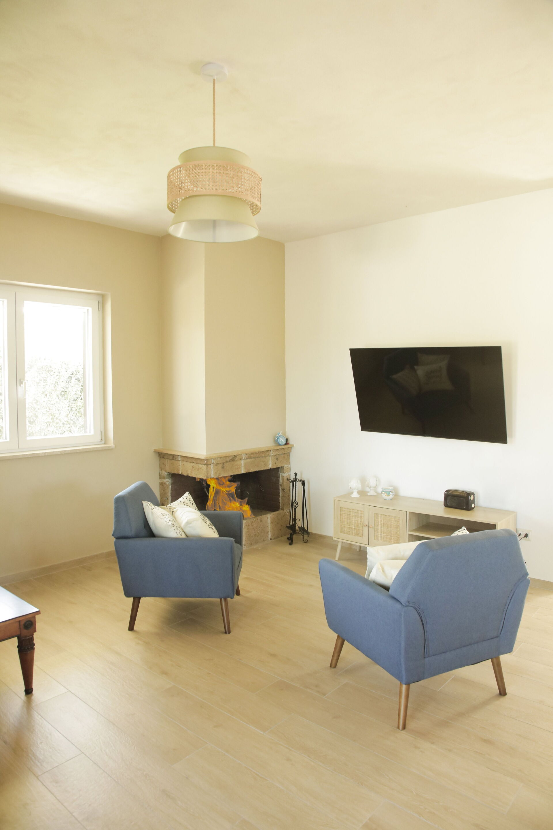 Cocina-salón (70 m2): cocina bien equipada, frigorífico, congelador, microondas, cocina de gas, horno, plancha, lavadora, secador, dos sillones, chimenea, sofá cama de matrimonio (ancho: 160m, longitud: 200m), WIFI internet, aire acondicionado, mosquitero, acceso al jardín, acceso a la terraza, acceso al porche.