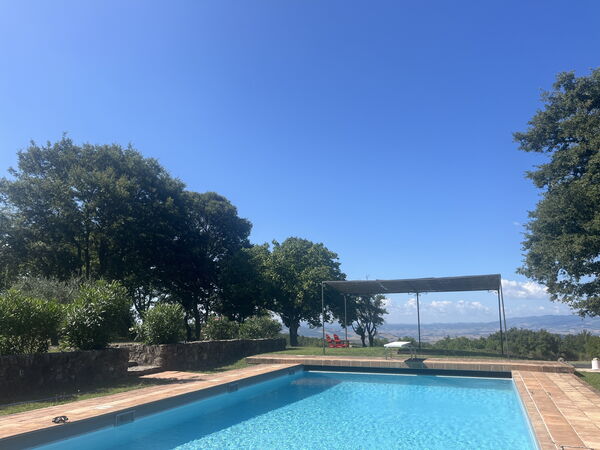 Después de llegar a Villa Il Troscione encontraras una hermosa propiedad limpia y acogedora con vista sobre las montañas y las colinas perfecta para unas vacaciones relajantes en Toscana. Después un día pasado haciendo compras, disfrute de una buena copa de vino con sus amigos y su familia al lado de la piscina - lo mejor para descansar después de un largo día. Al aire libre encontrará porche y barbacoa.
