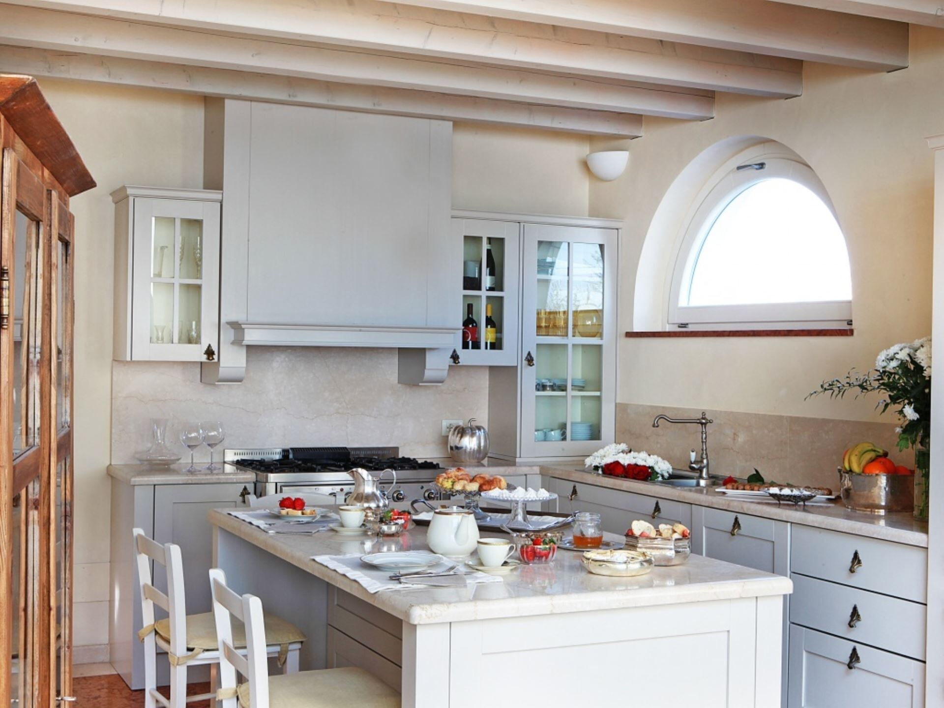 - Set de bienvenida compuesto por 1 botella de aceite de oliva virgen extra, 1 botella de vinagre balsámico, 3 botellas de vino local, 6 botellas de agua, cestas de fruta fresca, sal, pimienta, azúcar, café, papel higiénico, papel de cocina, bolsas de basura y detergentes