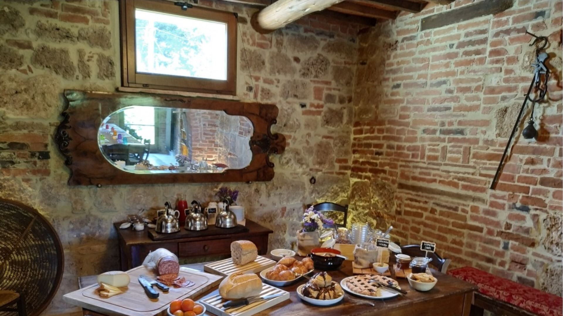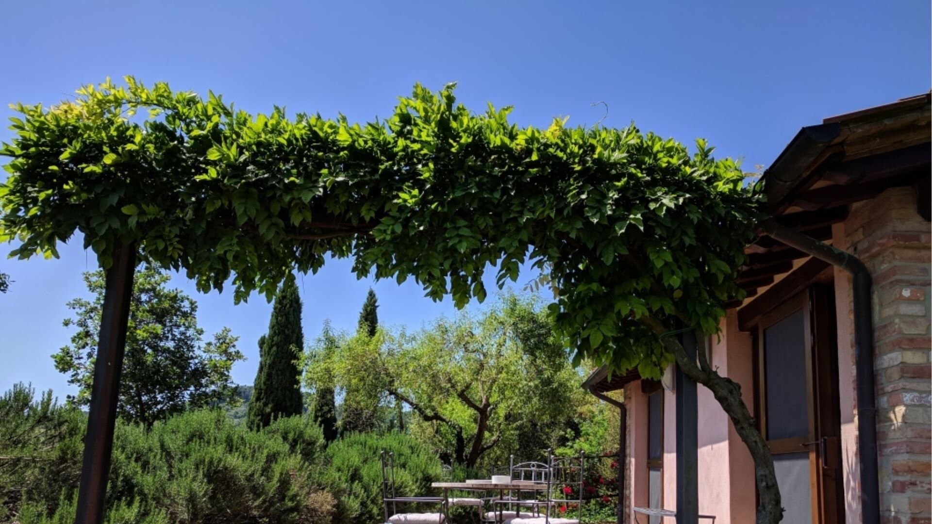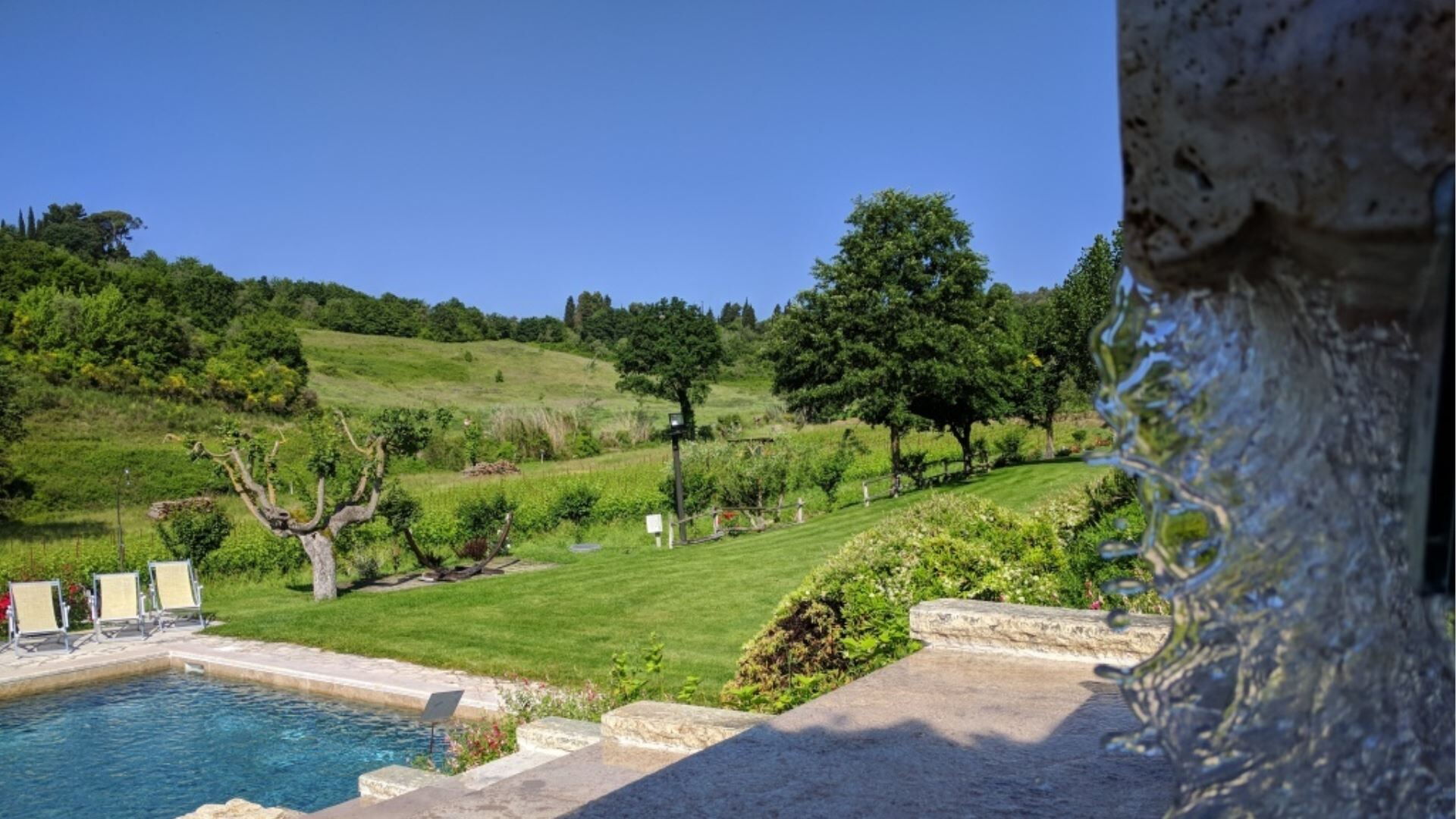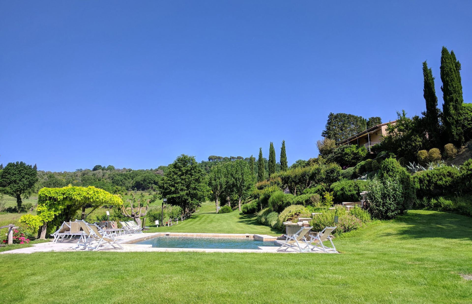 Los espacios exteriores de Podere della Bruciata están diseñados para maximizar su disfrute del impresionante paisaje toscano. El elemento central es una generosa piscina de 7 por 14 metros con una profundidad que oscila entre 1 y 1,50 metros, bellamente realzada por una cascada que crea un ambiente relajante. La piscina está rodeada de espacios verdes bien cuidados, perfectos para tomar el sol y relajarse al aire libre. Encontrarán un amplio porche con cenador y mesas, proporcionando áreas sombreadas para cenas al aire libre mientras contemplan las vistas panorámicas de las colinas circundantes. Hay una instalación de barbacoa disponible para su placer culinario al aire libre, permitiéndoles preparar deliciosas comidas al aire libre. La sección del granero de la propiedad cuenta con su propio porche con vistas directas a la zona de la piscina, mientras que el edificio principal ofrece un encantador rincón ajardinado con vistas hacia Chiusi. La piscina está abierta del 15 de abril al 15 de octubre, garantizando disponibilidad durante los meses más cálidos.