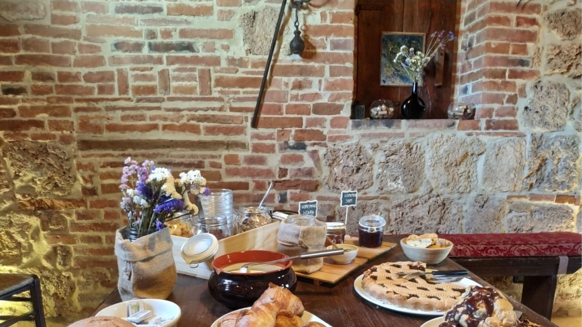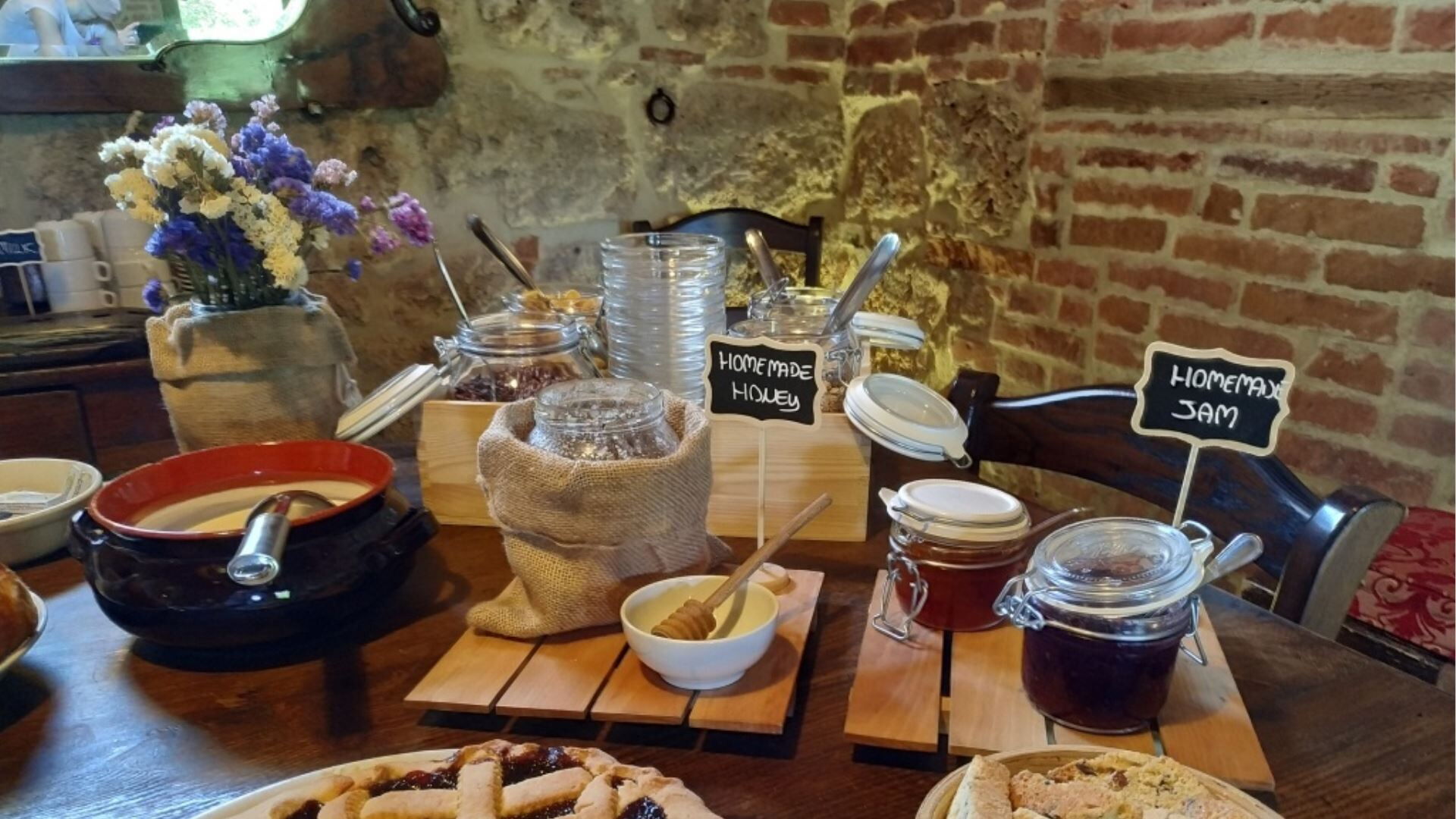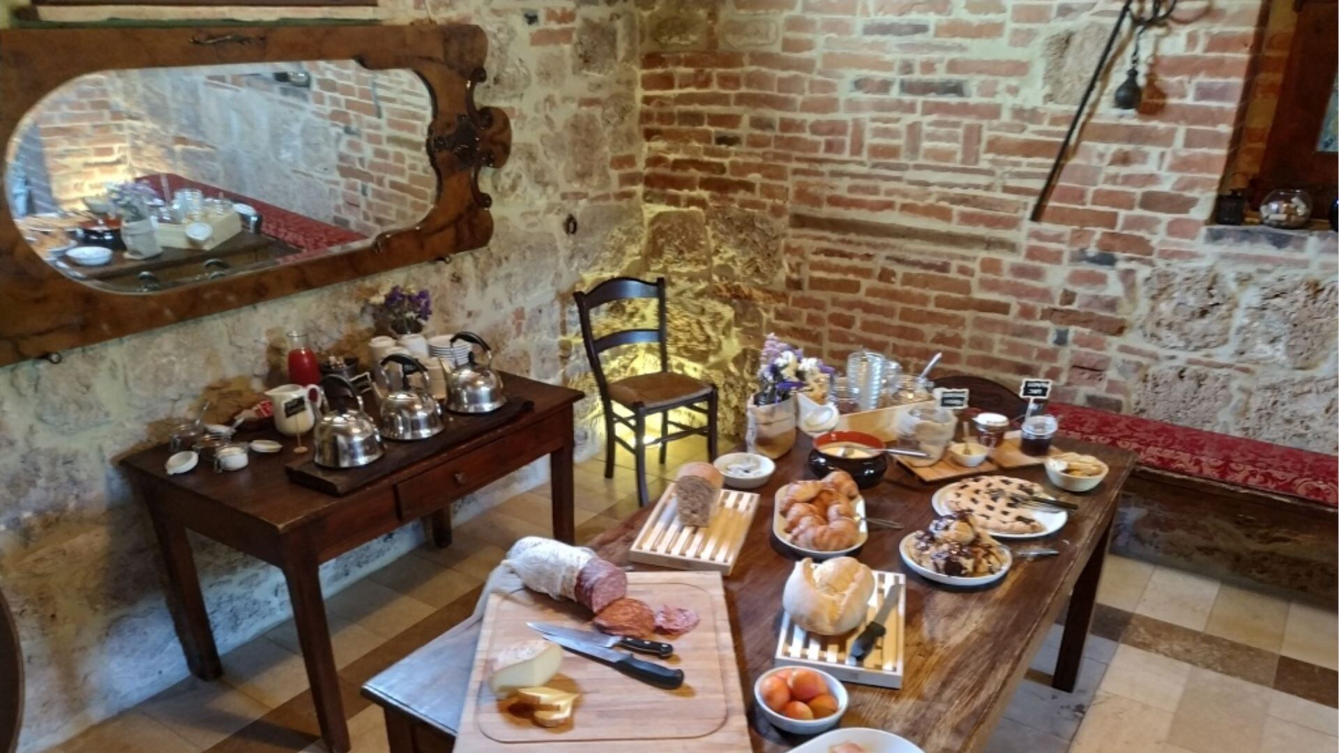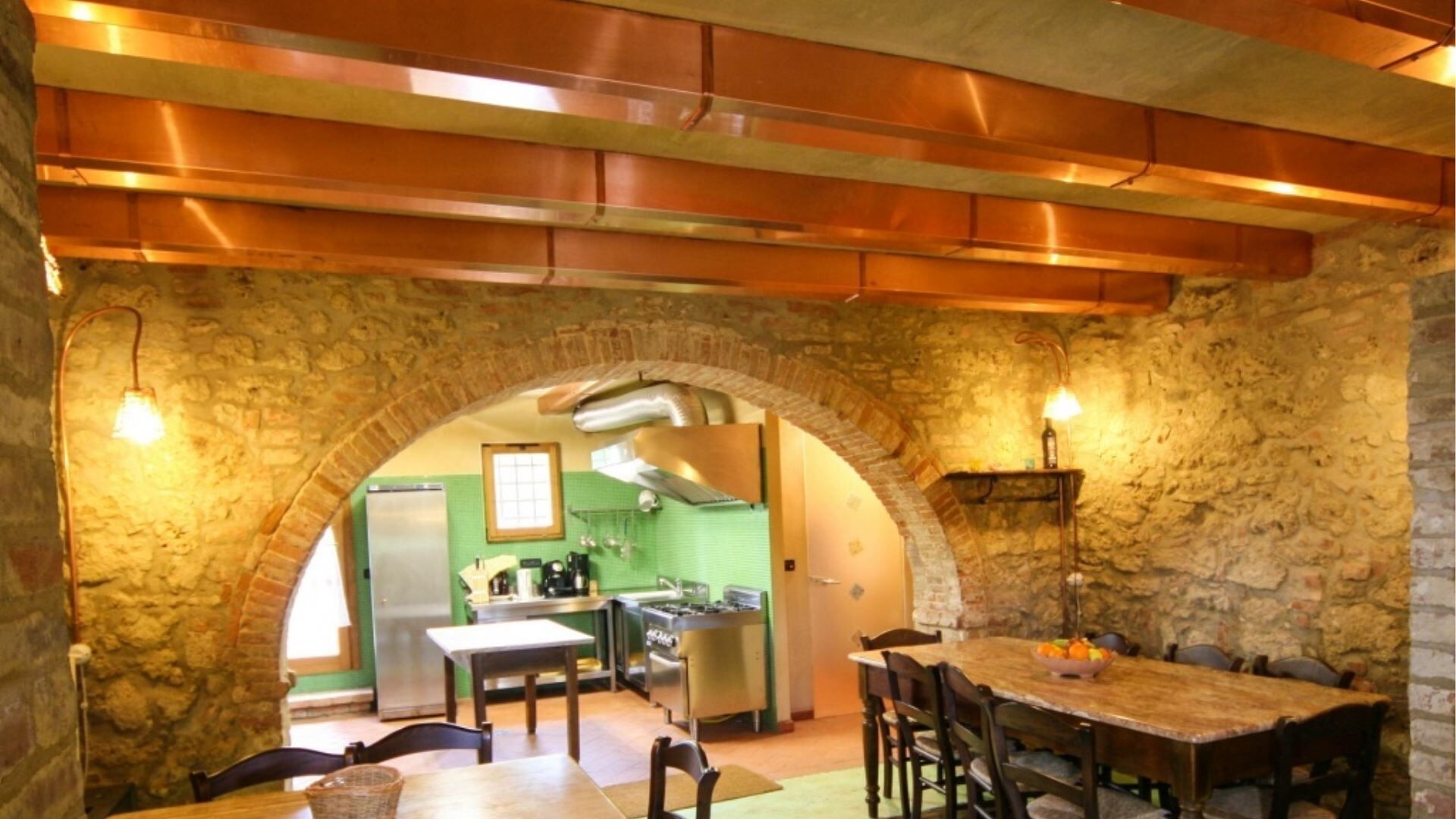 Esta espaciosa casa de campo tiene una capacidad máxima de 18 huéspedes distribuidos en 9 dormitorios y 10 baños, proporcionando generoso espacio y confort para familias numerosas o grupos. El edificio principal se distribuye en dos plantas, con la planta baja que cuenta con una acogedora zona de taberna rústica, una cocina completamente equipada, un baño de servicio que funciona como área de lavandería y un comedor rústico. Este nivel también alberga 2 dormitorios dobles, cada uno con baño privado con ducha, e incluye un rincón dedicado con servicio de internet. En la primera planta, a la que se accede a través de una encantadora entrada tipo logia, descubrirán una cómoda sala de estar y una cocina americana equipada con 2 hornos. Esta planta contiene 4 dormitorios adicionales, que comprenden 2 dormitorios dobles y 2 dormitorios dobles o de dos camas, cada uno acompañado de su propio baño privado con ducha. El granero convertido proporciona alojamiento independiente con 3 dormitorios más, incluyendo 2 dormitorios dobles y 1 dormitorio doble o de dos camas, cada uno con baño privado con ducha. Los 3 baños del granero están especialmente diseñados para ser aptos para personas con discapacidad, y estas habitaciones se benefician de acceso de entrada independiente y áreas de porche con vistas a la piscina.