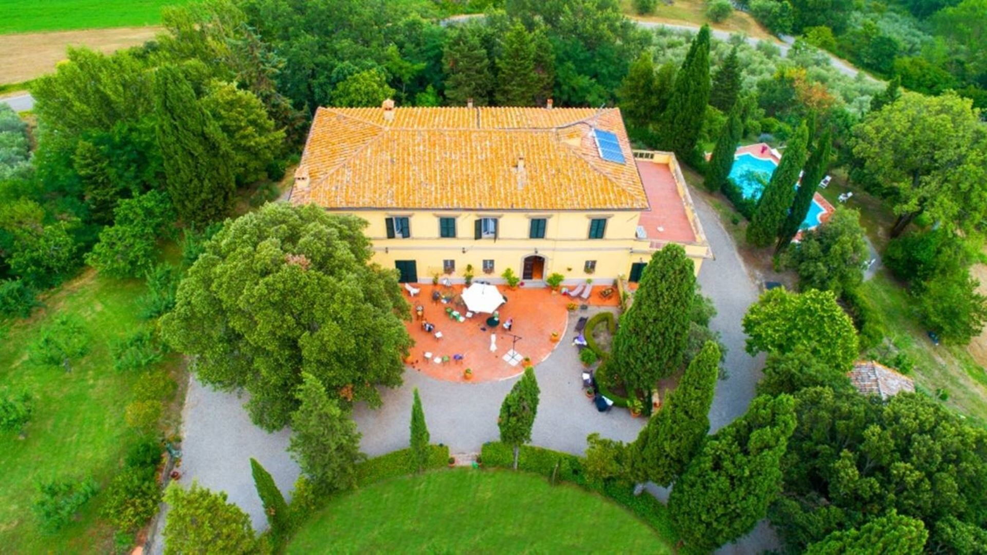 Esta elegante villa vacacional exhibe una refinada arquitectura florentina en el corazón de Val d'Orcia, situada en la pintoresca campiña cerca de San Casciano Dei Bagni, Italia. Construida durante la segunda mitad del siglo XVIII sobre los cimientos de una antigua aldea medieval que una vez sirvió como parada a lo largo de la histórica ruta de peregrinación Vía Francigena, esta distinguida residencia preserva el carácter auténtico y el encanto de siglos pasados. Posicionada en lo alto de una colina y rodeada por un magnífico parque de encinas y cipreses, la propiedad ofrece impresionantes vistas panorámicas del valle. La villa ha sido meticulosamente concebida y amueblada como una refinada casa privada, perfectamente adecuada para acoger reuniones memorables con invitados y amigos. La propiedad mantiene intactas las características arquitectónicas de una granja del siglo XVIII, originalmente diseñada para celebraciones y ceremonias en honor a la primavera y la fertilidad de la tierra. El gran jardín circular en la entrada proporciona un marco ideal para eventos especiales, mientras que el histórico bosquecillo para la captura de aves añade un distintivo toque de elegancia de época. La conectividad Wi-Fi alcanza todos los espacios interiores y exteriores, incluida el área de la piscina, garantizando una comunicación fluida. El aparcamiento privado acomoda múltiples vehículos dentro de los extensos terrenos de la finca. Desde 2025, la villa opera con completa autosuficiencia energética mediante un avanzado sistema fotovoltaico con baterías de almacenamiento, gestionando de manera sostenible tanto la producción de electricidad como de agua caliente.