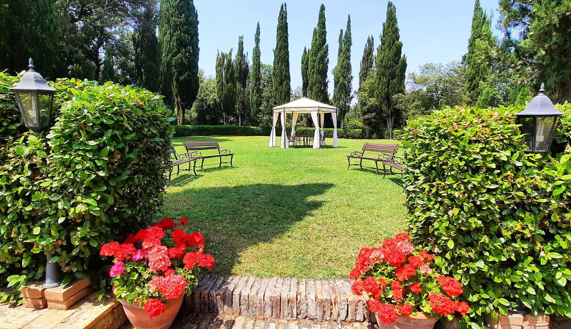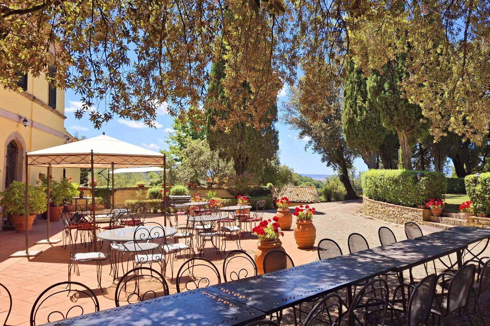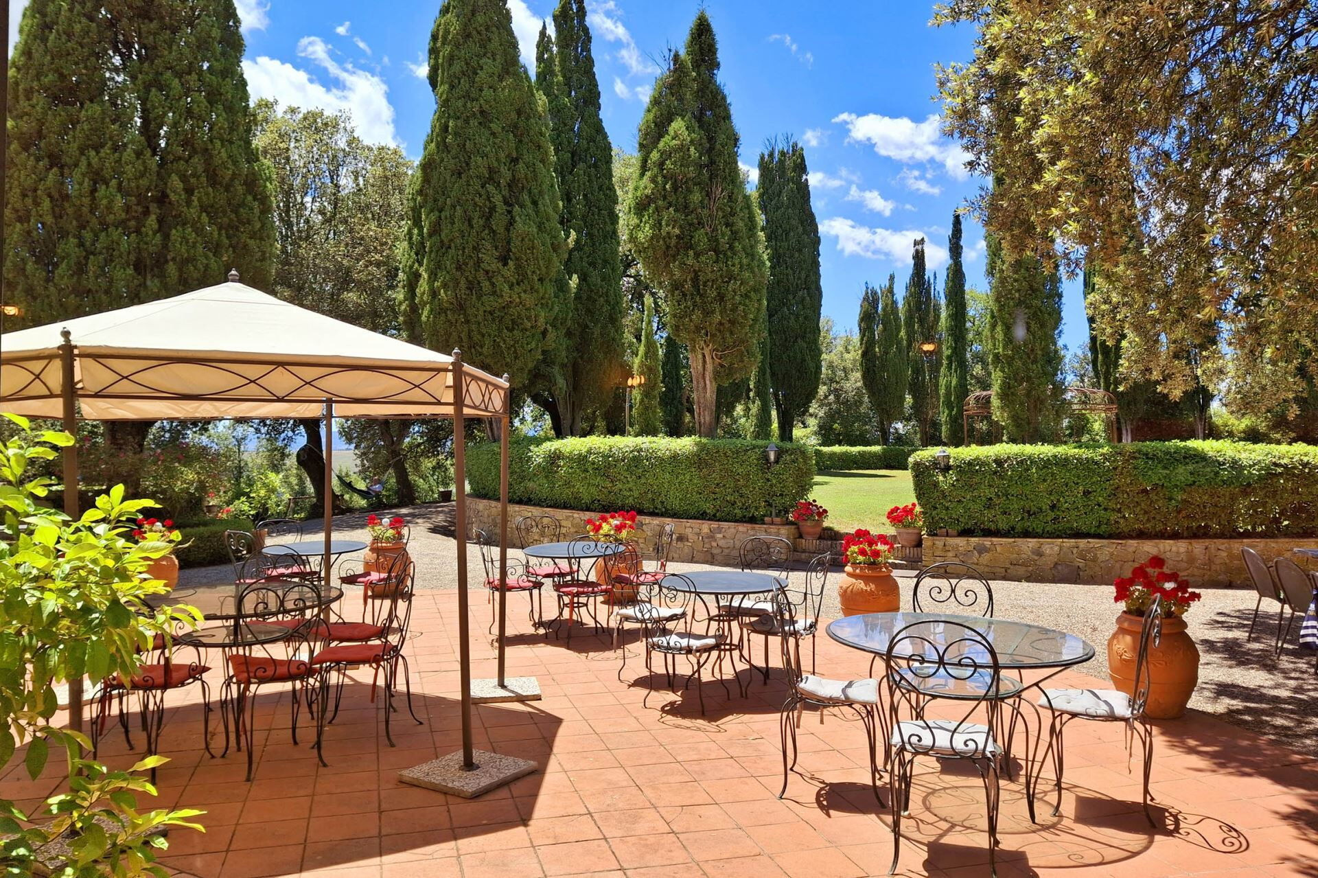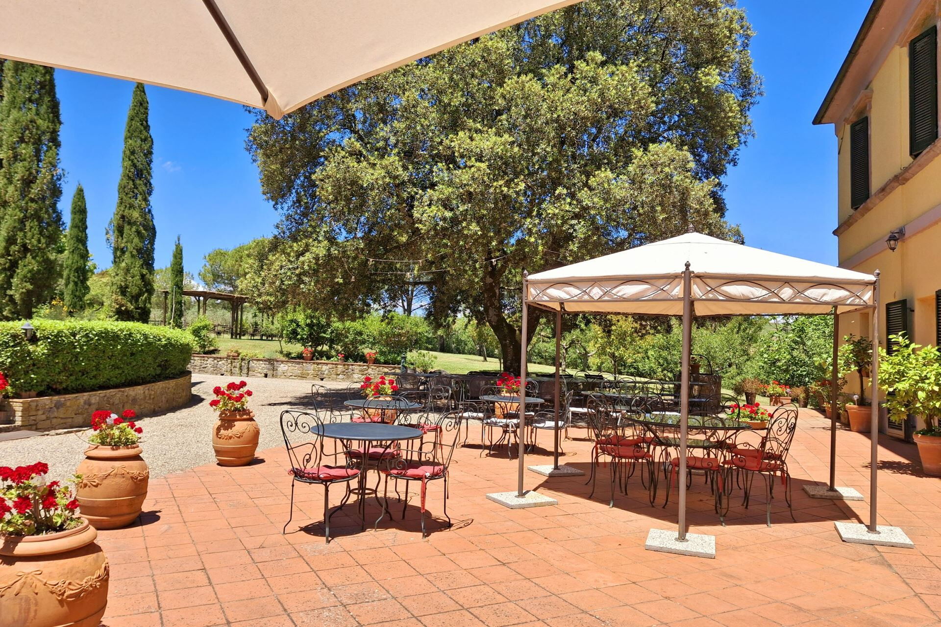 El histórico parque rodea la villa con encinas maduras y cipreses imponentes, creando un entorno natural sereno a través de los amplios terrenos. Una hermosa piscina desbordante de 6x12m proporciona un refrescante respiro durante los meses cálidos, con funcionamiento desde el 1 de mayo hasta el 31 de octubre. Junto a la piscina, encontrará un jacuzzi para relajarse mientras disfruta de las vistas del valle. El solárium semicircular de terracota se extiende desde las áreas de estar de la planta baja, ofreciendo acceso directo al exterior y un espacio de ocio bañado por el sol. Un cenador cubierto resguarda el área de barbacoa, creando un lugar acogedor para cenas al aire libre y entretenimiento. Los terrenos cuentan con un área de juegos al aire libre para actividades recreativas y una cancha de voleibol para partidos amistosos. Un nuevo sistema de iluminación LED ilumina el jardín y los senderos, creando un encantador ambiente nocturno en toda la propiedad. Se han instalado dos estaciones de carga para vehículos eléctricos para satisfacer las necesidades de transporte moderno. El extenso parque proporciona amplio espacio para pasear, reuniones al aire libre y apreciar el tranquilo entorno campestre.