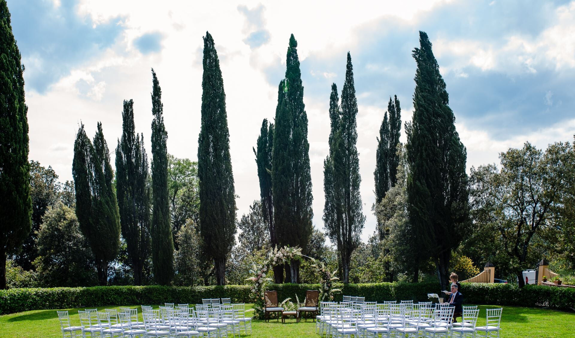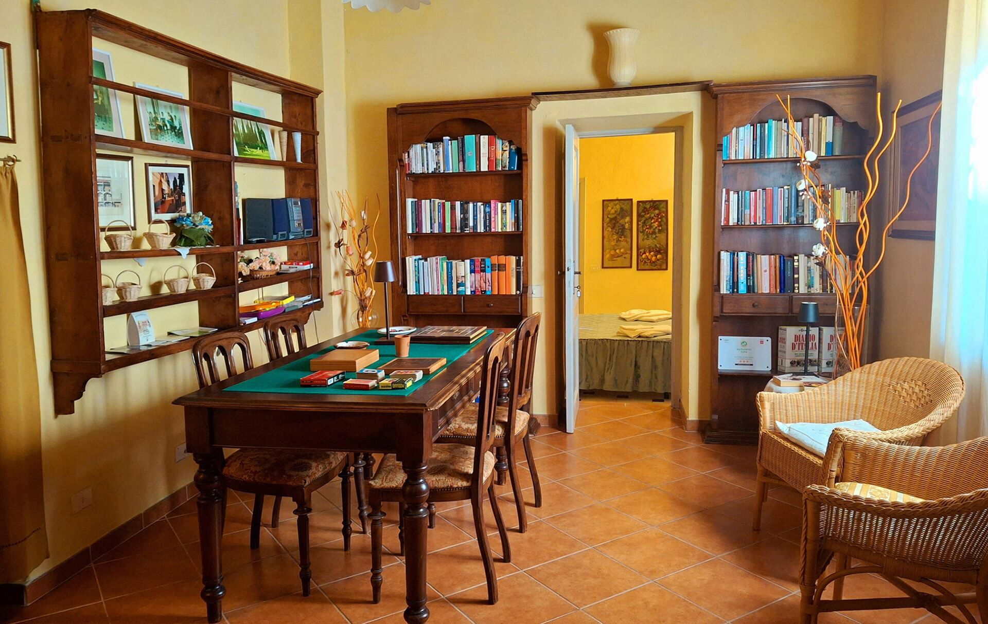 La villa acomoda hasta 26 huéspedes en 14 dormitorios y 14 baños, distribuidos en la residencia principal y una casa de huéspedes independiente. La planta baja presenta tres amplias salas de estar, dos con chimeneas tradicionales de pietra serena y una que alberga un piano para entretenimiento musical. Este nivel contiene dos dormitorios dobles, cada uno equipado con baño privado con ducha. Un bien equipado despacho proporciona un espacio de trabajo tranquilo, mientras que una acogedora zona de bar equipada con una cafetera espresso profesional ofrece opciones de refrigerio sofisticadas. La planta baja también incluye una sala de lavandería y guardarropa, una íntima sala de cartas y televisión, y una sala de billar para entretenimiento nocturno. La primera planta alberga tres habitaciones con dos camas individuales que pueden convertirse en dobles, además de cinco dormitorios dobles, uno de los cuales se abre a una amplia terraza panorámica con vistas del valle. Cada dormitorio en este nivel cuenta con baño privado con ducha. La planta semisótano proporciona alojamiento adicional para huéspedes con una habitación con dos camas individuales y un dormitorio doble, servidos por un baño con bañera y un baño de servicio adicional. Este nivel también contiene una amplia sala de relajación con televisión satelital y acceso directo a la piscina, una sala de fitness para rutinas de ejercicio, y una sala de recreación equipada con instalaciones de ping-pong. Una camilla de masajes y una sala de yoga dedicada amueblada con esterillas esperan a los huéspedes que buscan actividades de bienestar. La dependencia independiente alberga dos habitaciones dobles, extendiendo la capacidad de alojamiento más allá de la villa principal. Para reservas de 24 huéspedes, solo se utilizará la villa principal excluyendo la dependencia, con un ajuste correspondiente en los dormitorios y baños disponibles. Para grupos de 20 huéspedes, el alojamiento se limita a las habitaciones de la planta baja y primera planta de la villa principal, sin acceso a la planta semisótano ni a la dependencia.