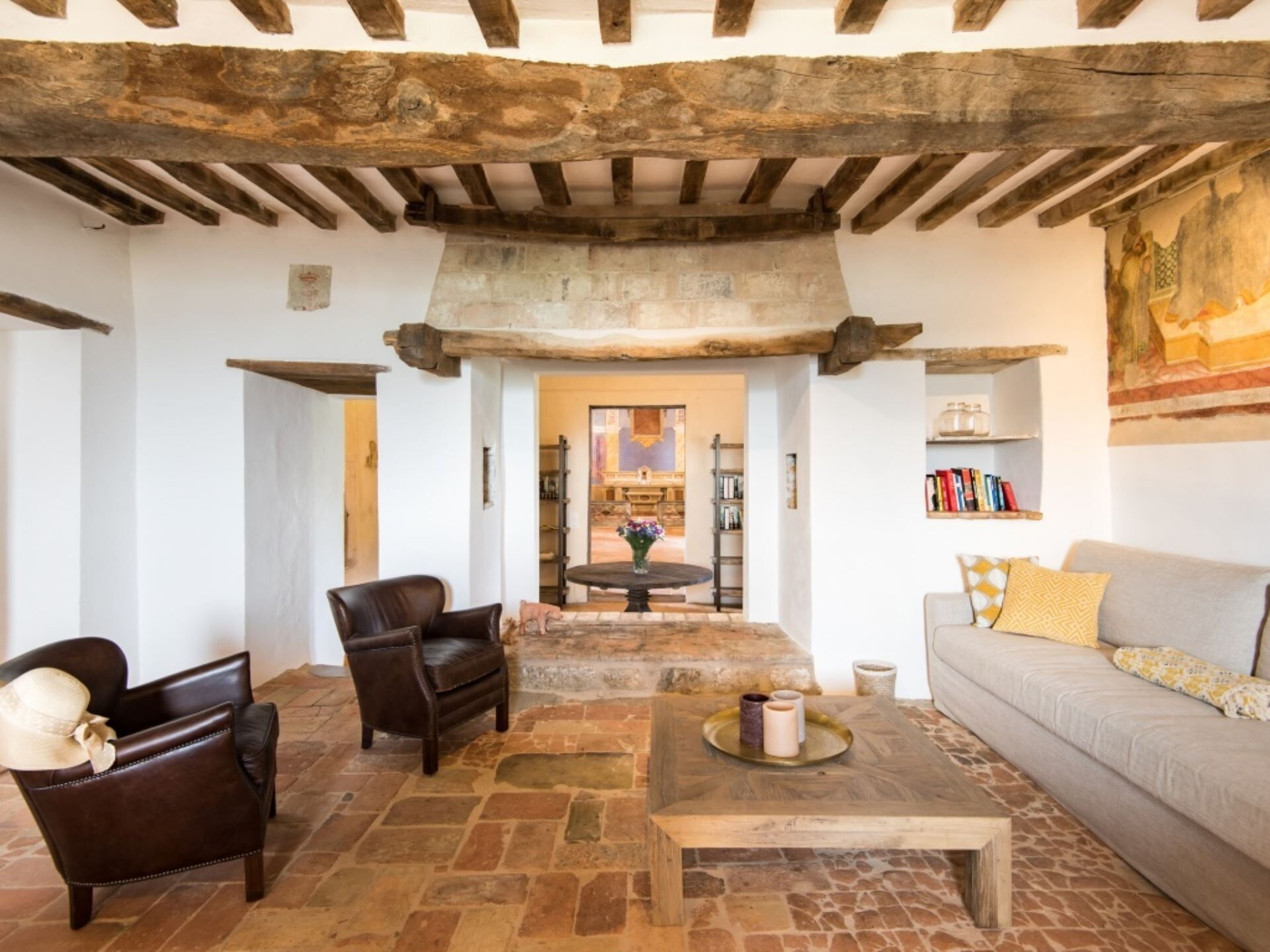Sumérgete en la elegancia atemporal de Villa Ugo, un castillo del siglo XI meticulosamente restaurado ubicado en la cima de una colina en el corazón de Umbría, Italia. Este exquisito alquiler vacacional ofrece vistas impresionantes de olivares, viñedos y colinas verdes, ofreciendo un escapada serena impregnada de historia y comodidades modernas. Con su piscina privada de infinito, jardines paisajísticos e interiores con frescos, Villa Ugo promete una experiencia vacacional inolvidable en el pintoresco valle del Tíber.