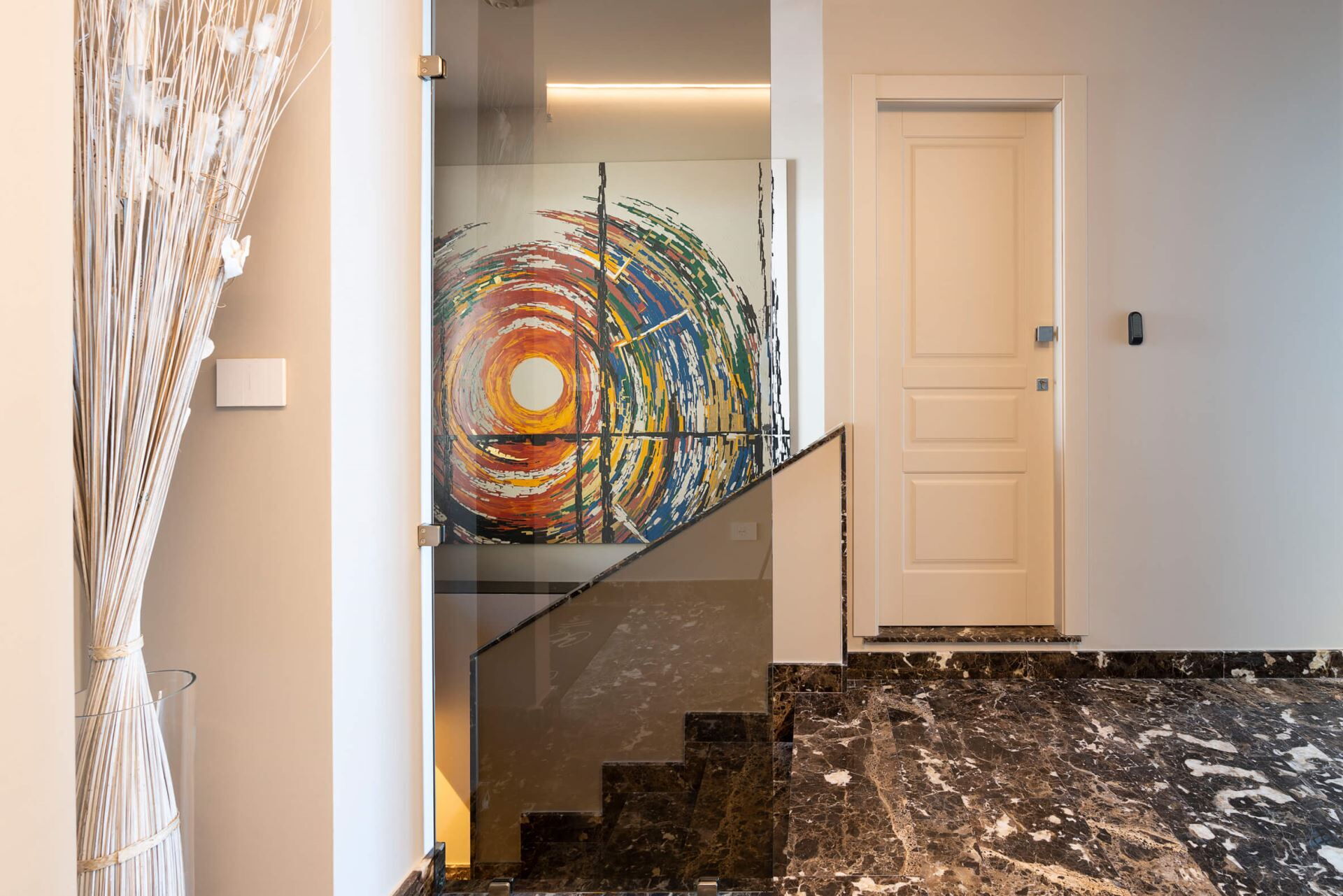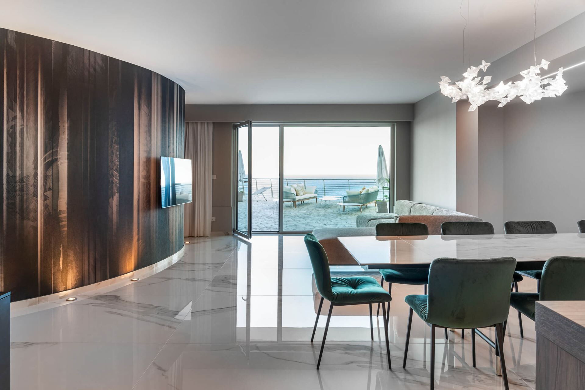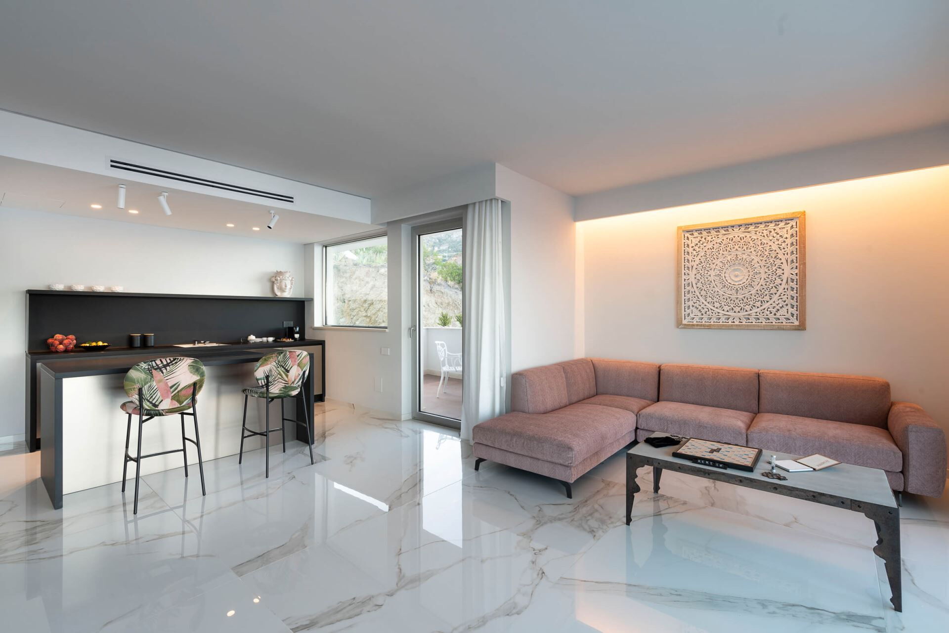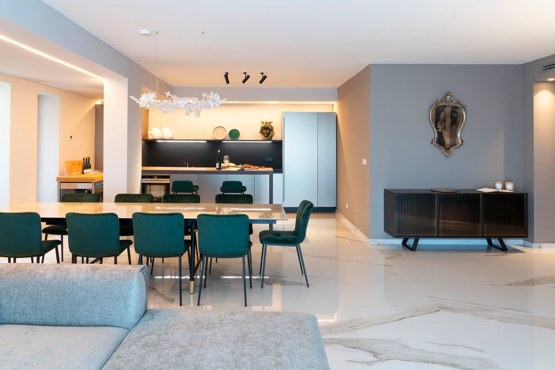 Villa Taormina se distribuye en cuatro niveles, todos conectados por un ascensor para facilitar el acceso, y aloja una capacidad máxima de 20 huéspedes en 10 dormitorios y 11 baños. La planta baja cuenta con un amplio salón con comedor y cocina, 2 dormitorios dobles con duchas en suite, un lavadero y la completa zona de bienestar que incluye las instalaciones de fitness, sauna, sala de masajes y ducha multisensorial. Uno de los dormitorios de la planta baja incluye un vestidor. La primera planta ofrece un amplio salón con zona de estar, comedor y cocina, junto con 4 dormitorios dobles, todos con duchas en suite, y una terraza. Dos de estos dormitorios cuentan con vestidores. La segunda planta contiene un amplio salón con zona de comedor y cocina, 3 dormitorios dobles con duchas en suite, y una terraza. Uno de estos dormitorios incluye un vestidor. La tercera planta comprende un salón con zona de comedor, cocina, 1 dormitorio doble con ducha en suite, y 2 pequeñas terrazas. Los 10 dormitorios dobles están equipados con televisiones y lujosos baños en suite con duchas, asegurando privacidad y comodidad para cada huésped. La villa cuenta con 4 salones independientes con cocinas, zonas de comedor y estar distribuidos en las diferentes plantas, proporcionando múltiples espacios de reunión para su grupo.