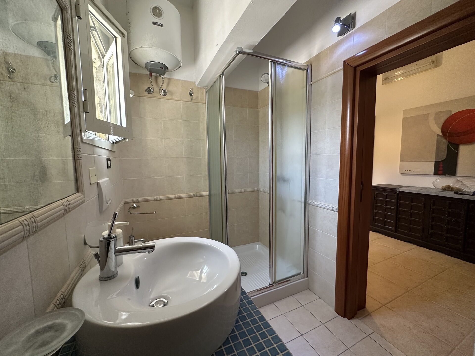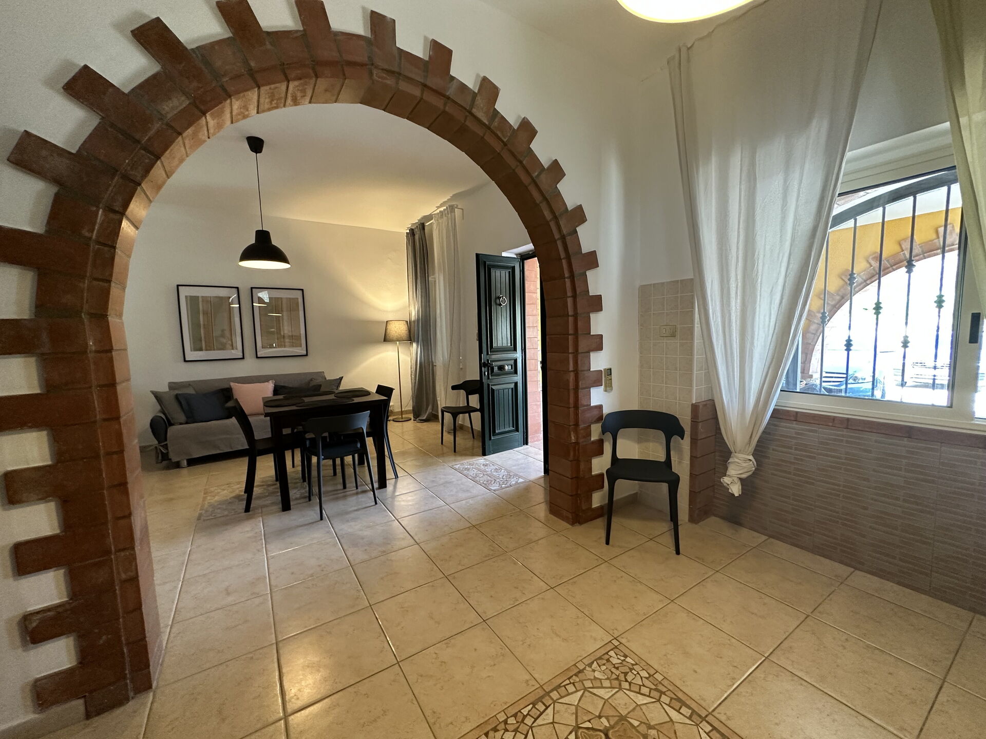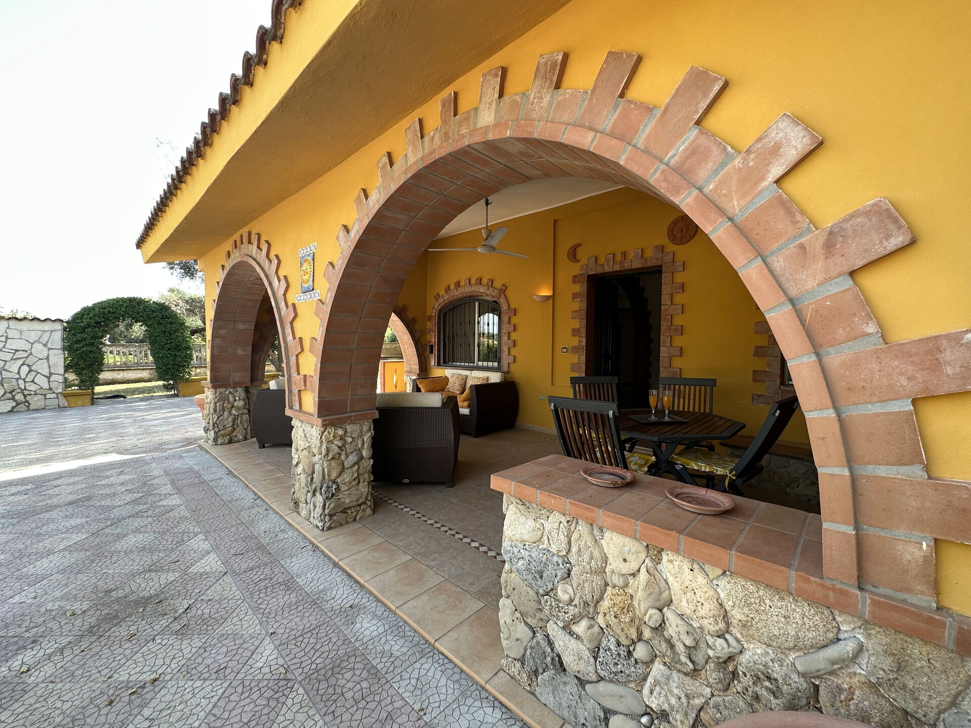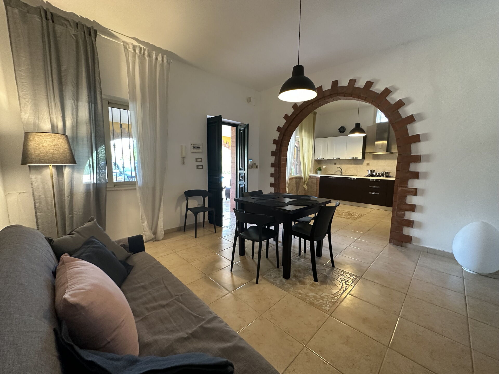 Cocina-salón: cocina bien equipada, mesa de comedor, lavavajillas, frigorífico, congelador, microondas, cocina de gas, horno, máquina de café italiana, sofa, WIFI internet, aire acondicionado, mosquitero, televisión, acceso al jardín, acceso al porche.