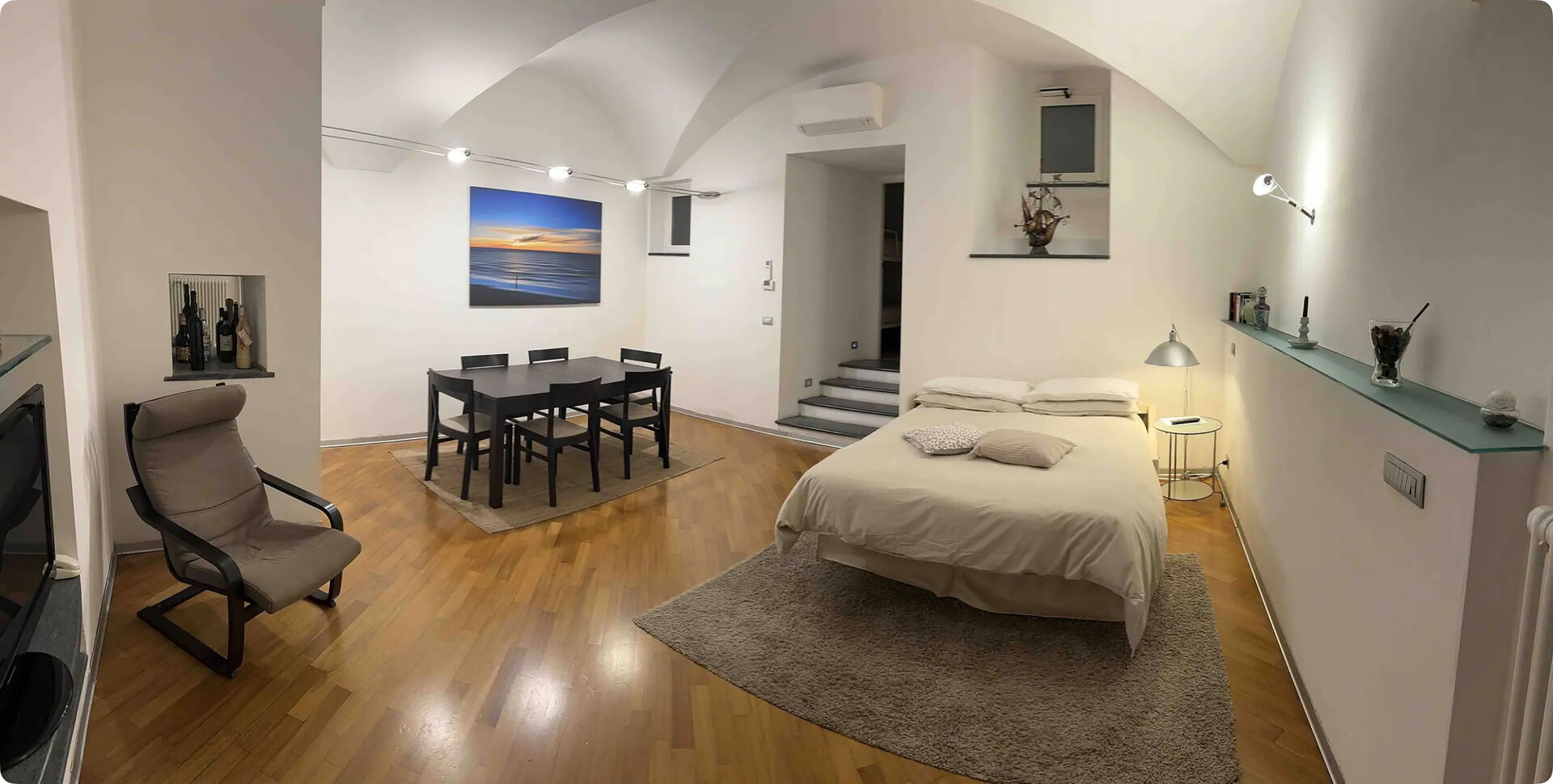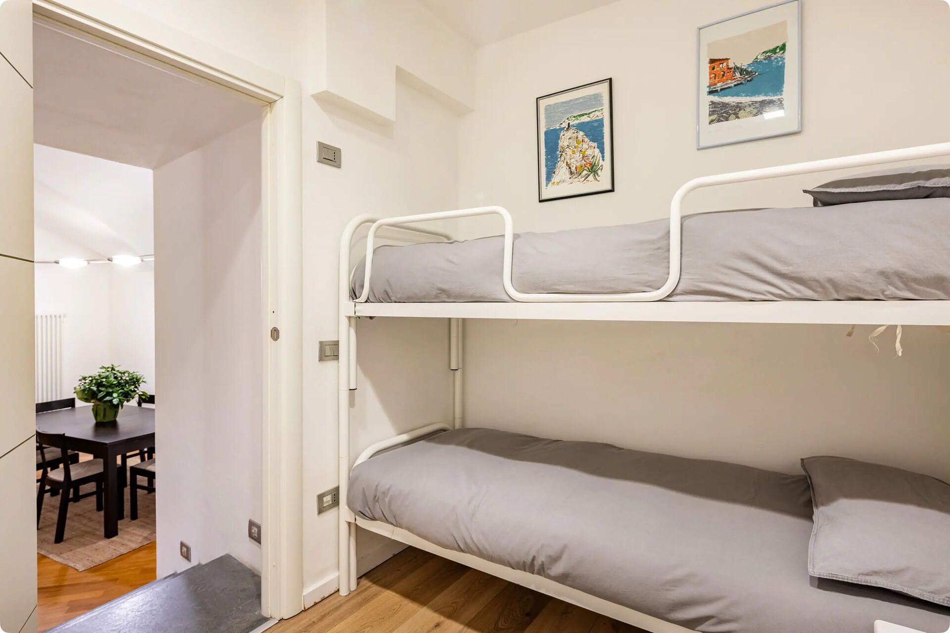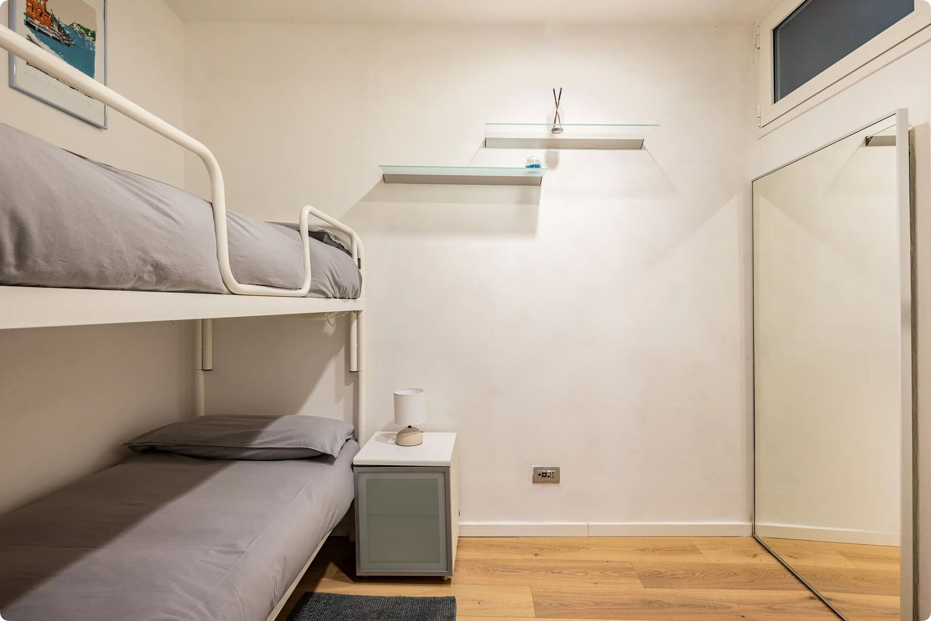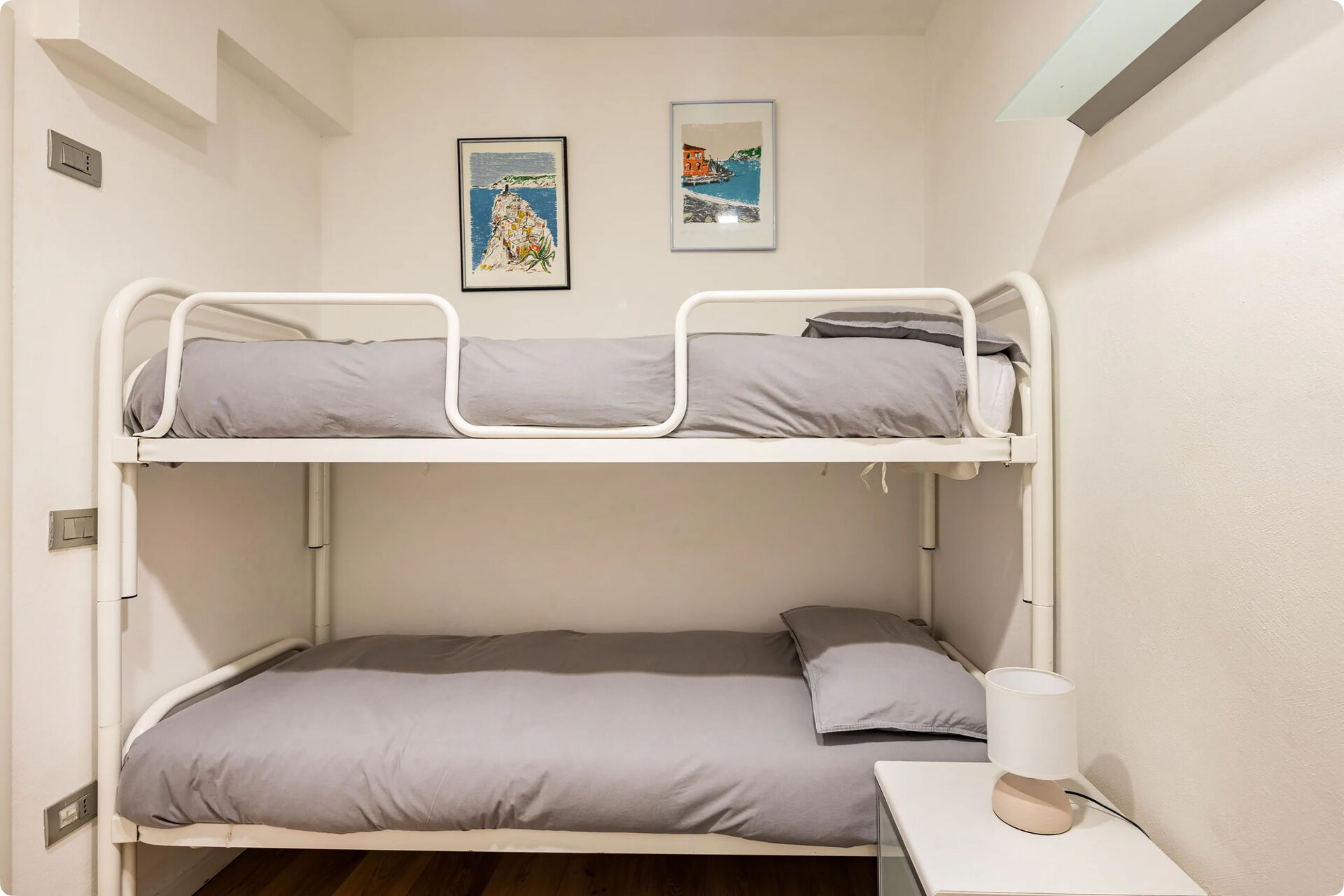 “Casa Garibaldi” ha sido elegantemente renovada y recientemente amueblada, consta de un hall de entrada, una cocina grande y moderna súper equipada, un espacio abierto con comedor, televisión y una cama doble (sofá cama que se convierte en cama, tamaño 160x190 cm), un dormitorio con litera y vestidor, un baño con ducha y un armario con lavadora y secadora.
