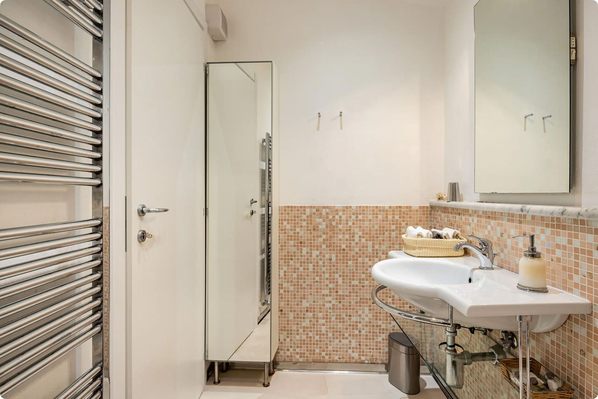 Nuestro personal le recibirá personalmente: el check-in (entrega de llaves, cobro de la tasa turística) se realiza en la oficina VIP-BOOKING en Via Garibaldi, justo en frente del apartamento.