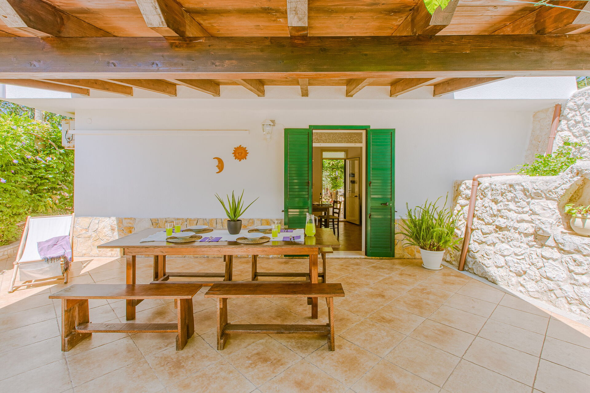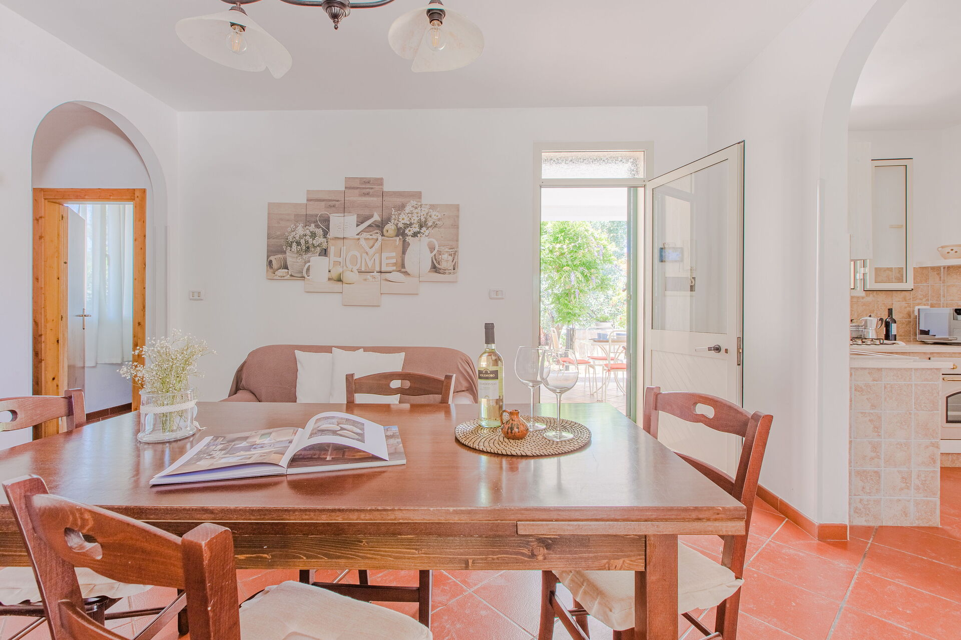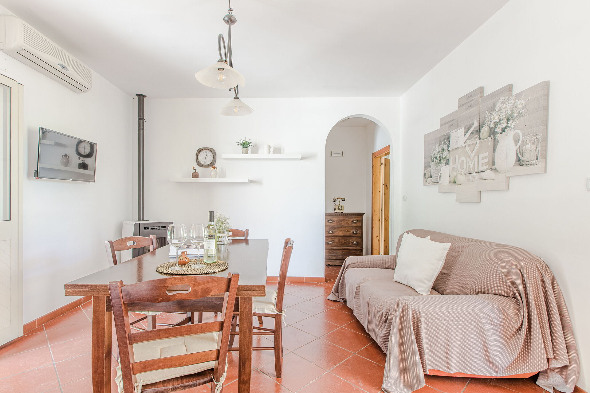 Espacio abierto: sofa, mesa de comedor, cama individual, sofá cama, WIFI internet, aire acondicionado, televisión, frigorífico, cocina de gas, congelador, cocina bien equipada, horno, máquina de café italiana, acceso al jardín, acceso a la terraza.