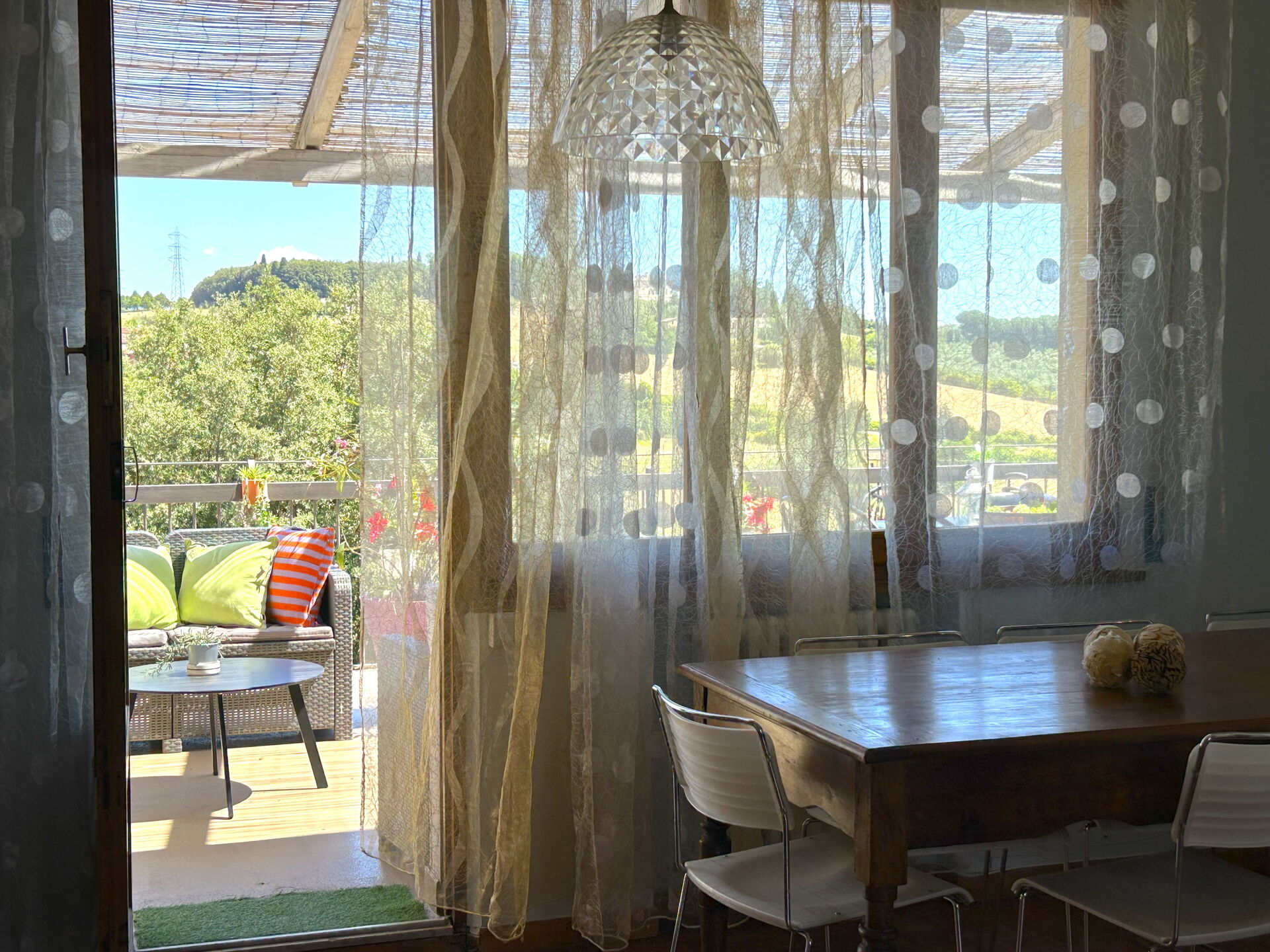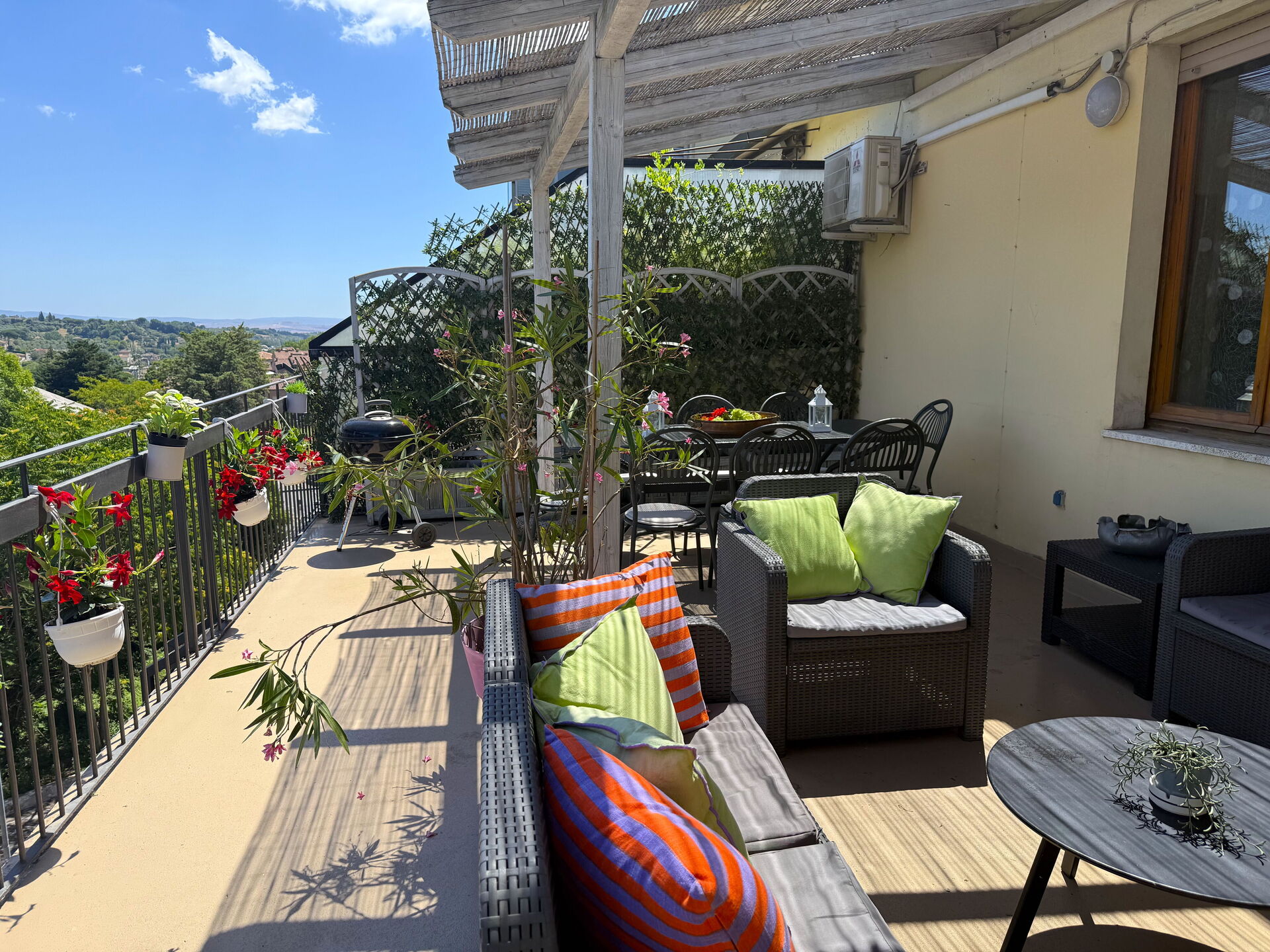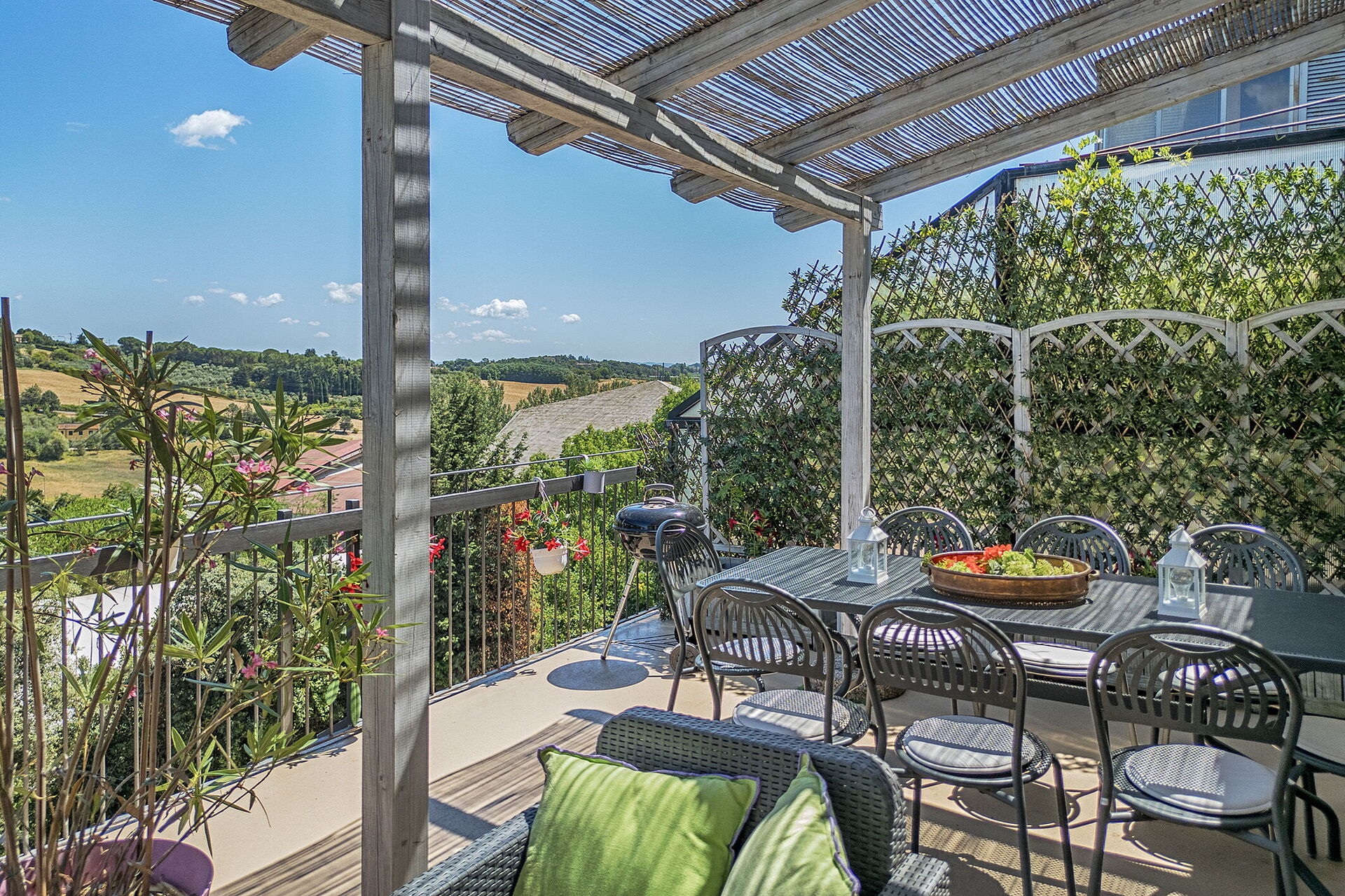 Después de llegar será bienvenido por el propietario u ama de llaves y encontrará una estupenda propiedad limpia y acogedora with views of las colinas perfecta para unas vacaciones tranquilas en Toscana. Después un día pasado a visitar lugares turísticos, disfrute de una buena copa de vino con sus amigos y su familia - lo mejor para relajarse después de un largo día. Para su placer, afuera hay parrilla, patio y jacuzzi. Cenar con familia y amigos es un aspecto de gran importancia en la cultura toscana. Aproveche de una cocina bien equipada para preparar comidas utilizando productos locales durante sus vacaciones. La cocina incluye cafetera, microondas, toaster, estufas y nevera, además de, muchas vajillas y cubiertos para hasta ocho personas. Come 'al fresco' como un local, la veranda es el lugar ideal para disfrutar de la comida, la compañía y el hermoso clima toscano.