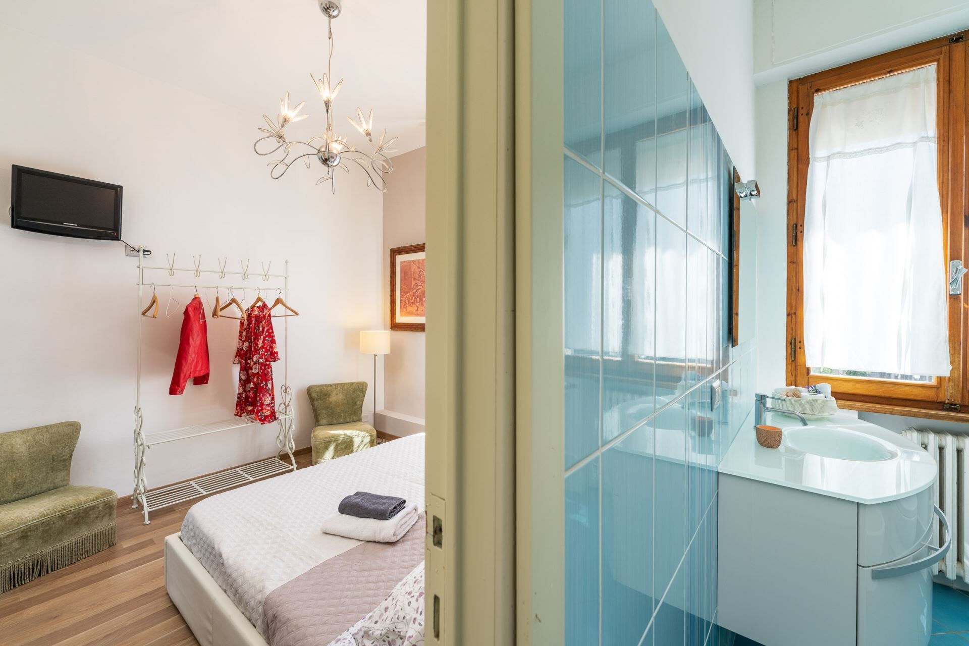 Habitación con baño 2 (14 m2): cama doble (ancho: 1.6m, longitud: 2m), WIFI internet, aire acondicionado, dos sillones, escritorio, lavabo, baño, bidé, ducha, secador, secador, lavadora.