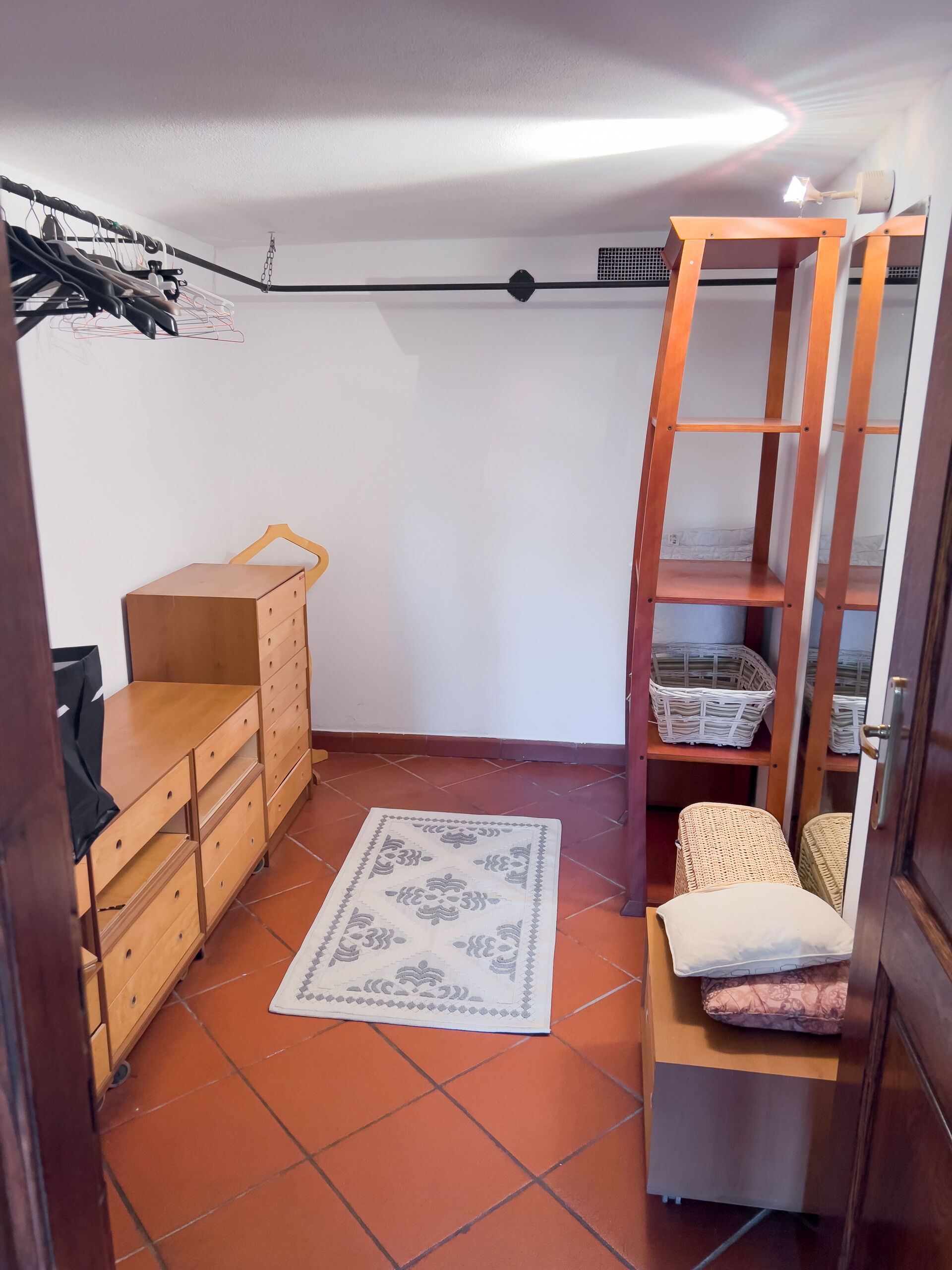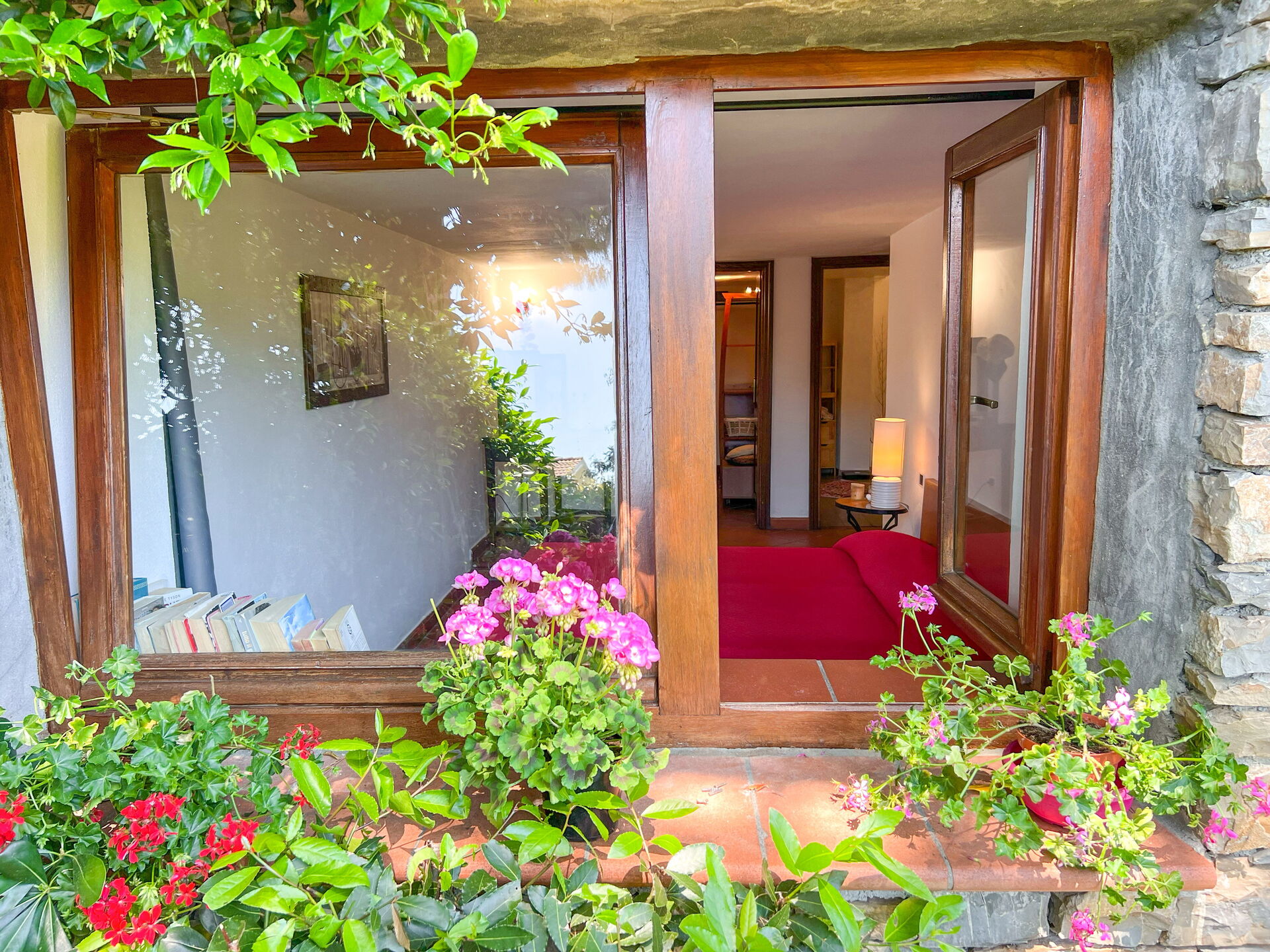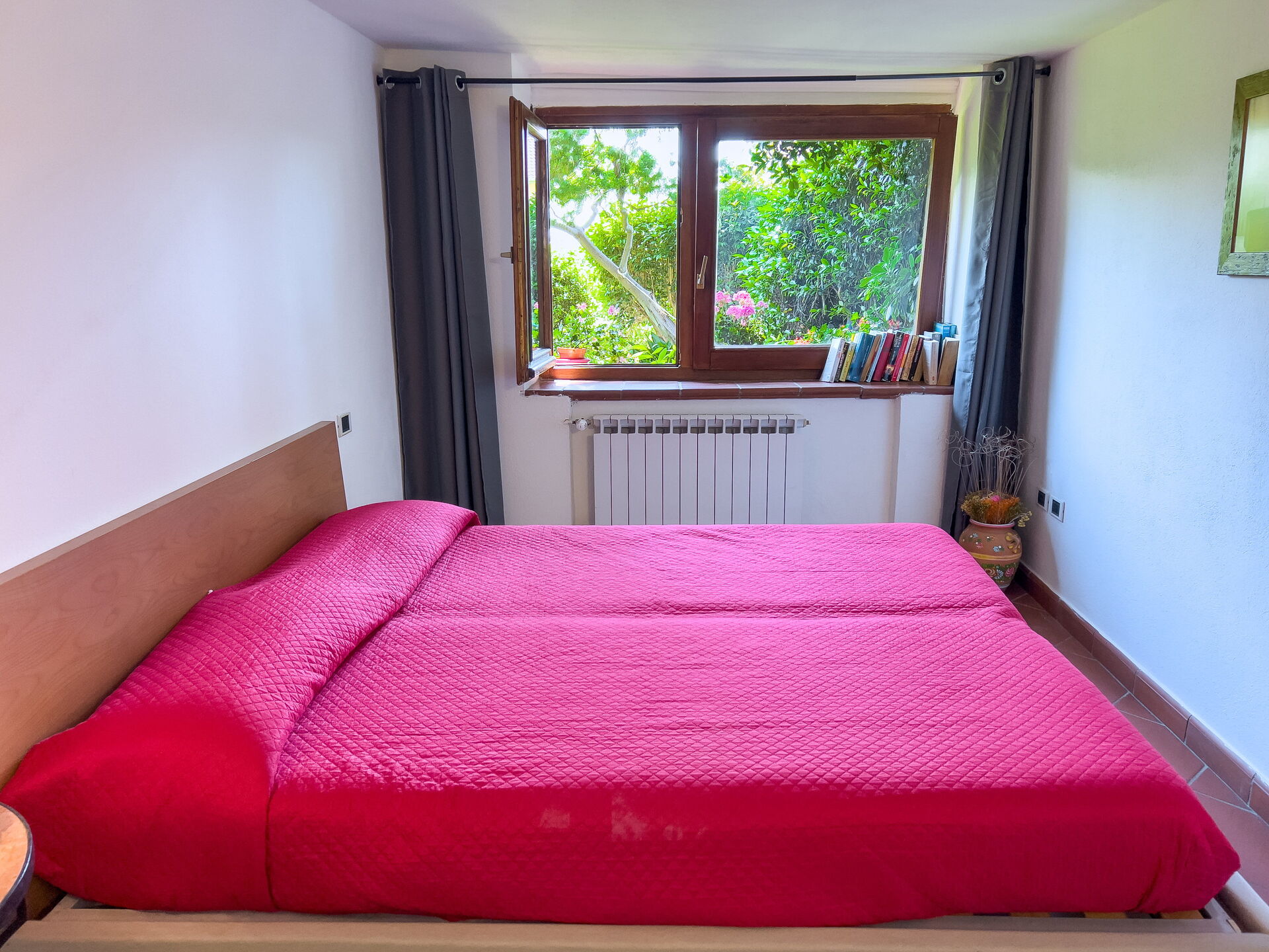 El apartamento no tiene aire acondicionado, pero al estar en la planta baja, es bastante fresco incluso en verano. Las ventanas solo dan al jardín.