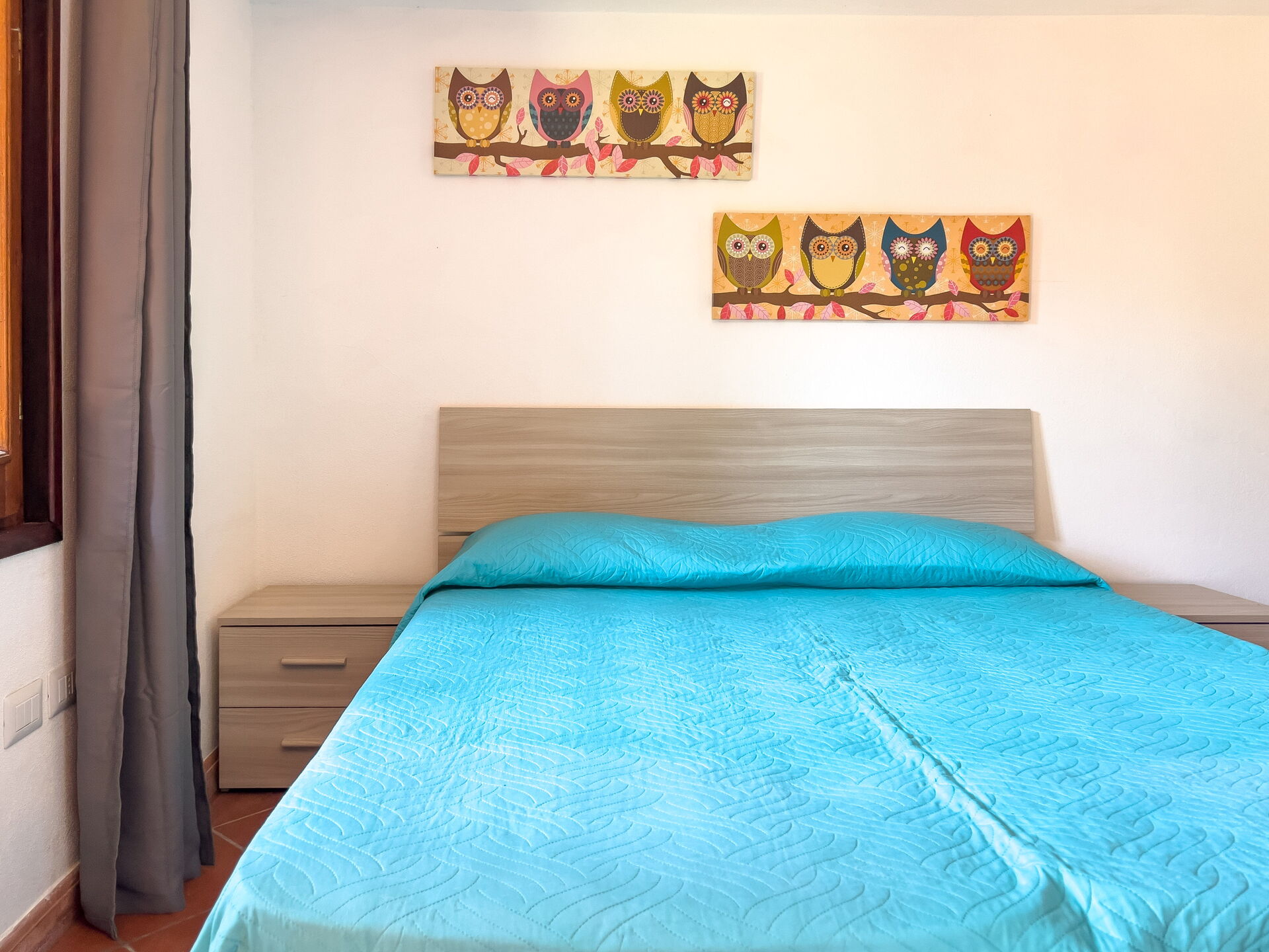 Las ventanas de los dormitorios no tienen persianas ni estores: hay cortinas opacas.