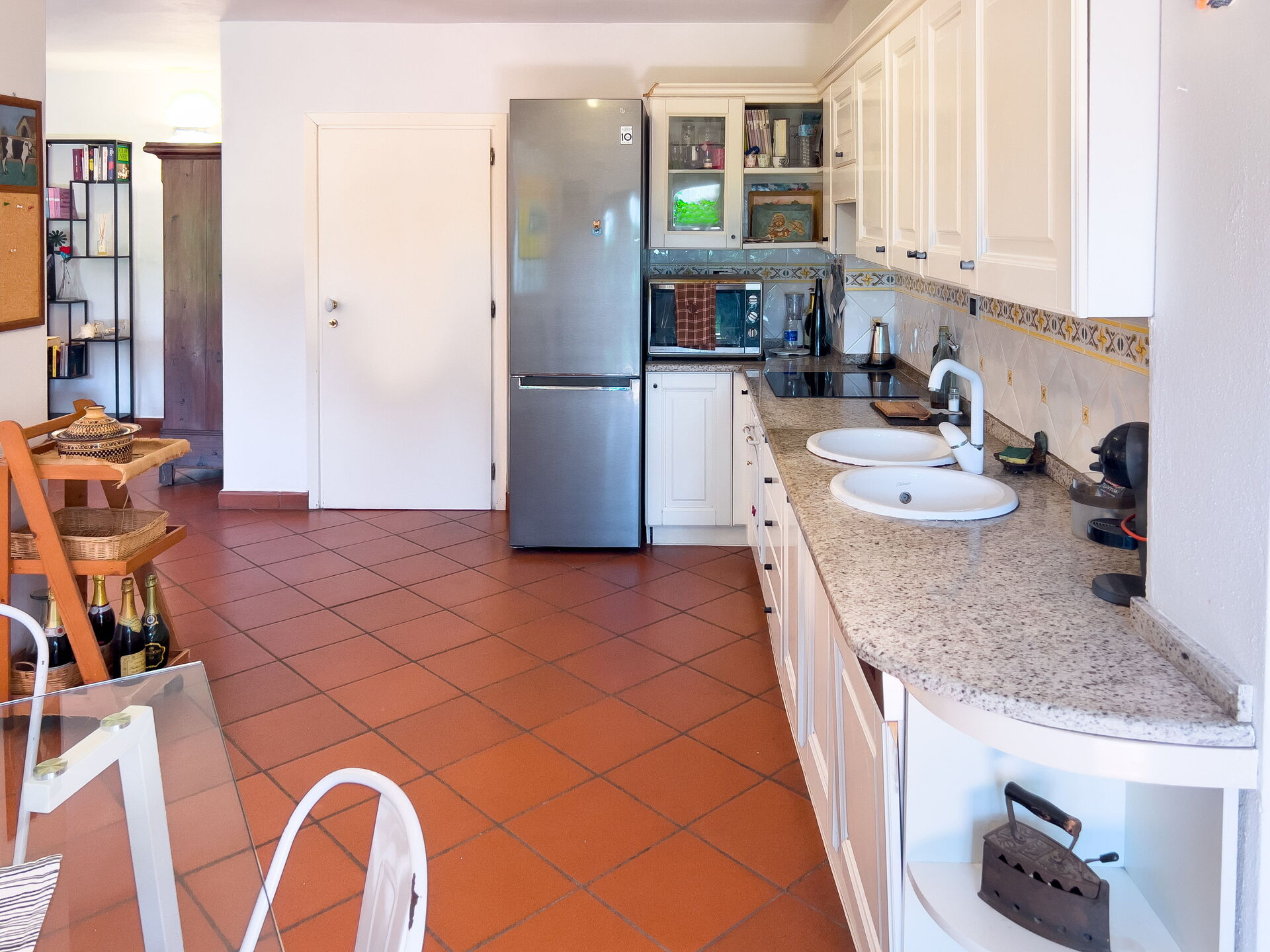 Cocina bien equipada: lavavajillas, horno, cafetera (moka, Nespresso, cafetera americana). Nevera grande con congelador.