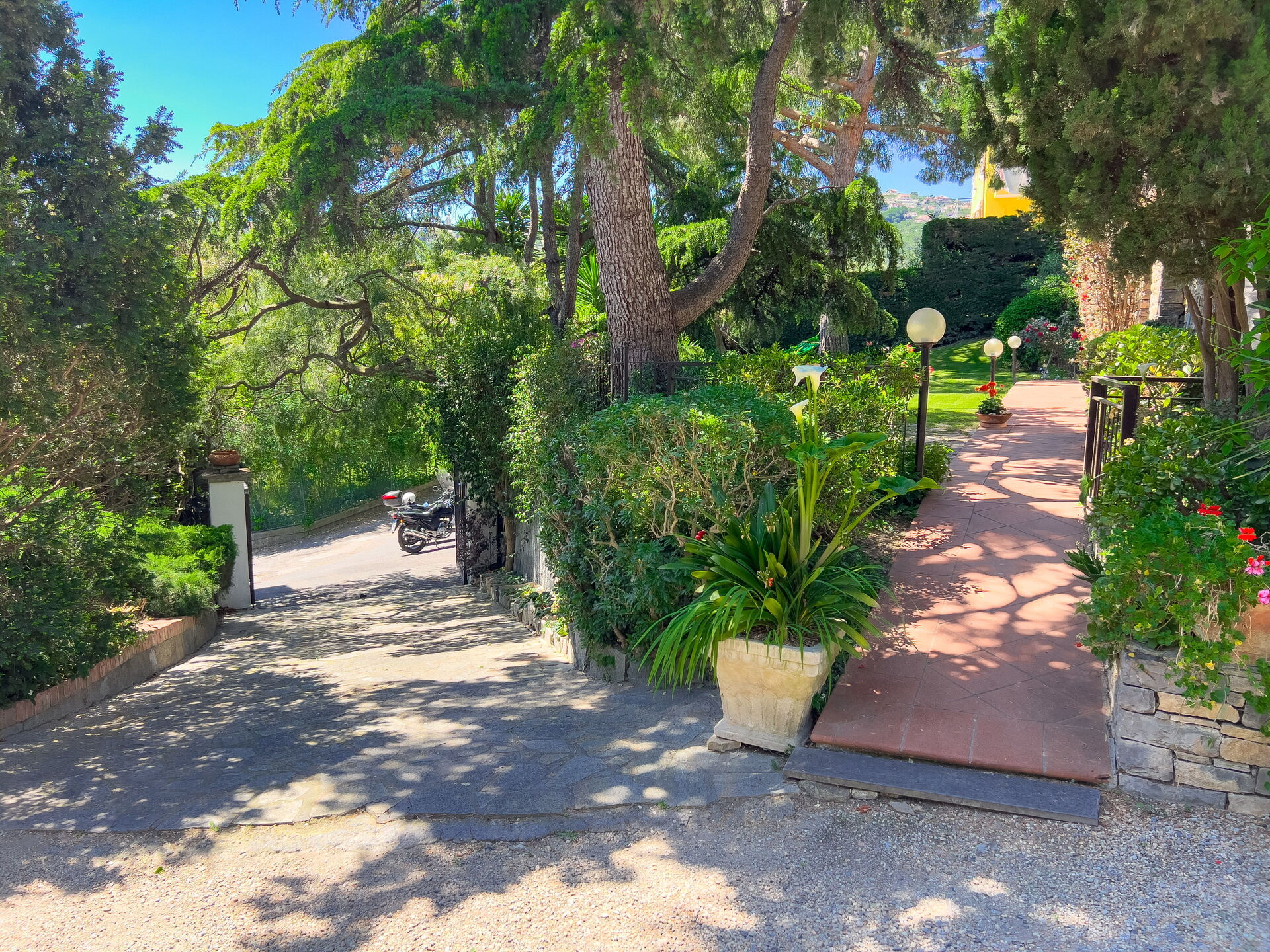 El apartamento forma parte de una villa y cuenta con un amplio jardín con césped a su disposición.