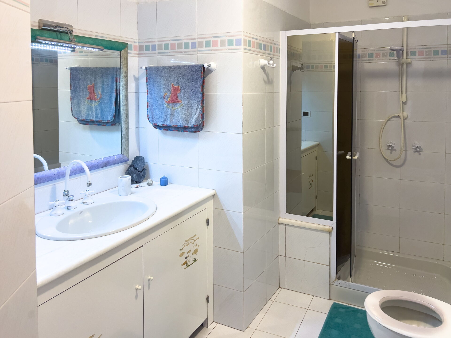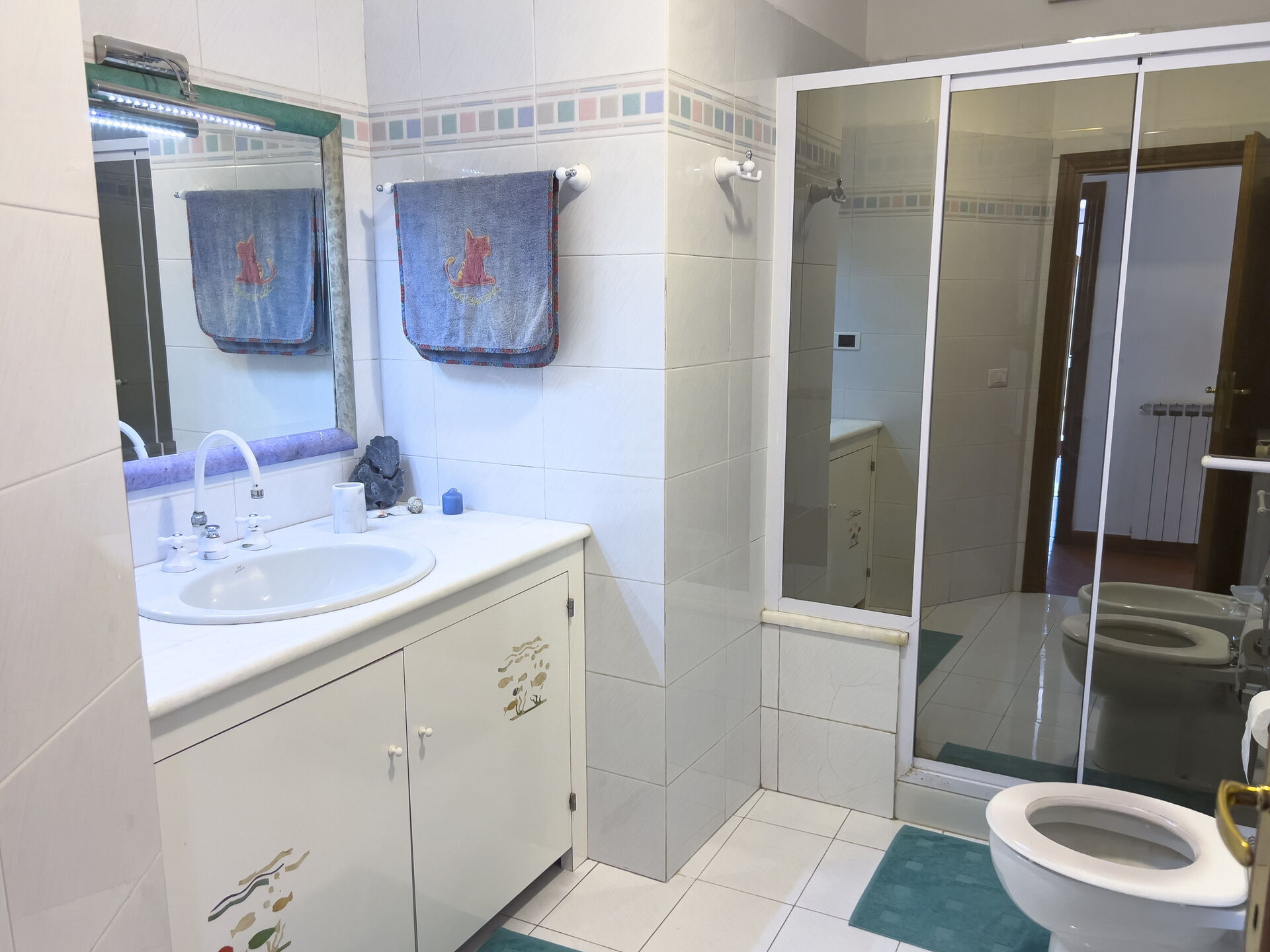 Segundo baño: ducha, inodoro, bidé, lavabo (sin ventana).